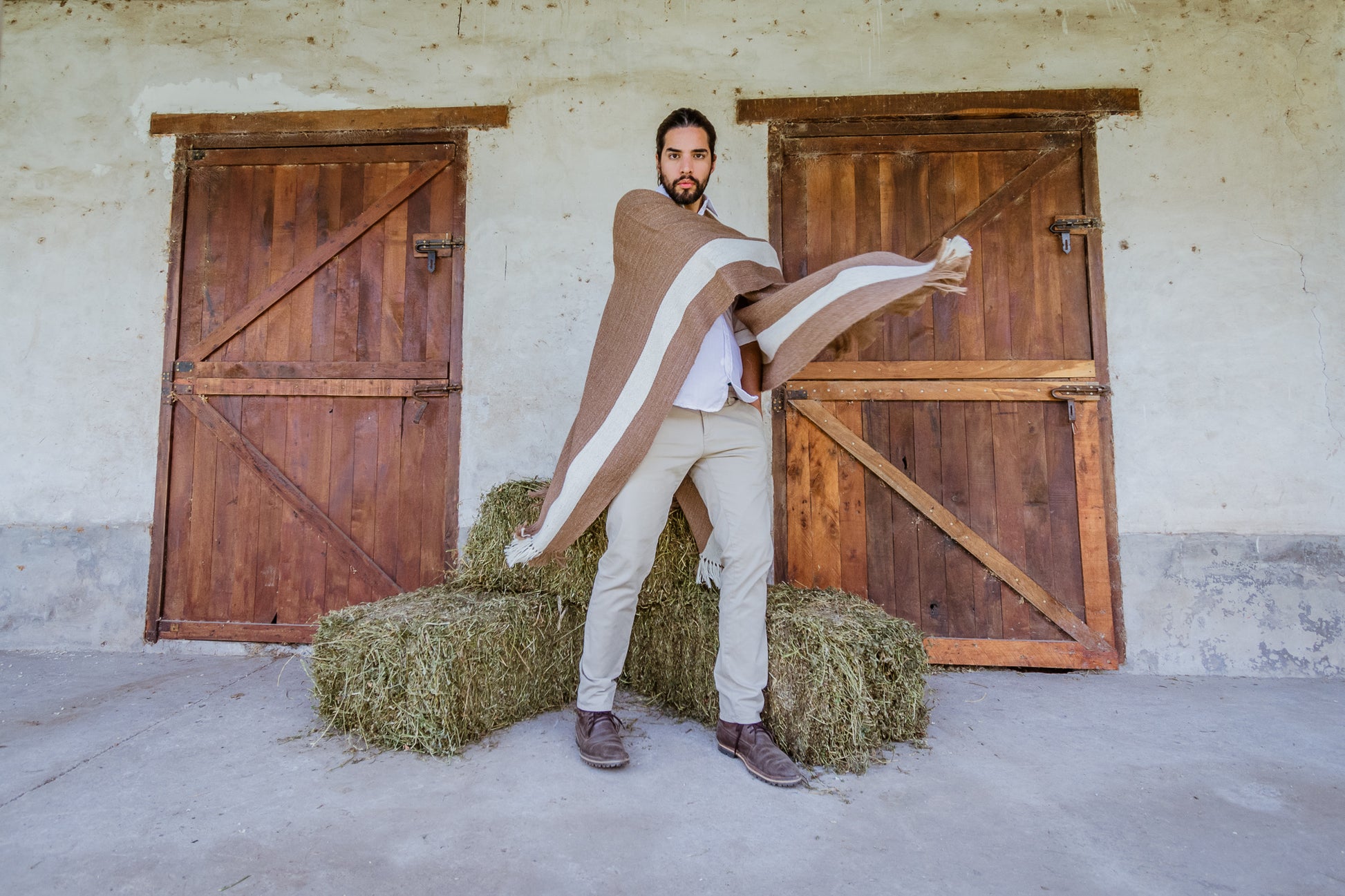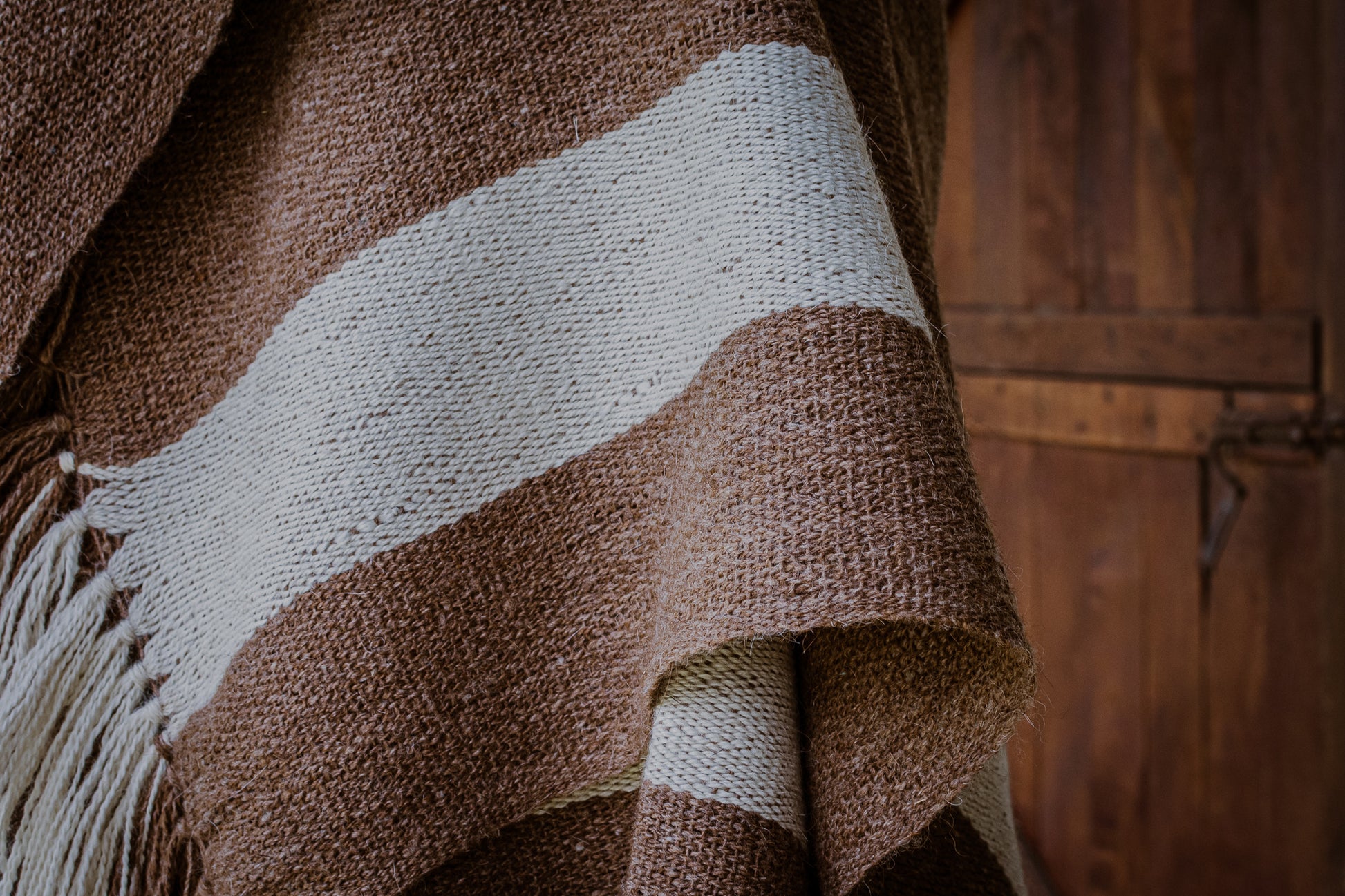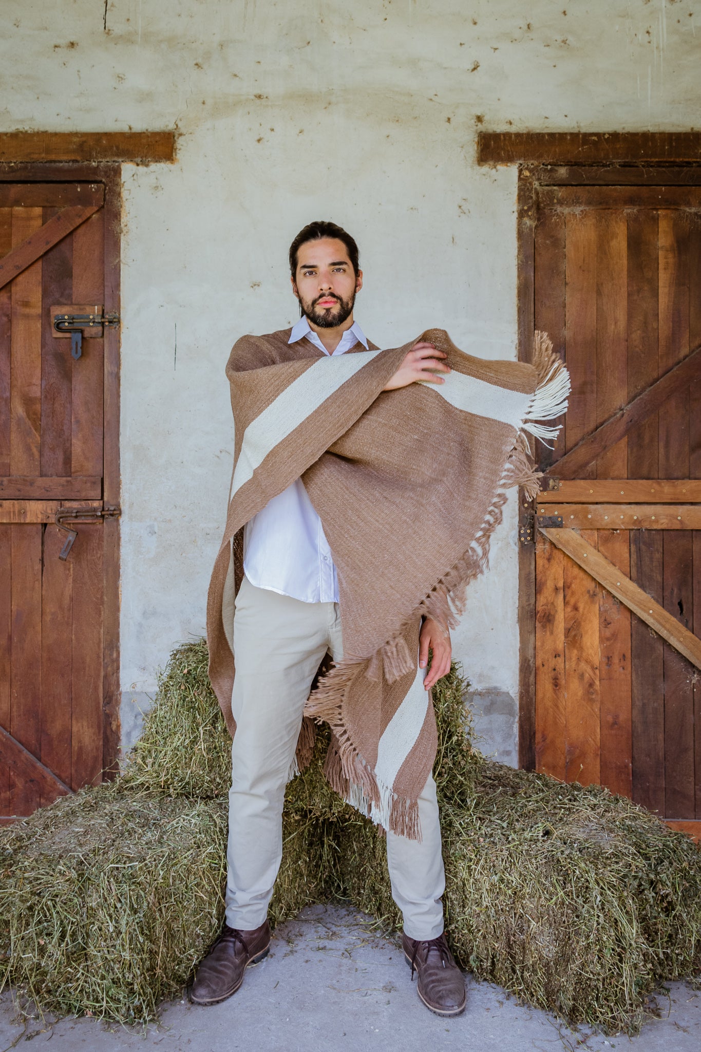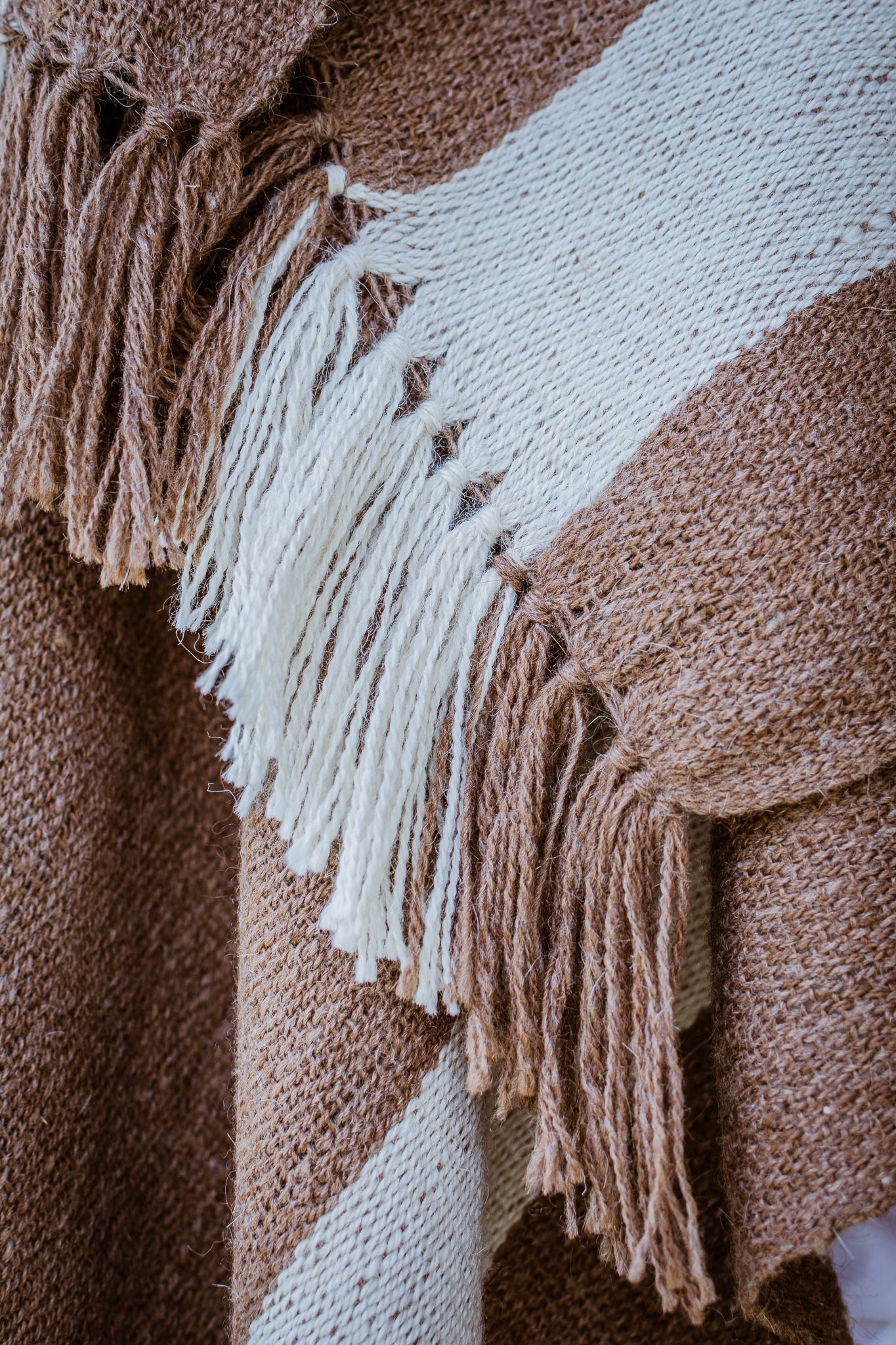 Facón es parte de la Colección "Runa" es un poncho de hilos de llama color natural camel.
