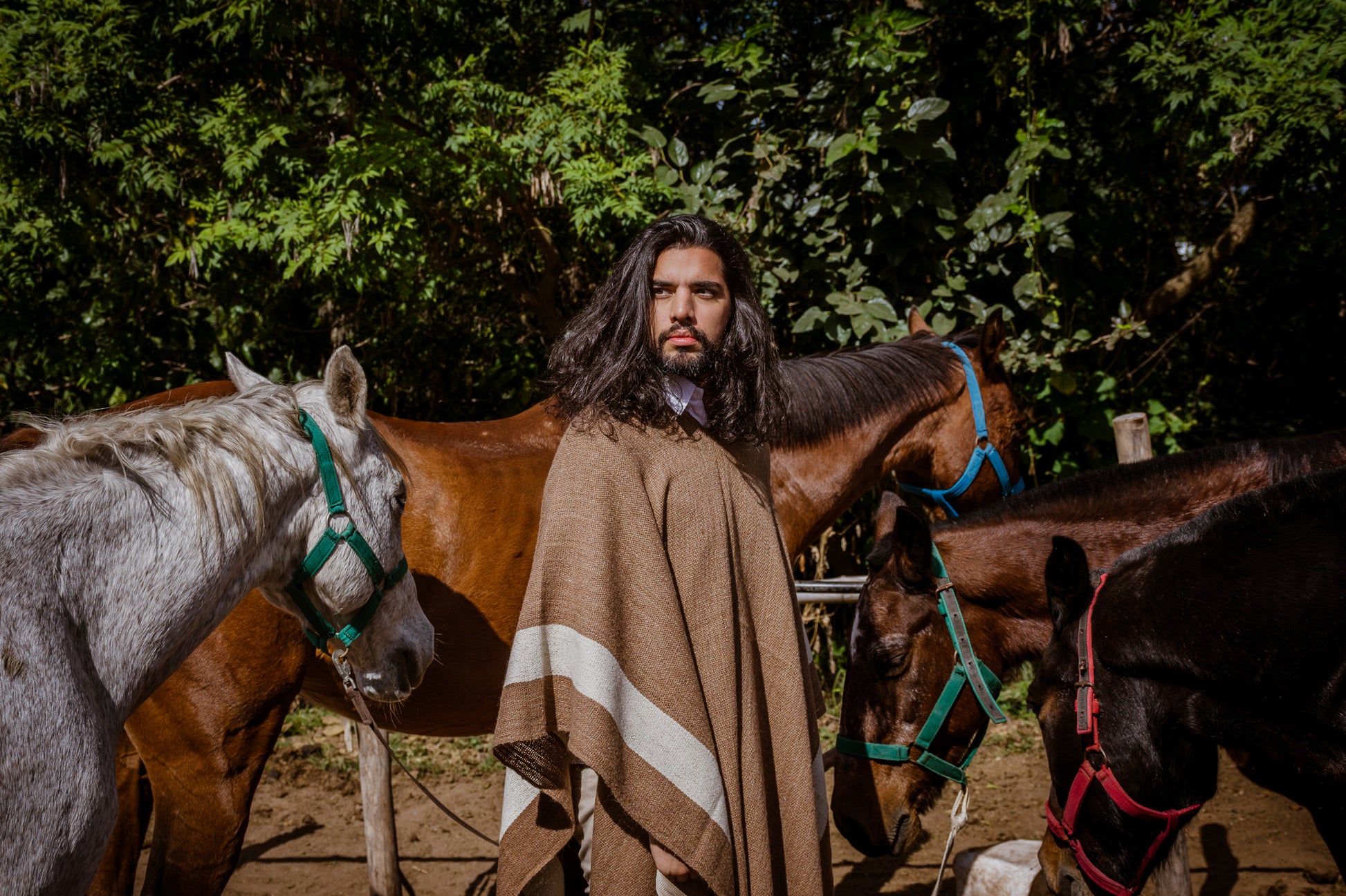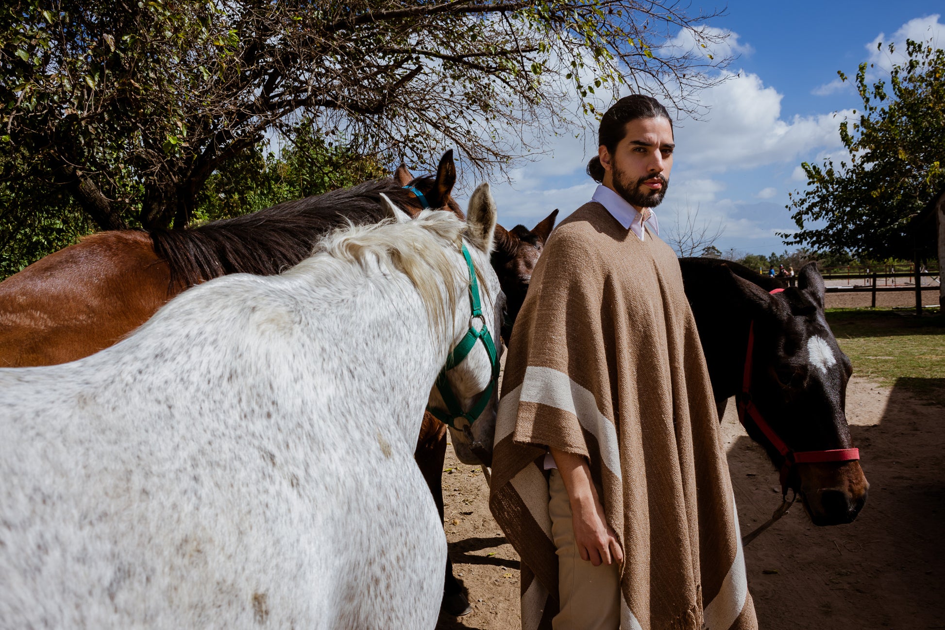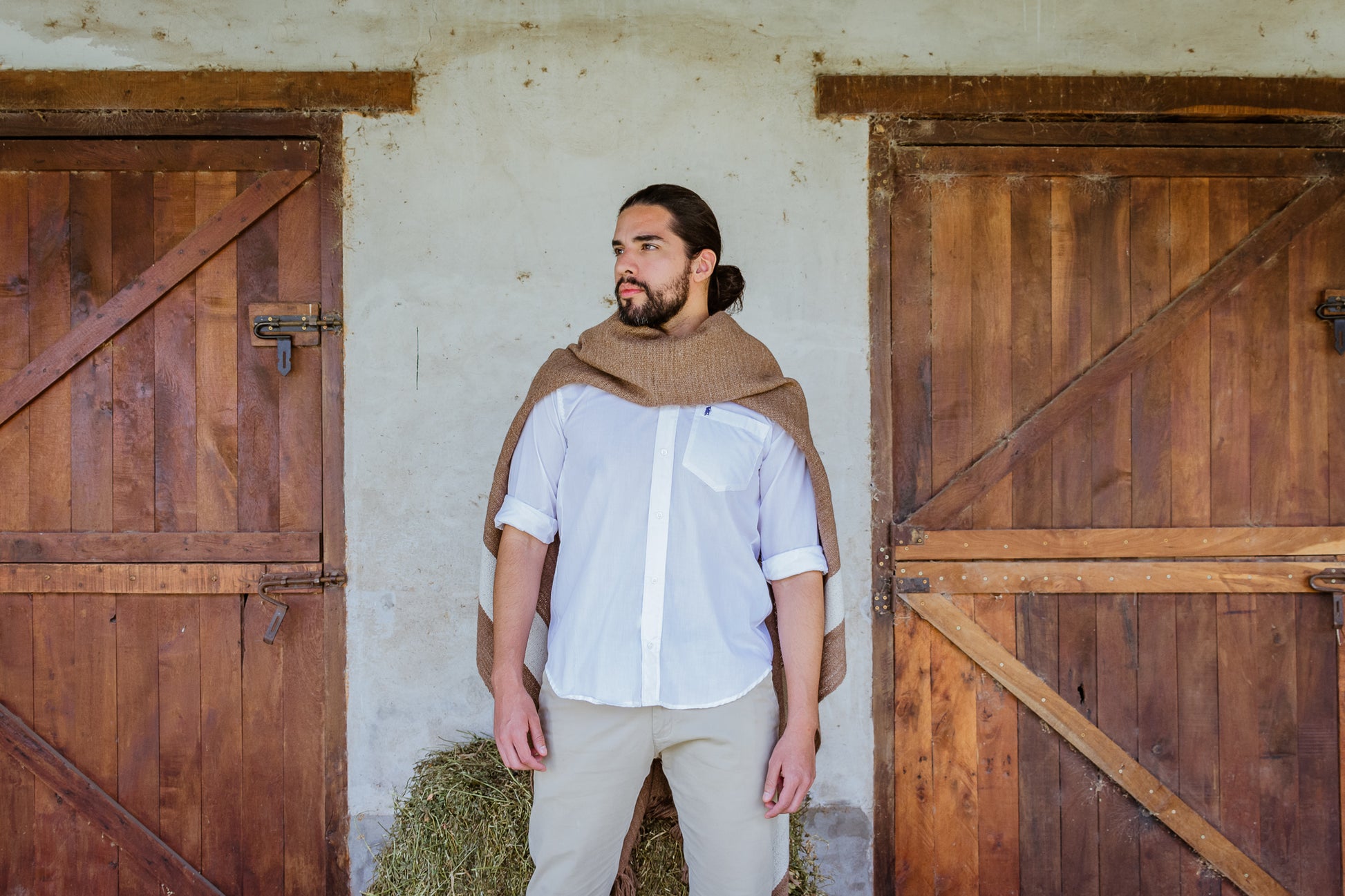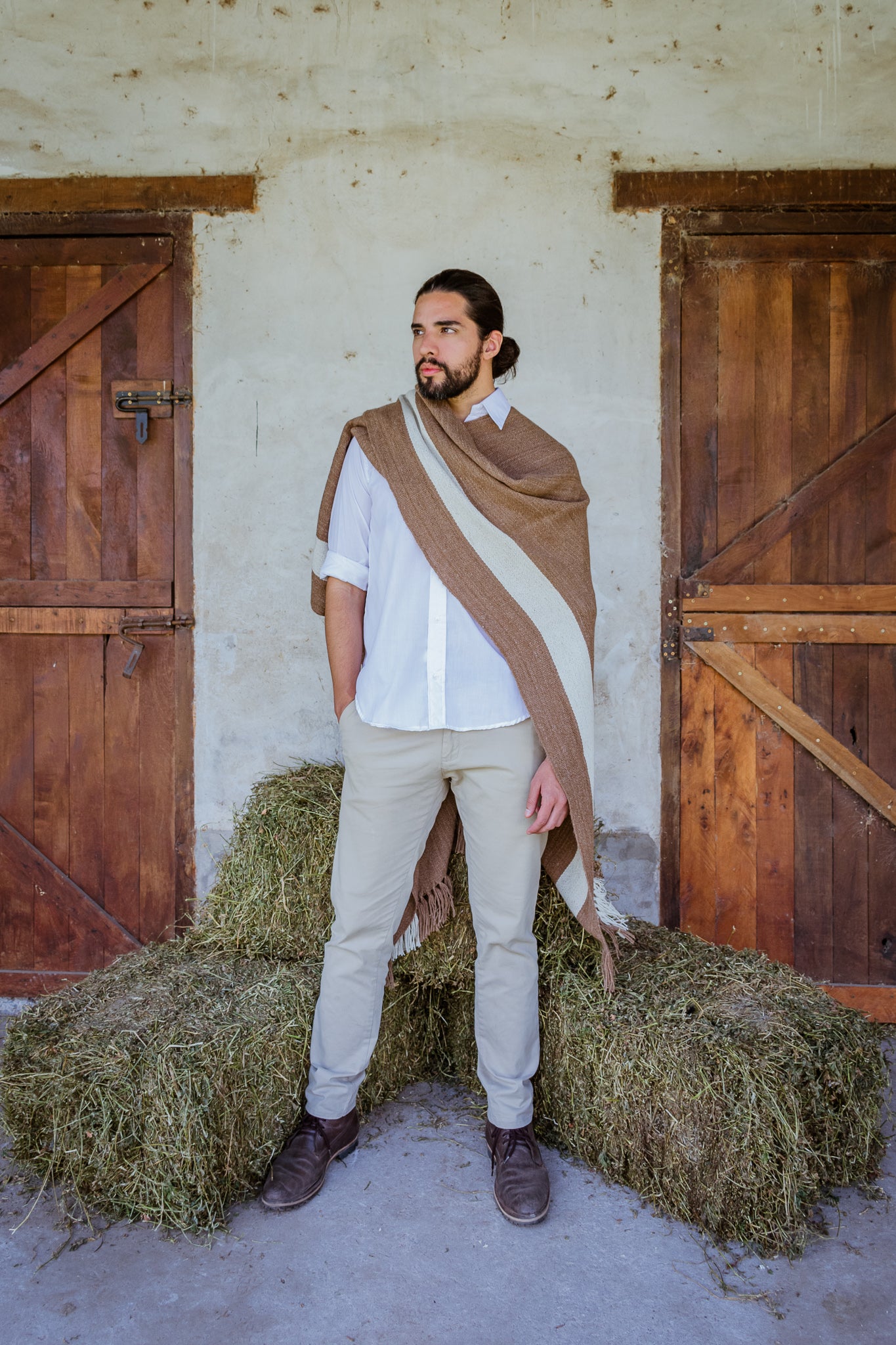 Facón es parte de la Colección "Runa" es un poncho de hilos de llama color natural camel.