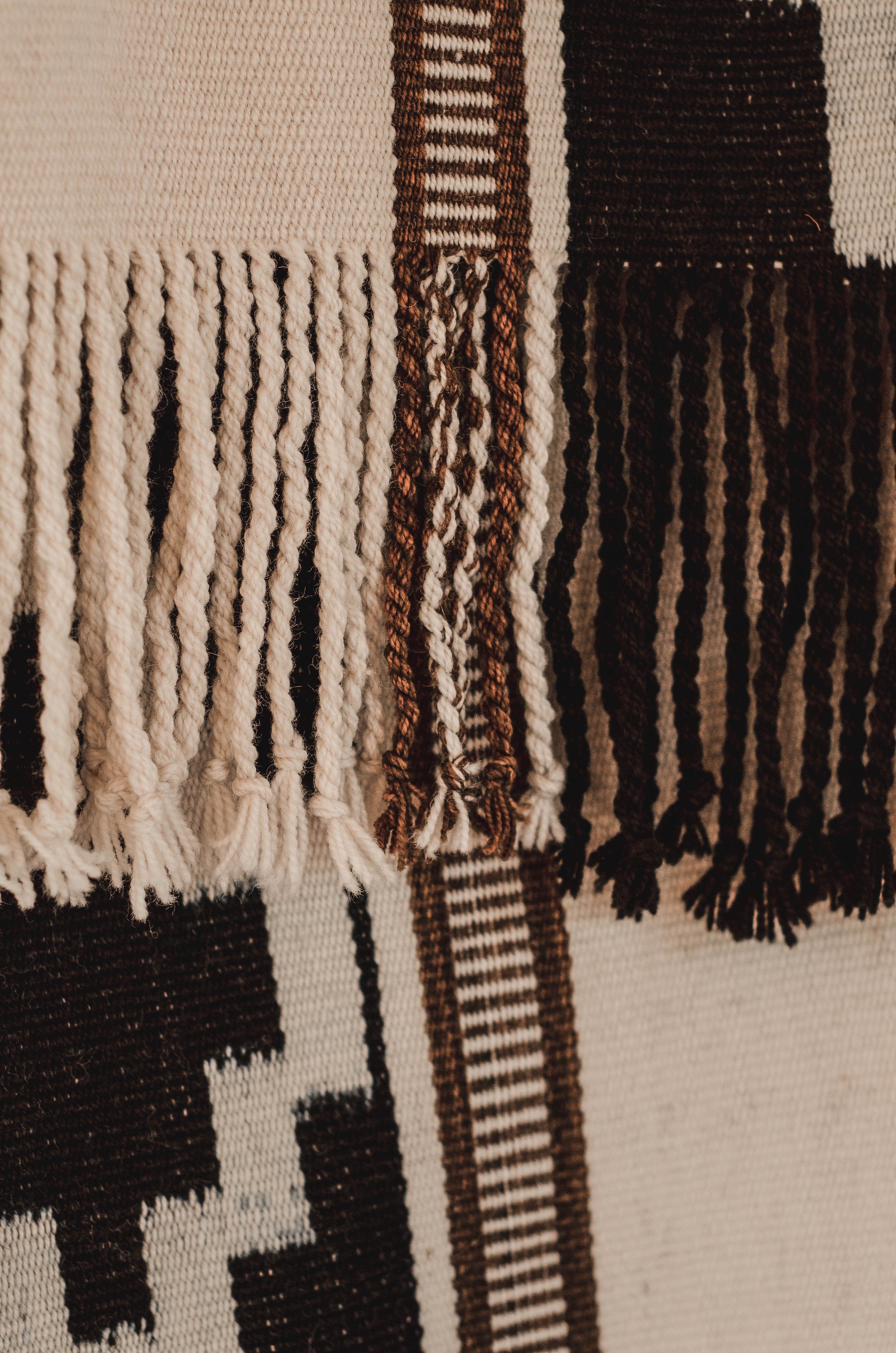 Sobre paño horizontal en telar diseñamos la obra a mano con técnica de guarda atada, es el trabajo de una familia de artesanos que colabora al cuidado de nuestras tradiciones y saberes.