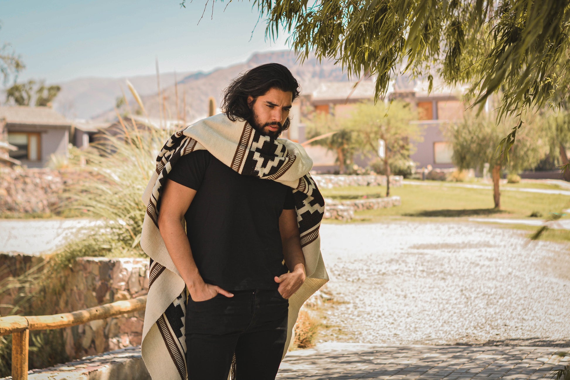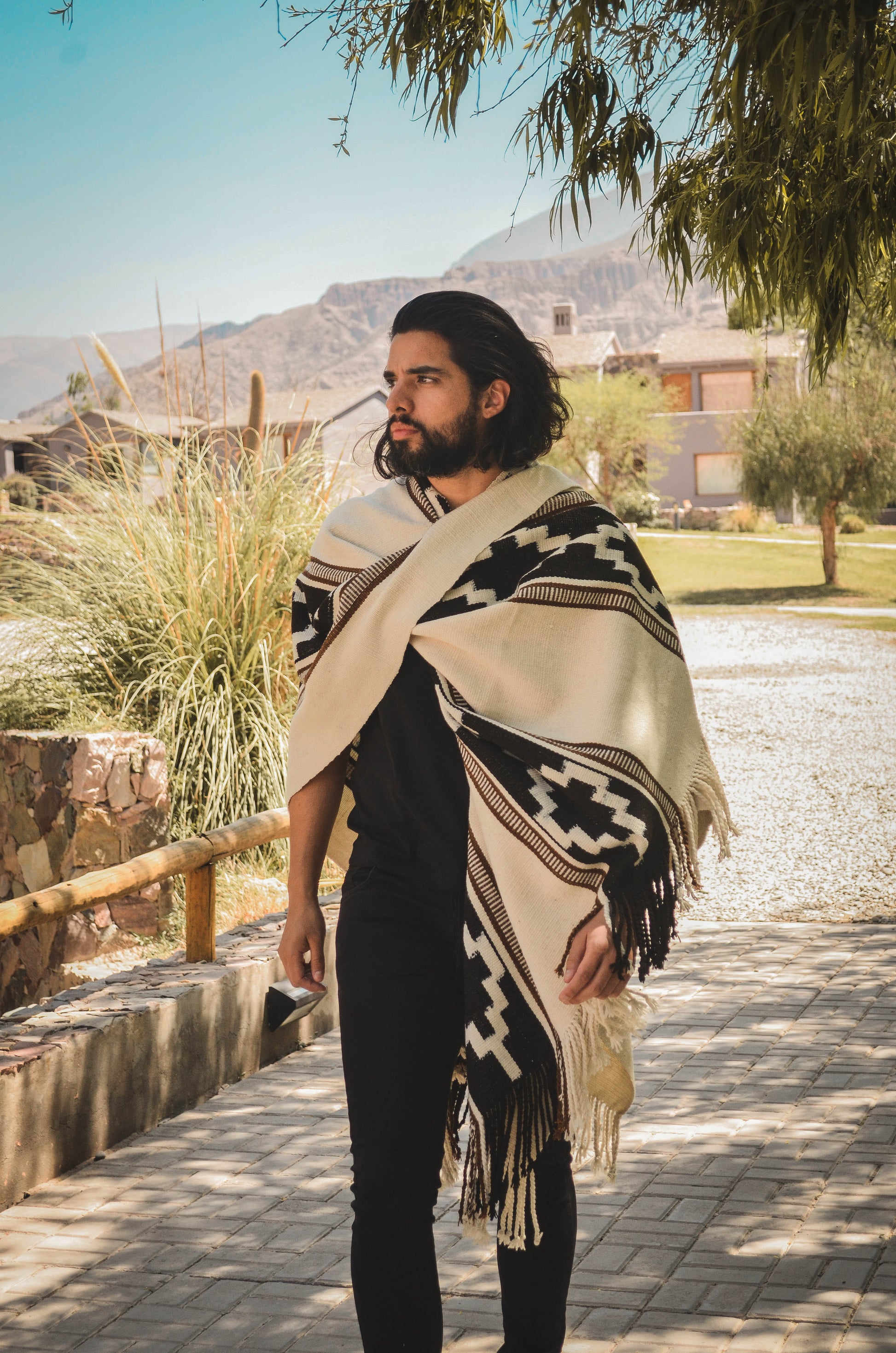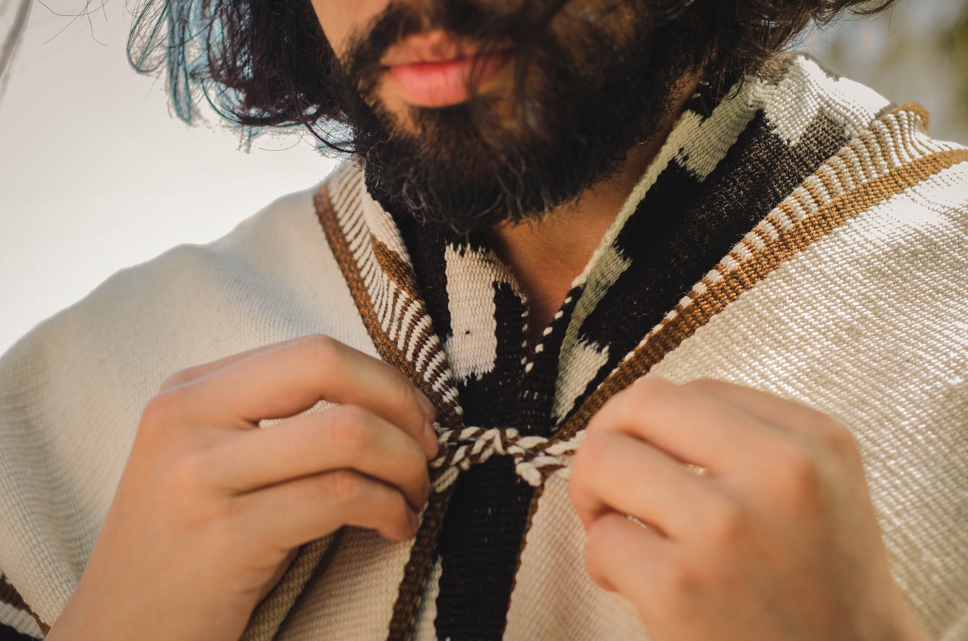 Poncho "Pacheco" es un poncho Guarda Atada y es parte de la "Colección Federal" de 23 obras textiles Uayno, es una pieza única tejida artesanalmente con hilos de lana de oveja en telar criollo.