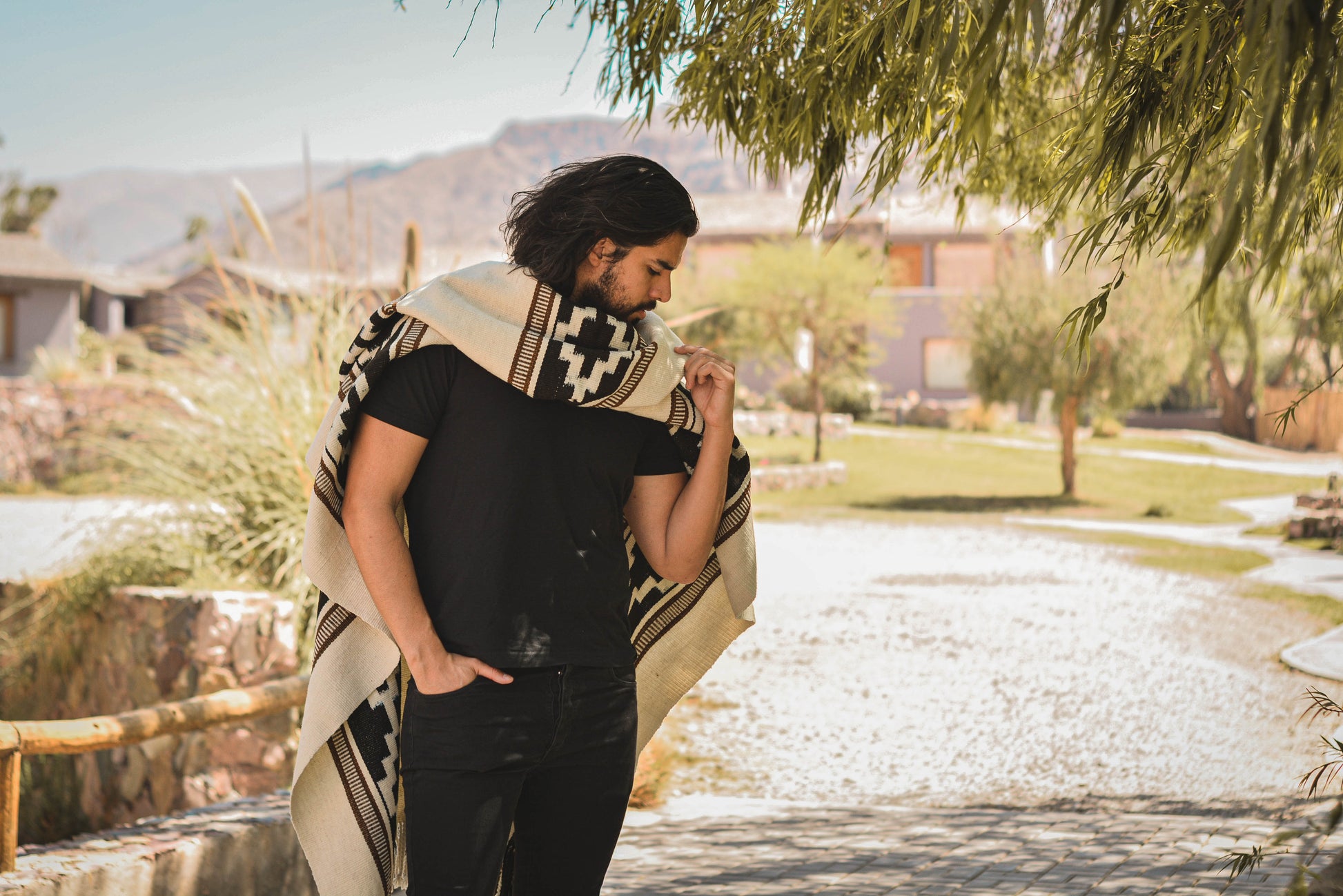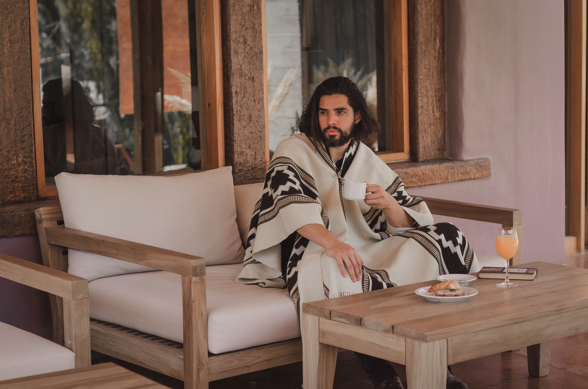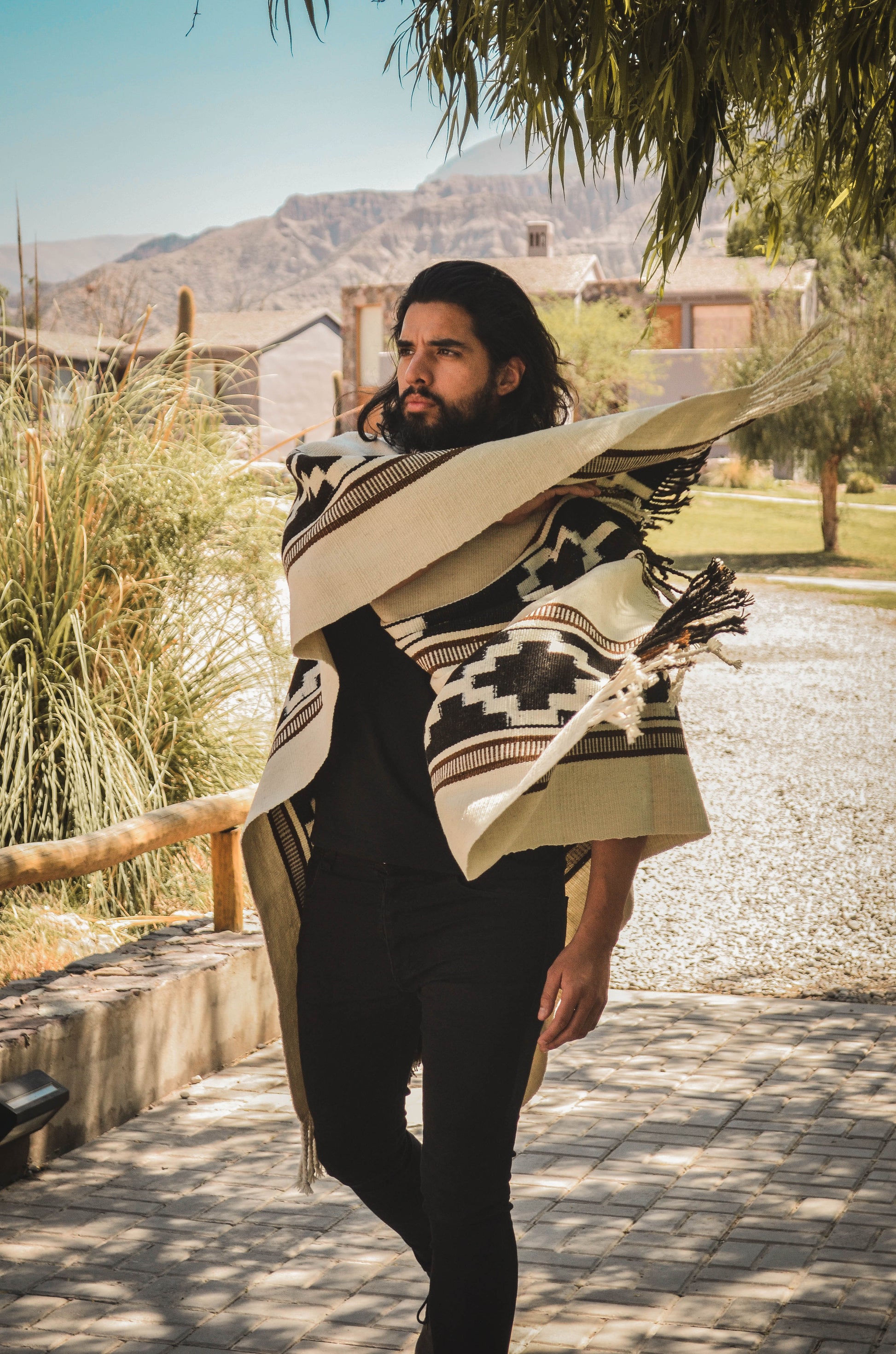 Poncho "Pacheco" es un poncho Guarda Atada y es parte de la "Colección Federal" de 23 obras textiles Uayno, es una pieza única tejida artesanalmente con hilos de lana de oveja en telar criollo.