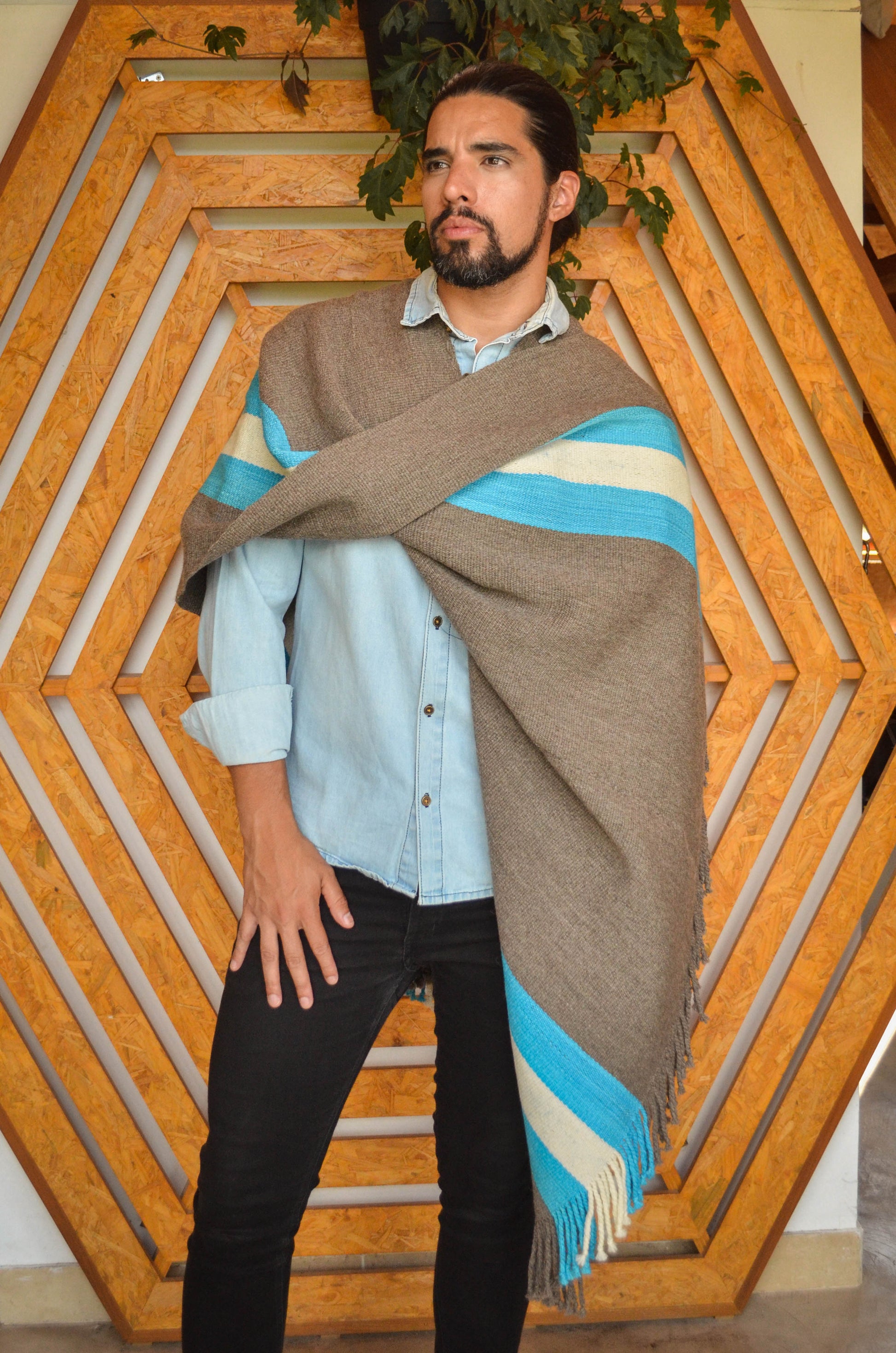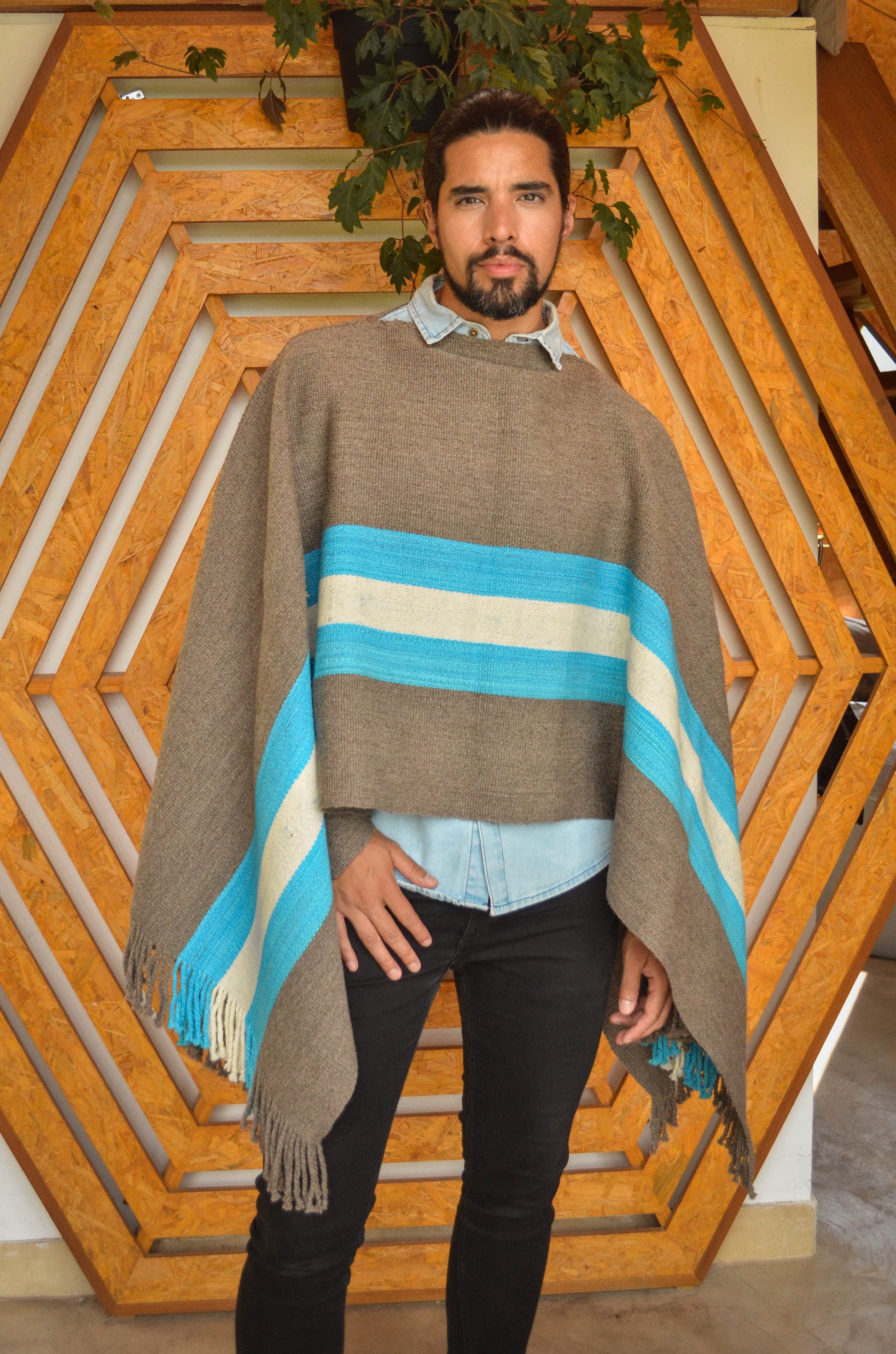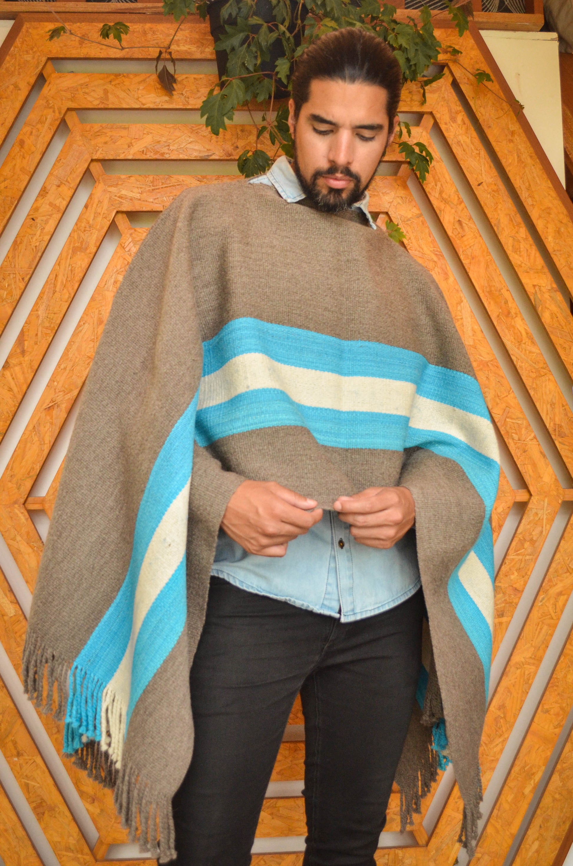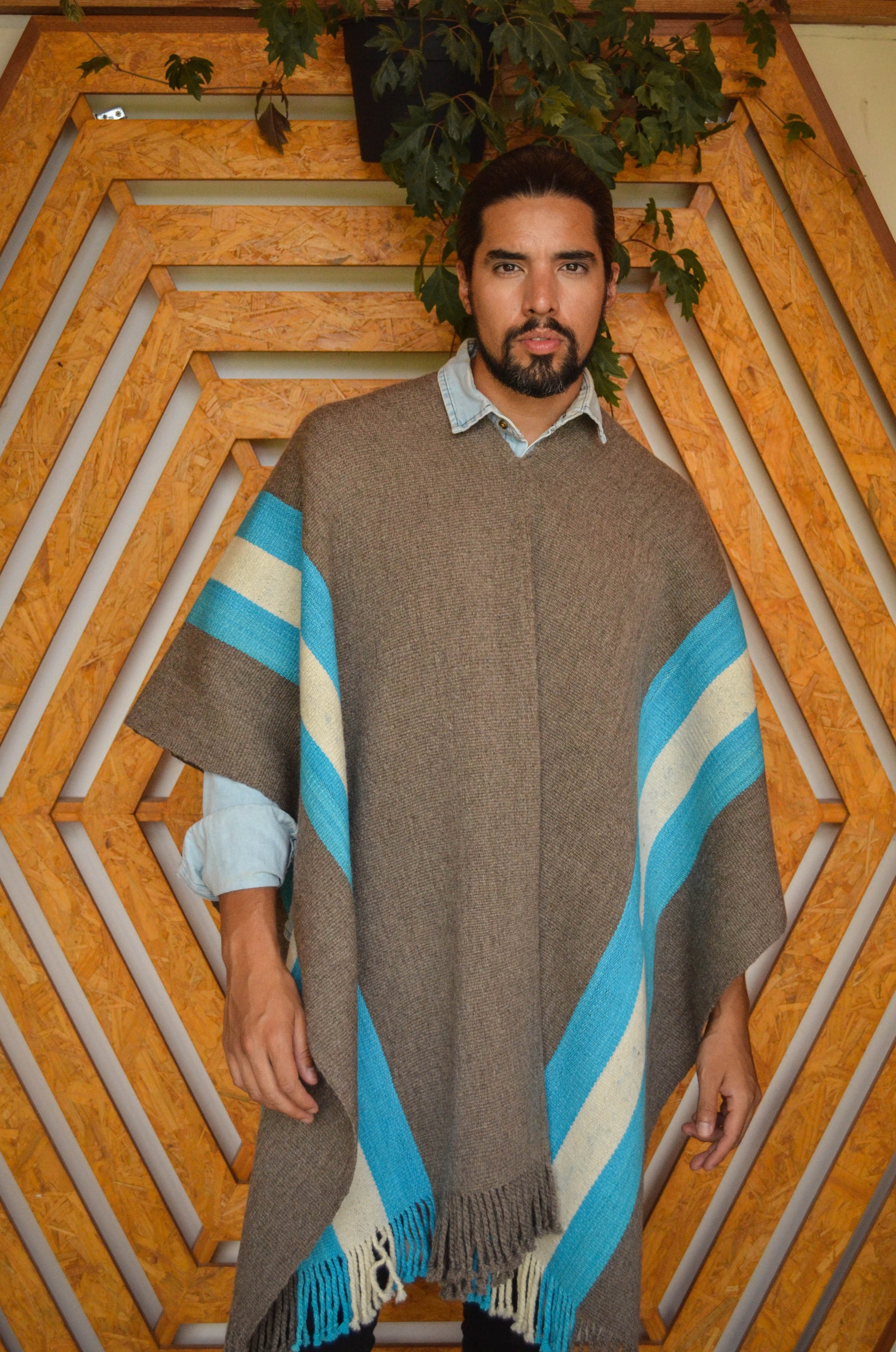 El poncho es una pieza única tejido artesanalmente en telar criollo, de alta densidad de trama cerrada y liviana en dos paños color Gris