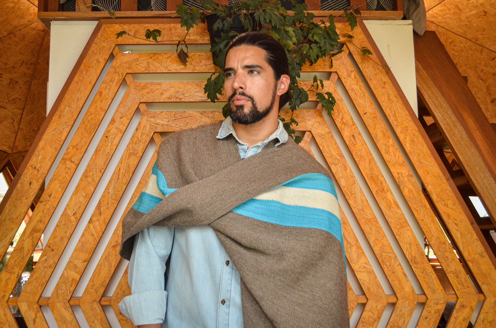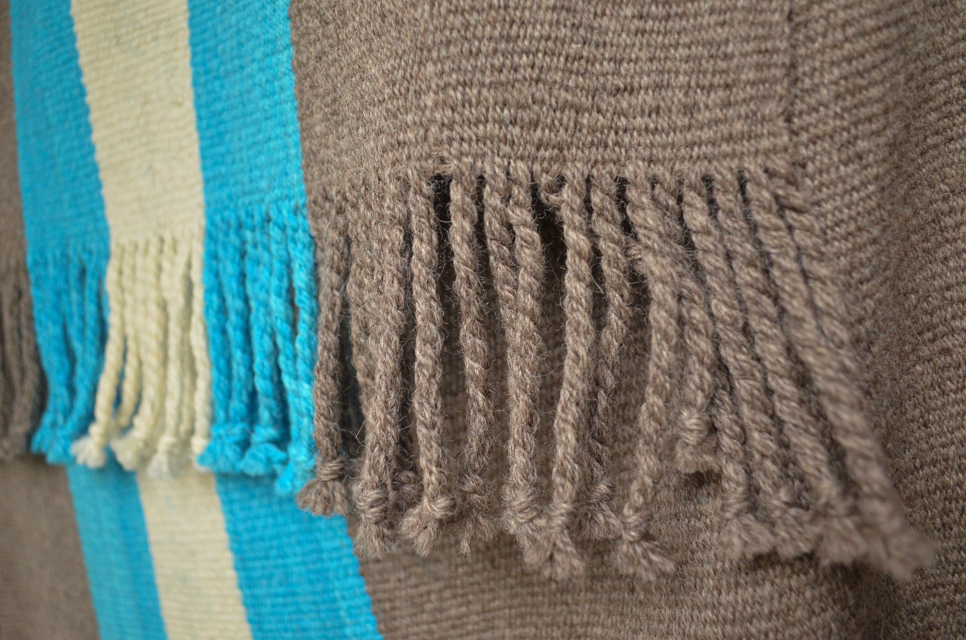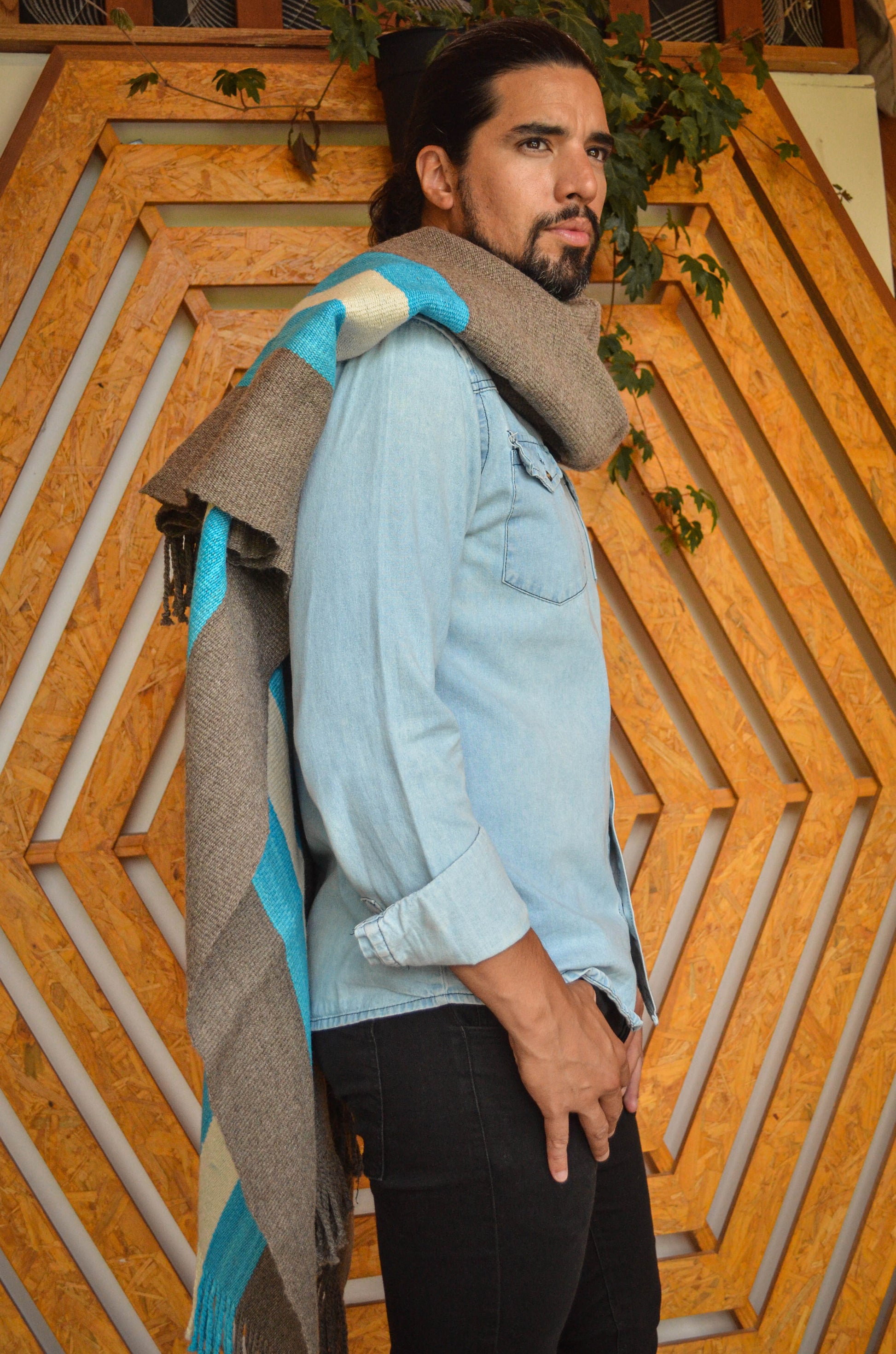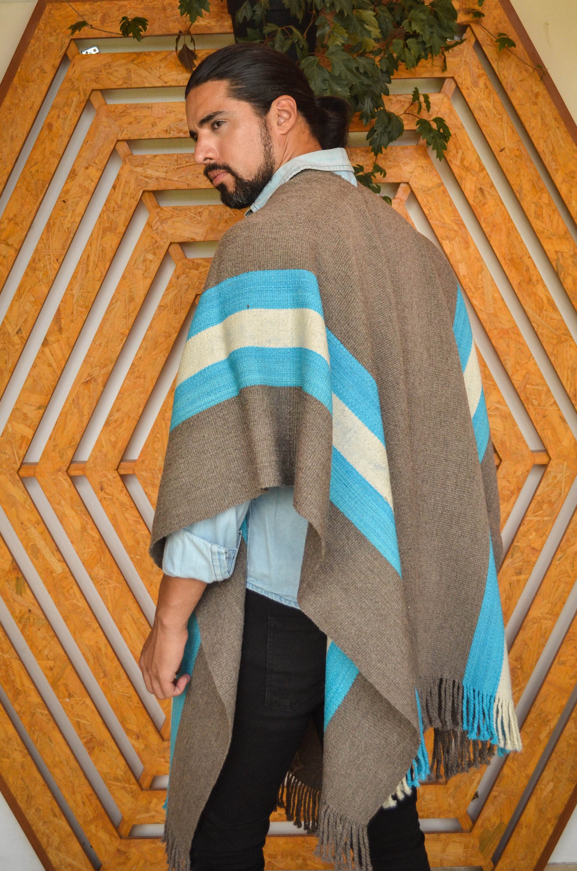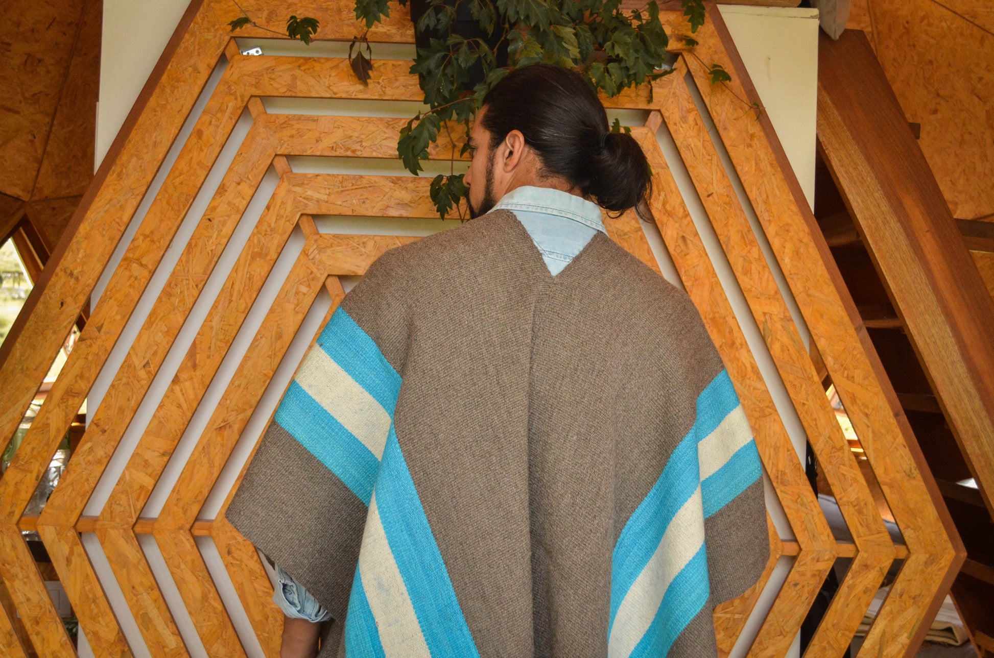 El poncho es una pieza única tejido artesanalmente en telar criollo, de alta densidad de trama cerrada y liviana en dos paños color Gris