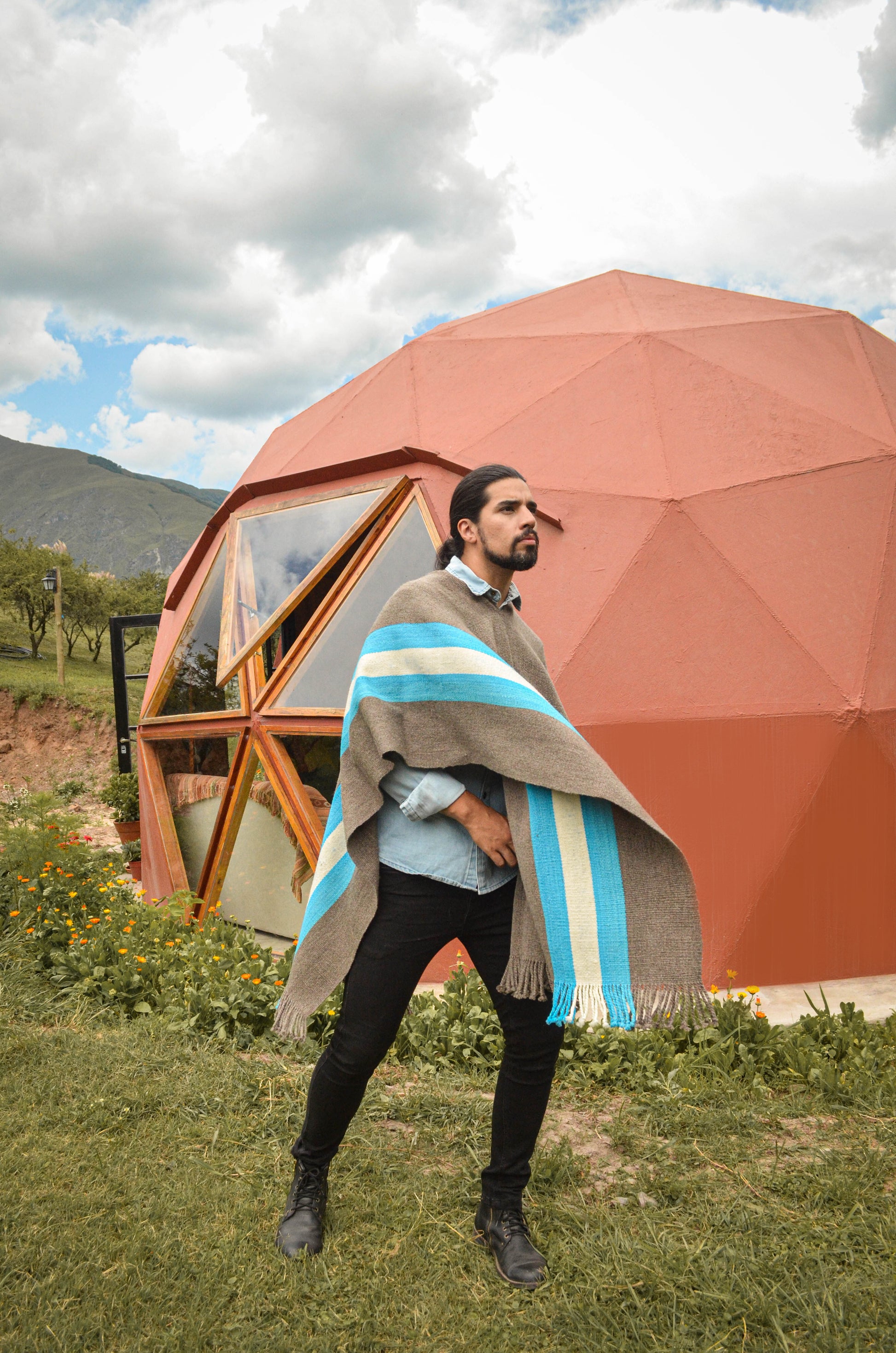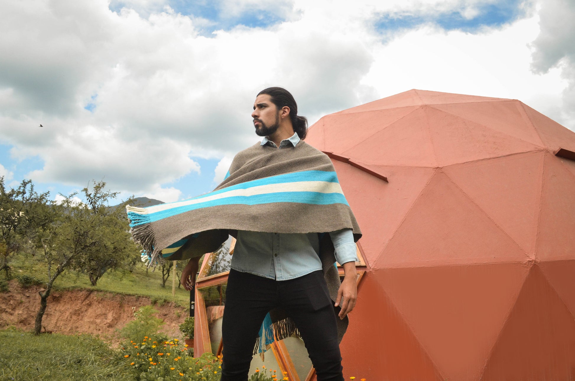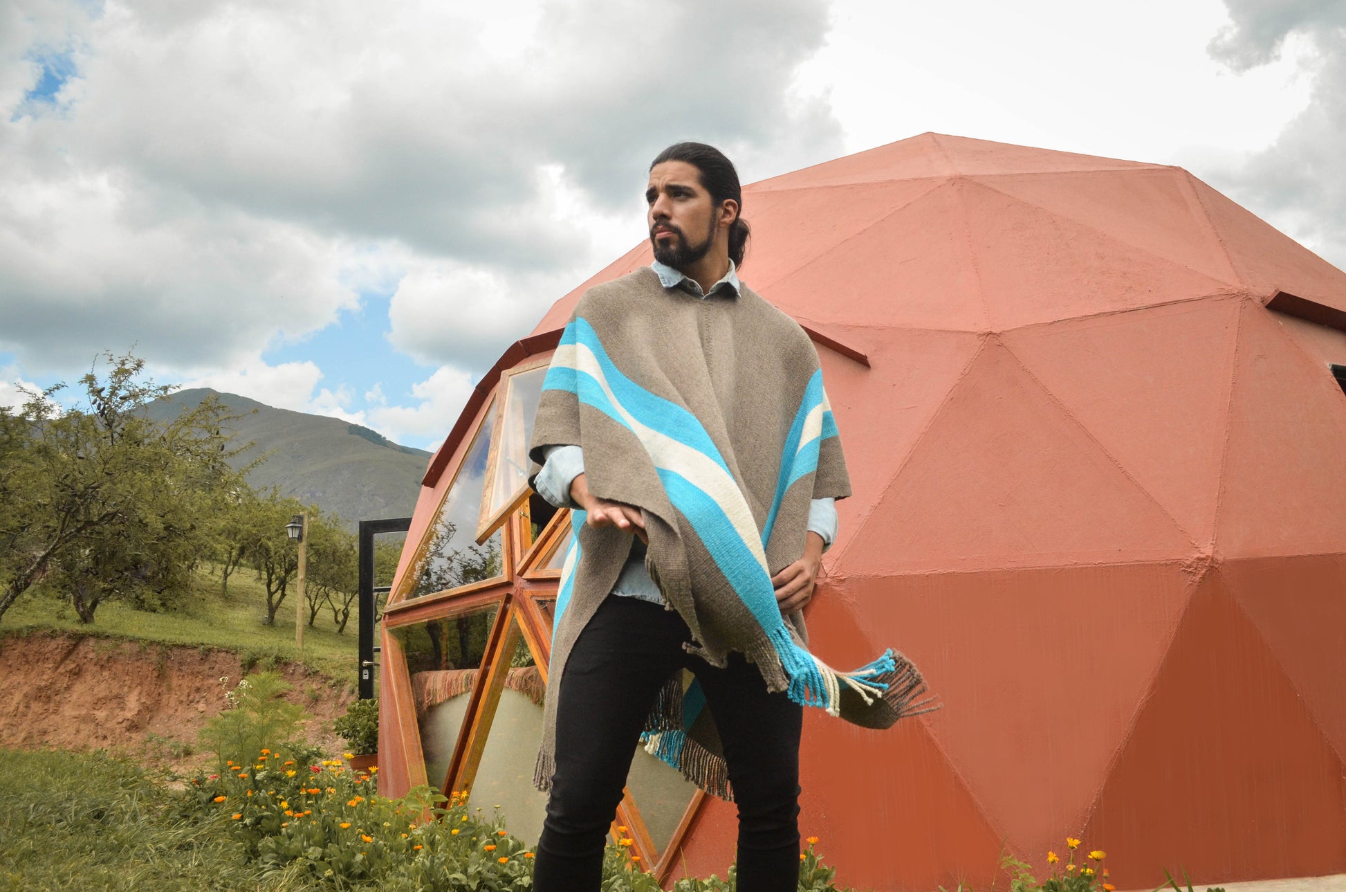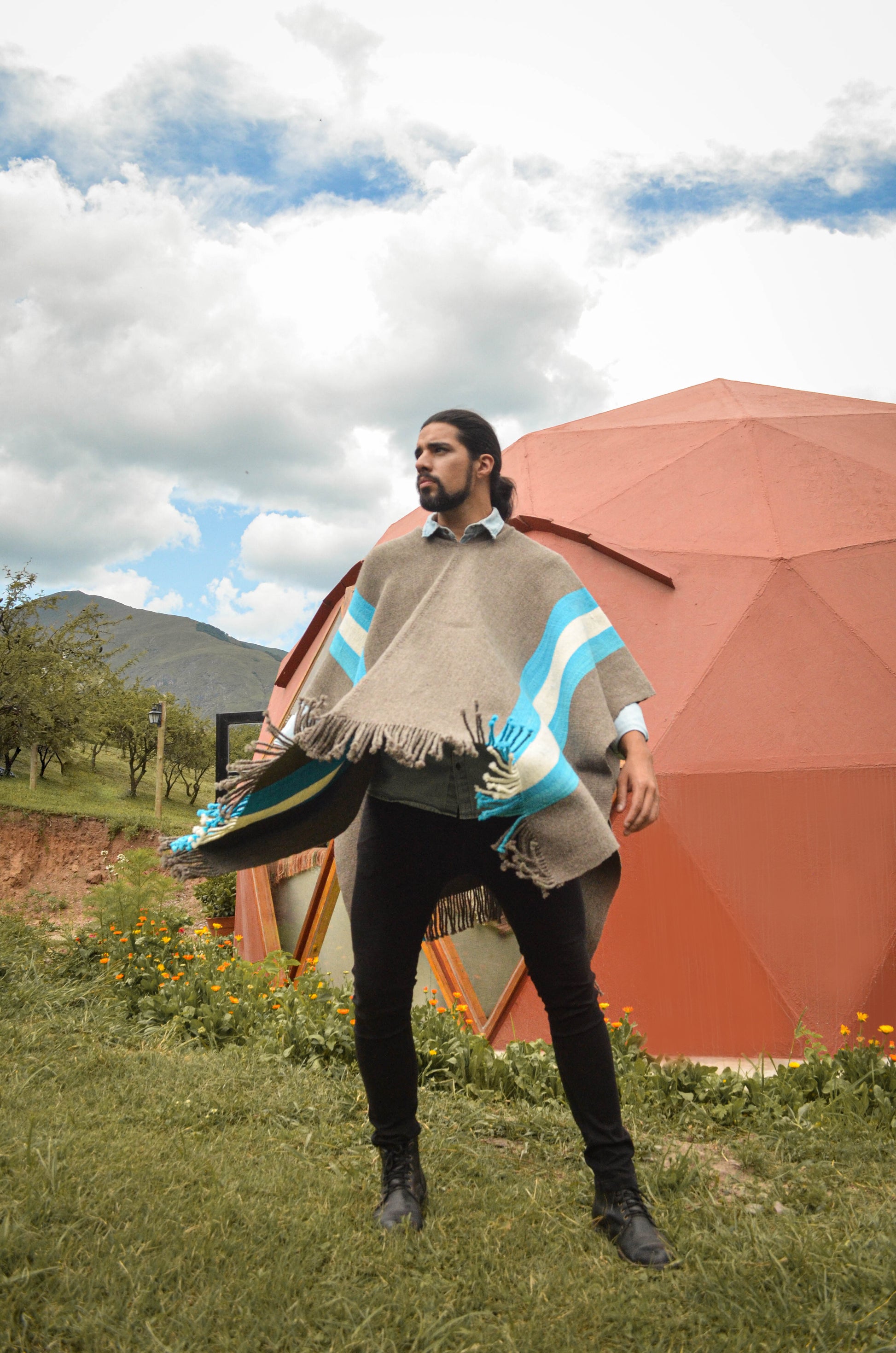El poncho es una pieza única tejido artesanalmente en telar criollo, de alta densidad de trama cerrada y liviana en dos paños color Gris