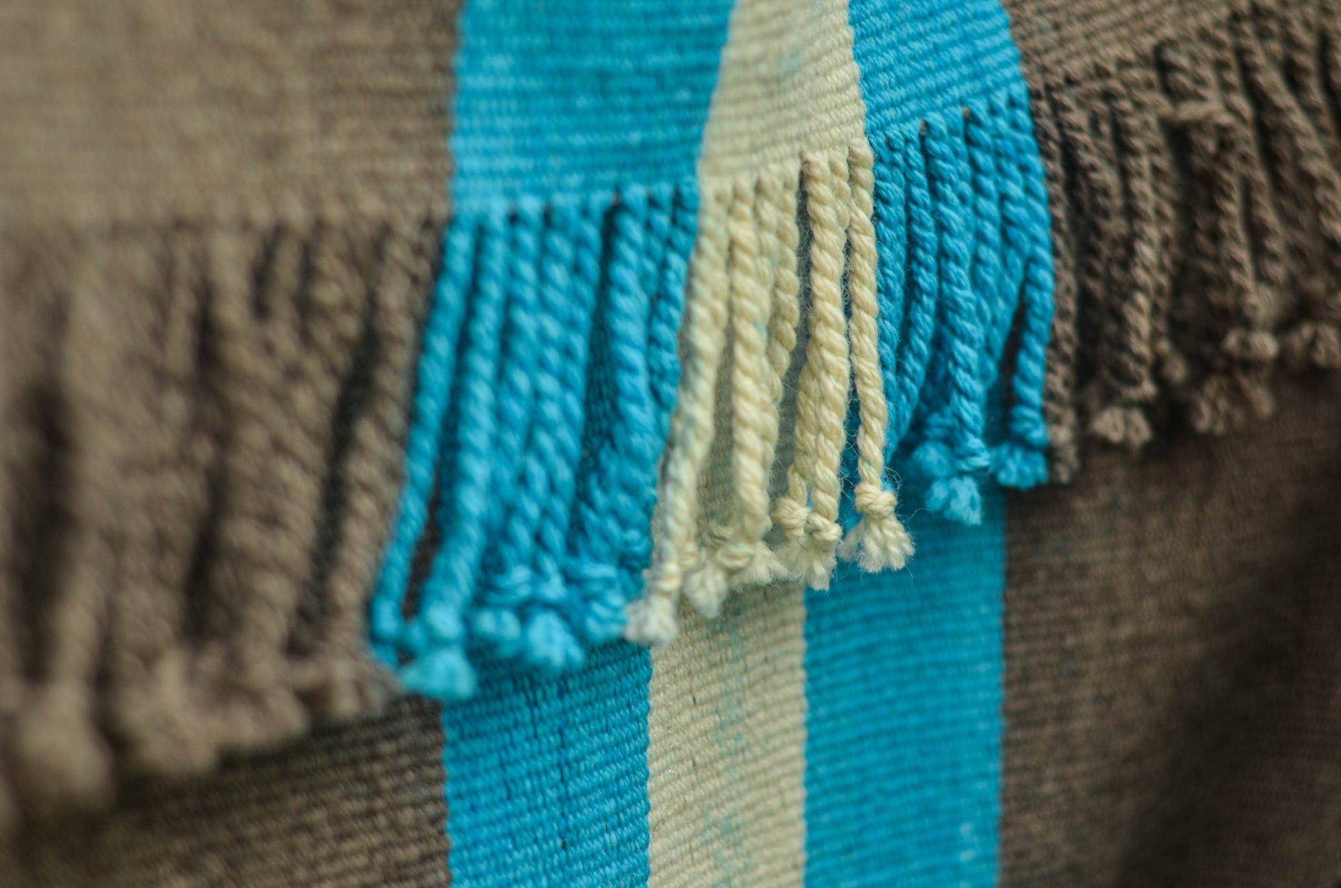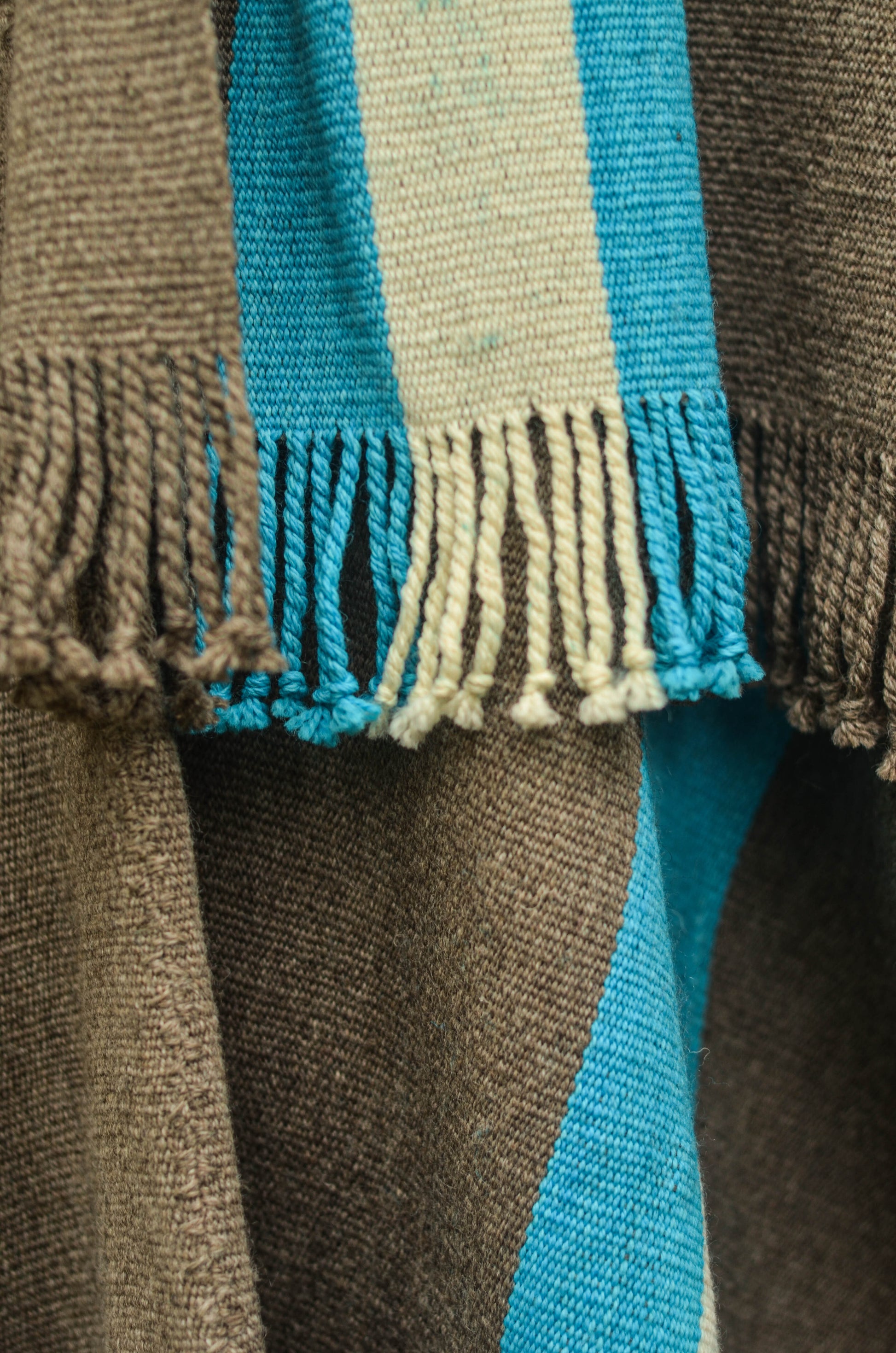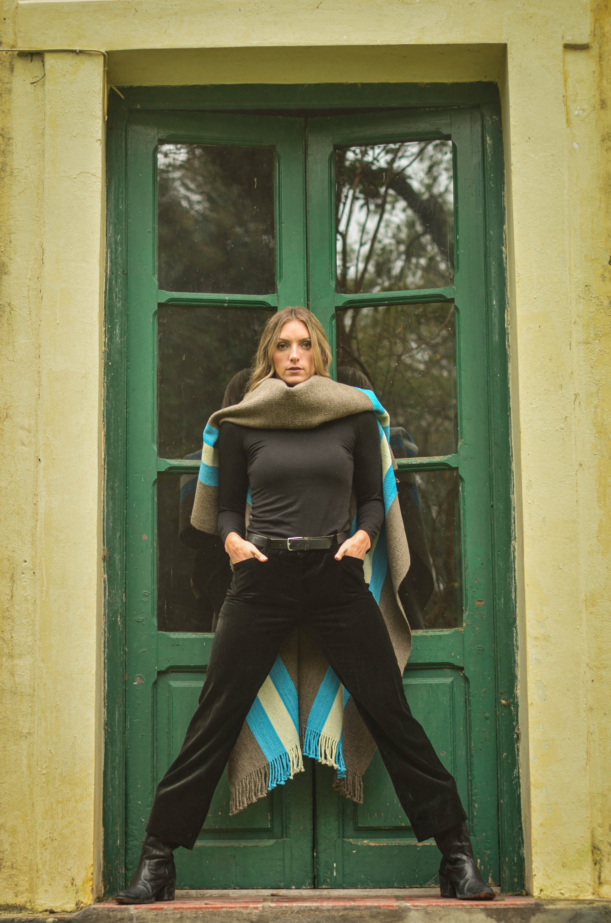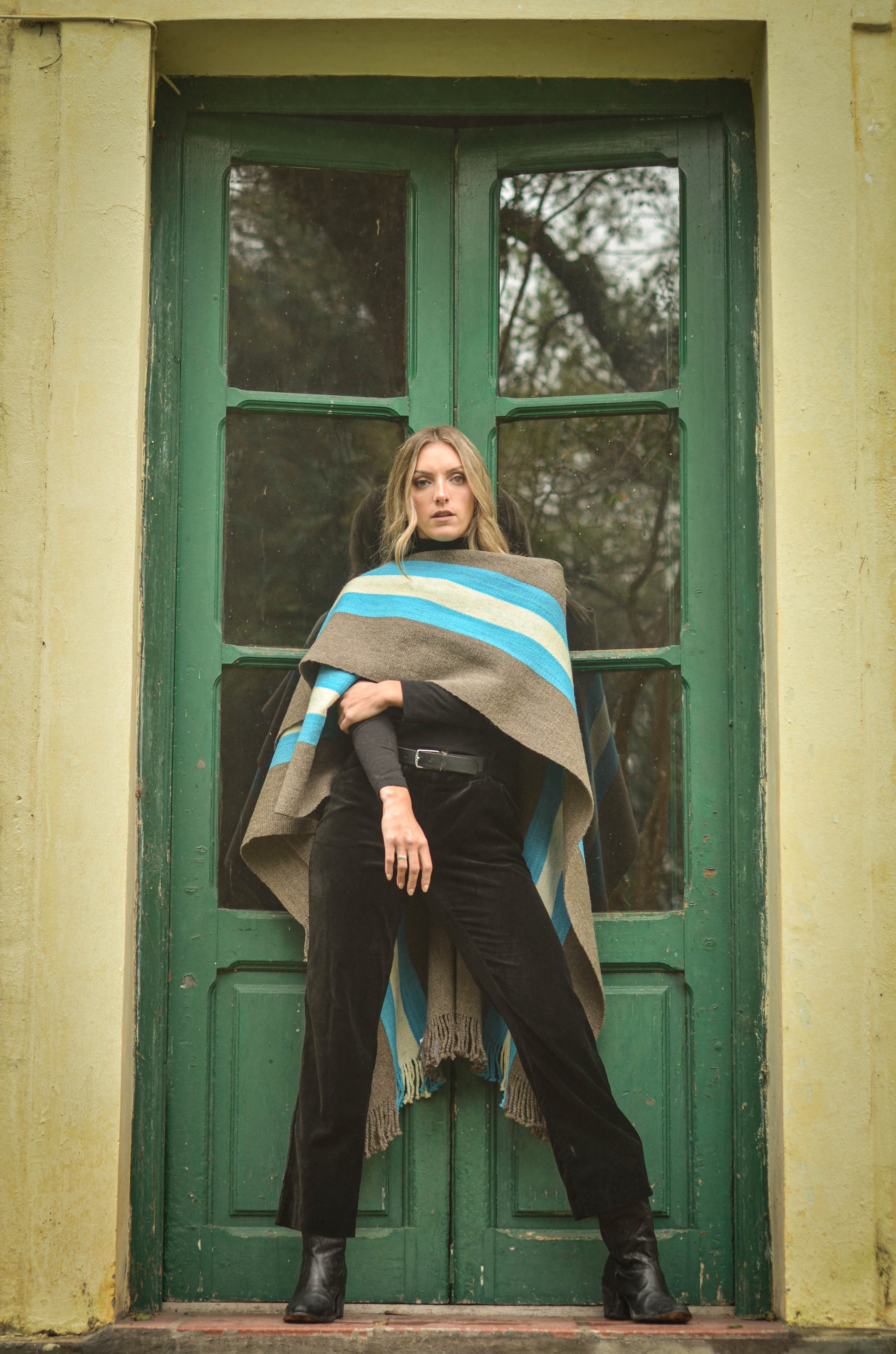 El poncho es una pieza única tejido artesanalmente en telar criollo, de alta densidad de trama cerrada y liviana en dos paños color Gris