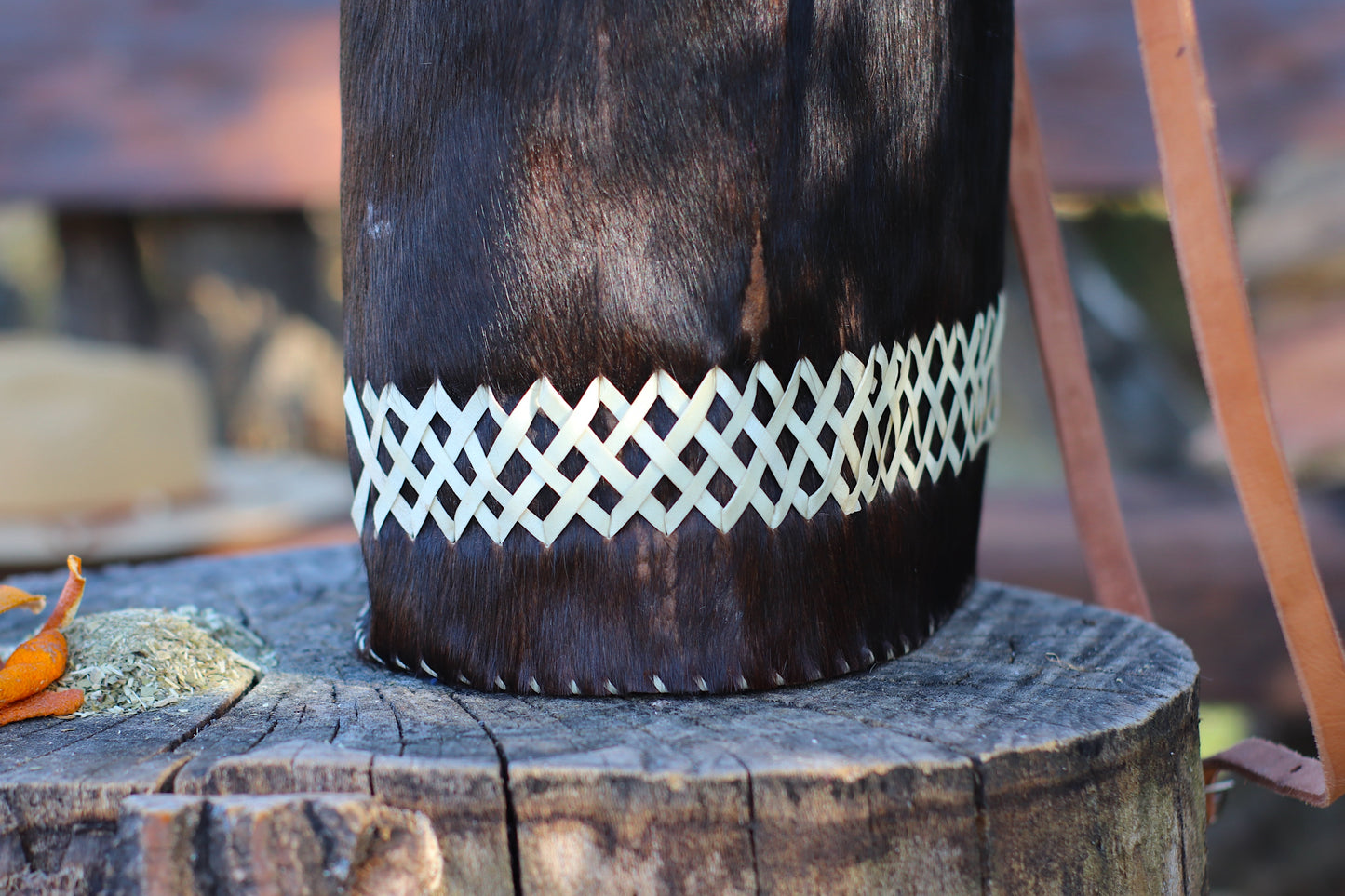 Luego, durante 3 meses, se dedica a curar los cueros, es decir que cada piezz de cuero es sometida a un proceso de 90 días para tener durabilidad, inocuidad y calidad de sus obras