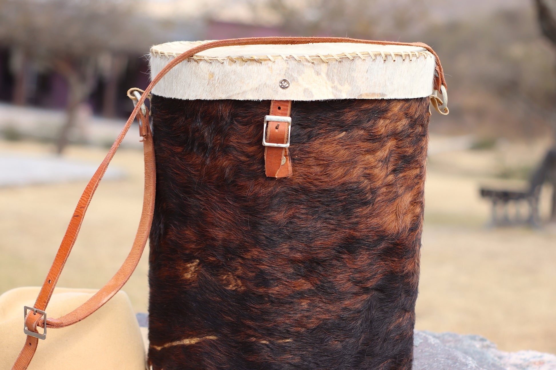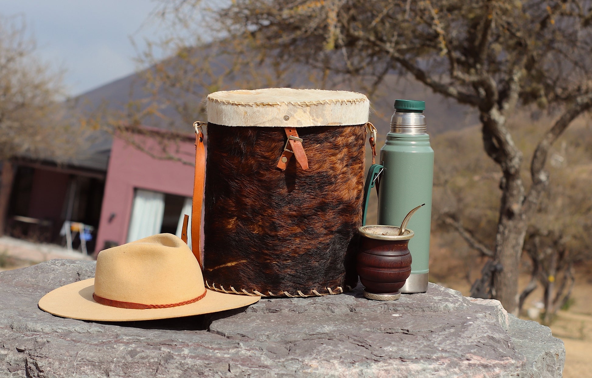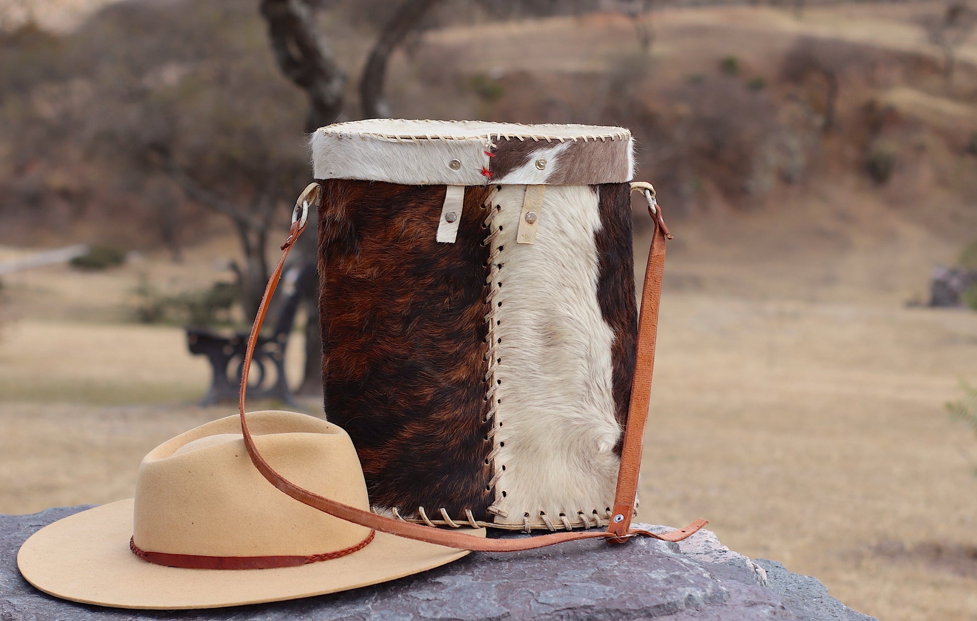 Porta equipo matero de cuero natural hecho a mano cocido con tientos.