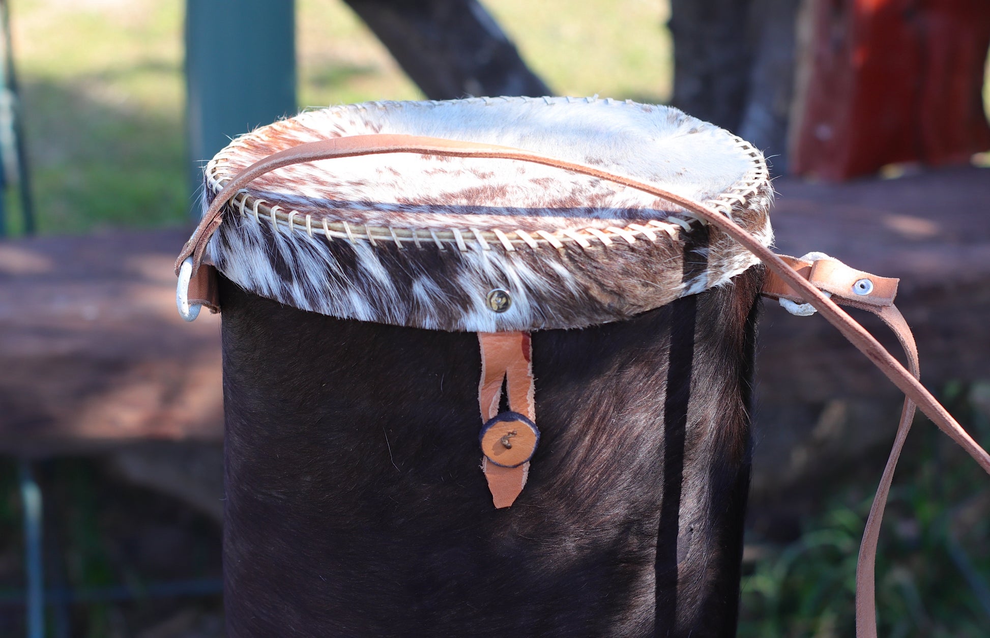 Jesús, el maestro artesano del equipo wayno es el que trabaja las piezas de cuero, recorre fincas monte adentro para obtener los cueros de ganado que deja la hacienda.