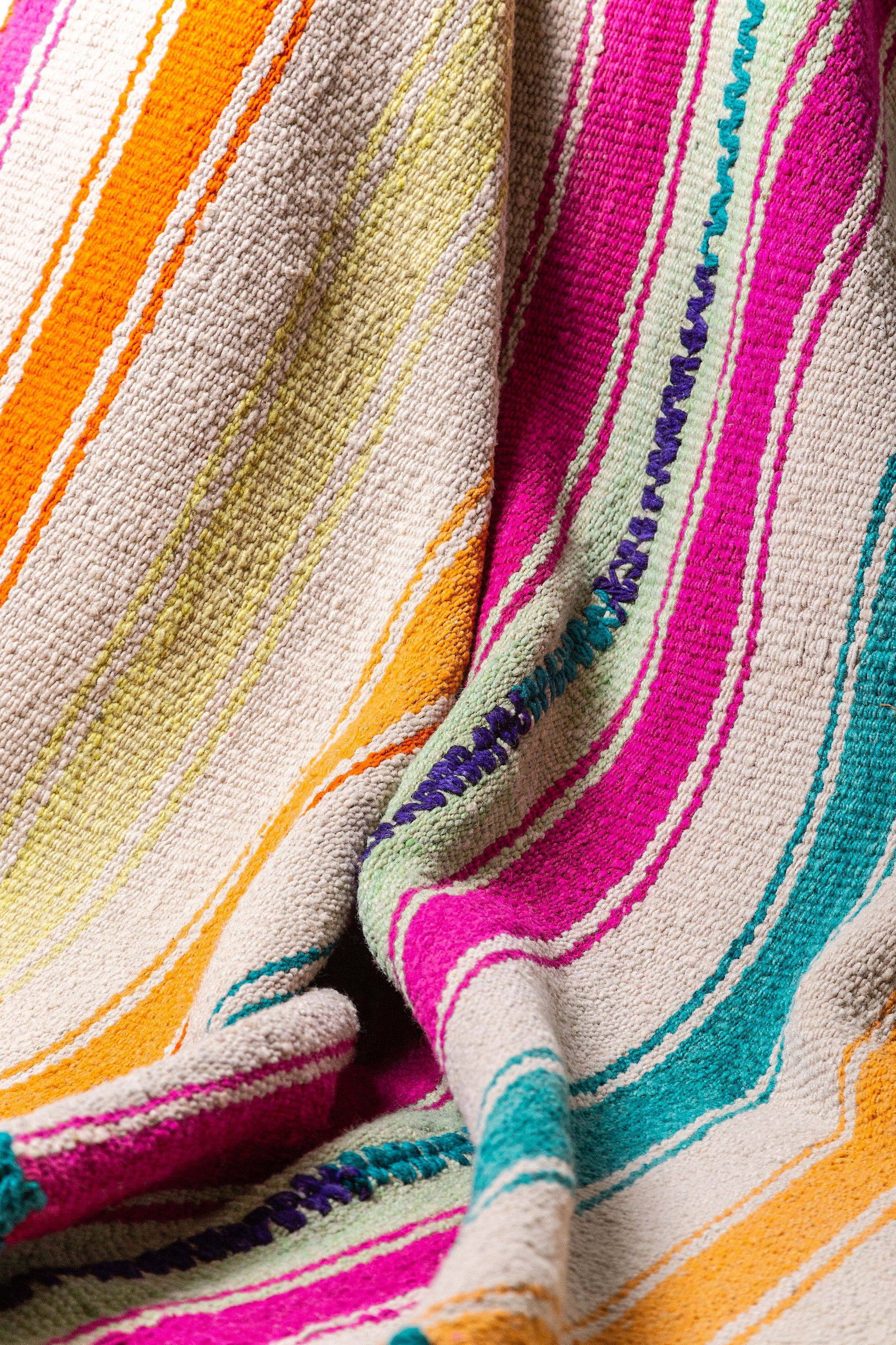 Fue creado con técnicas de tejido ancestral y es artesanal desde el hilado en rueca hasta la confección en viejo telar.