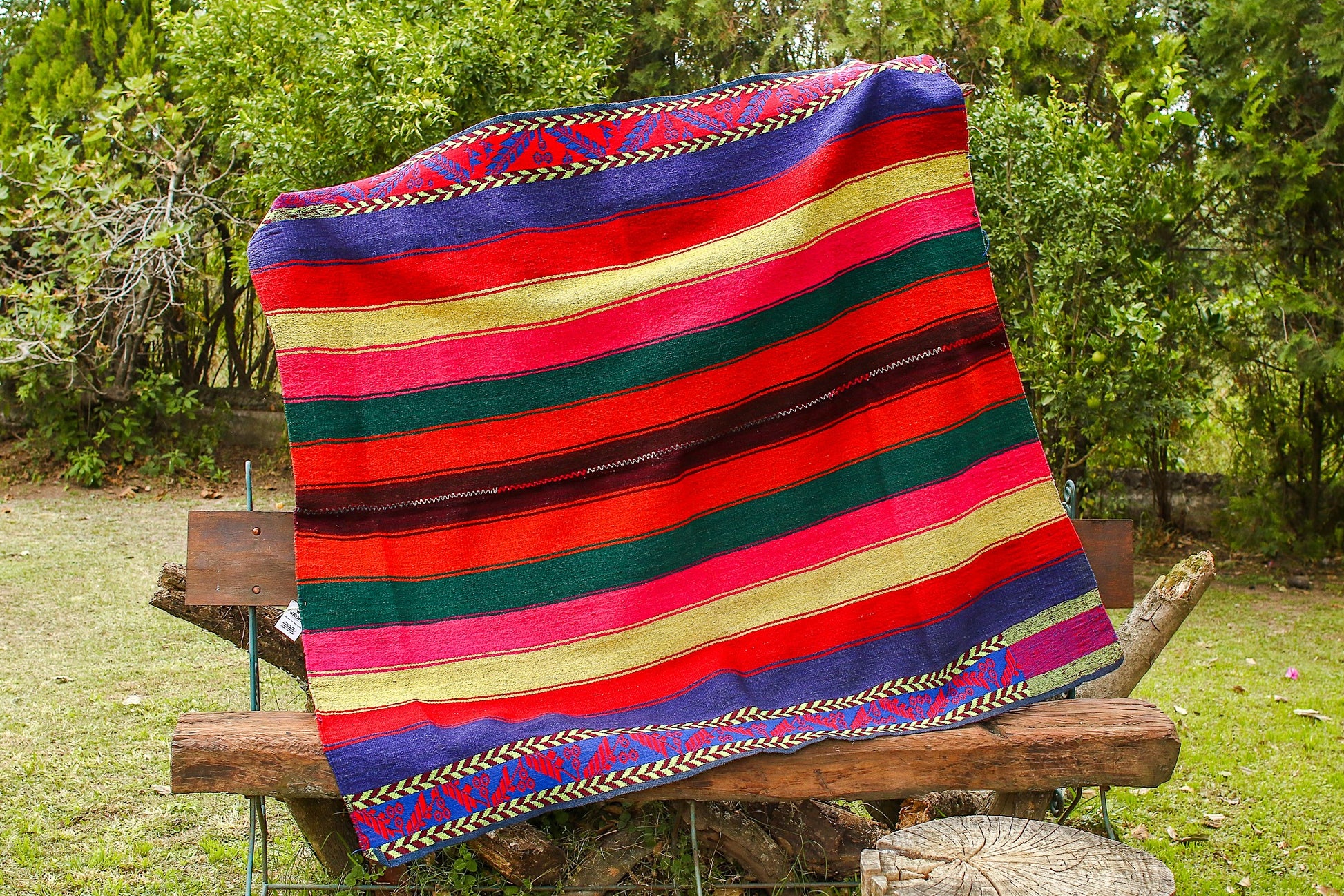Puyo antiguo de lana de oveja, hecho a mano en telar antiguo.