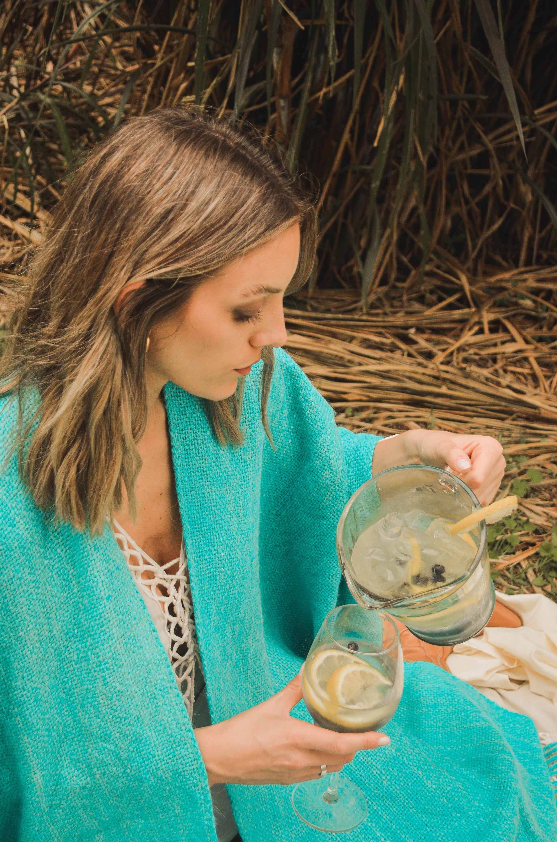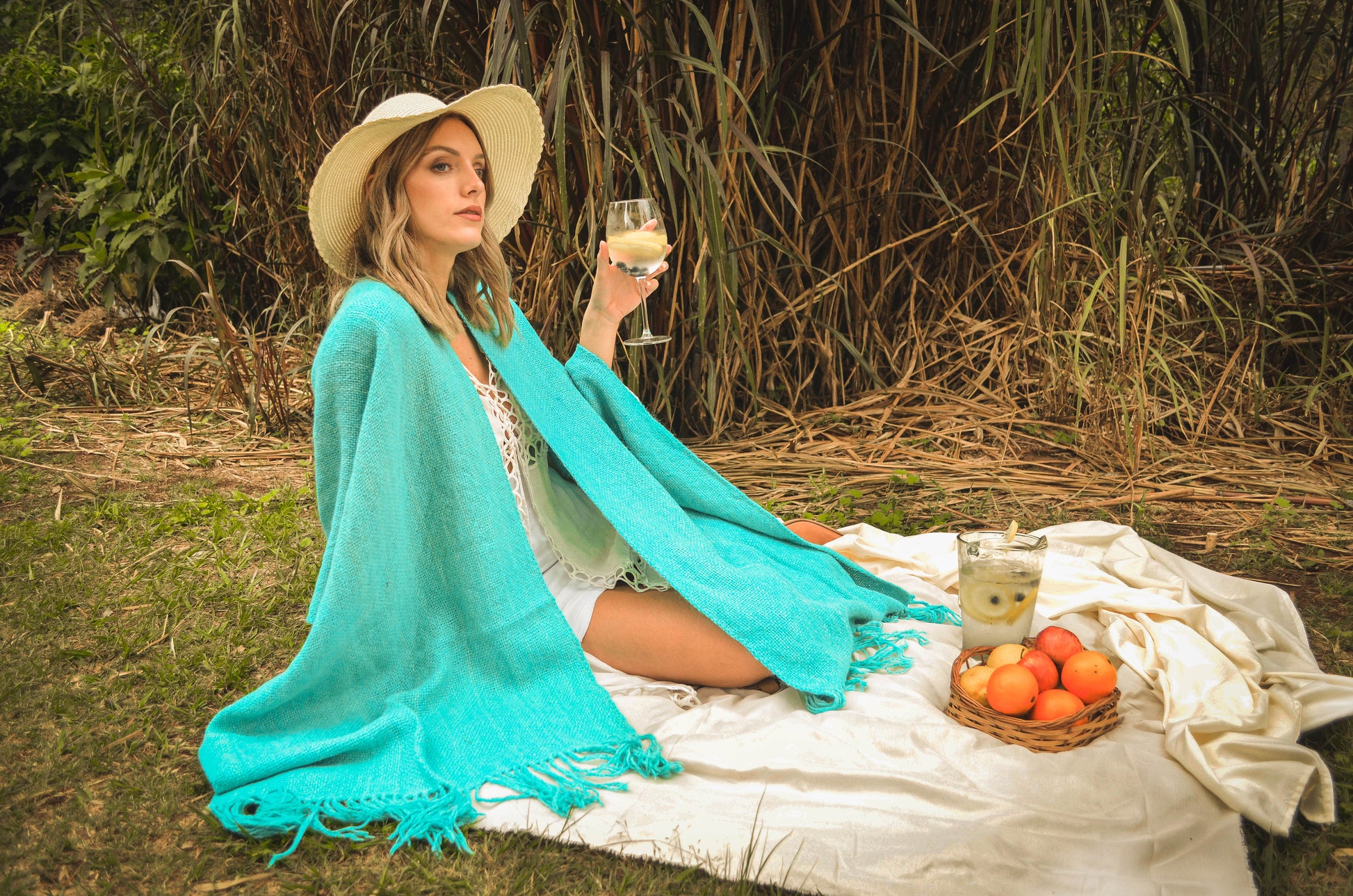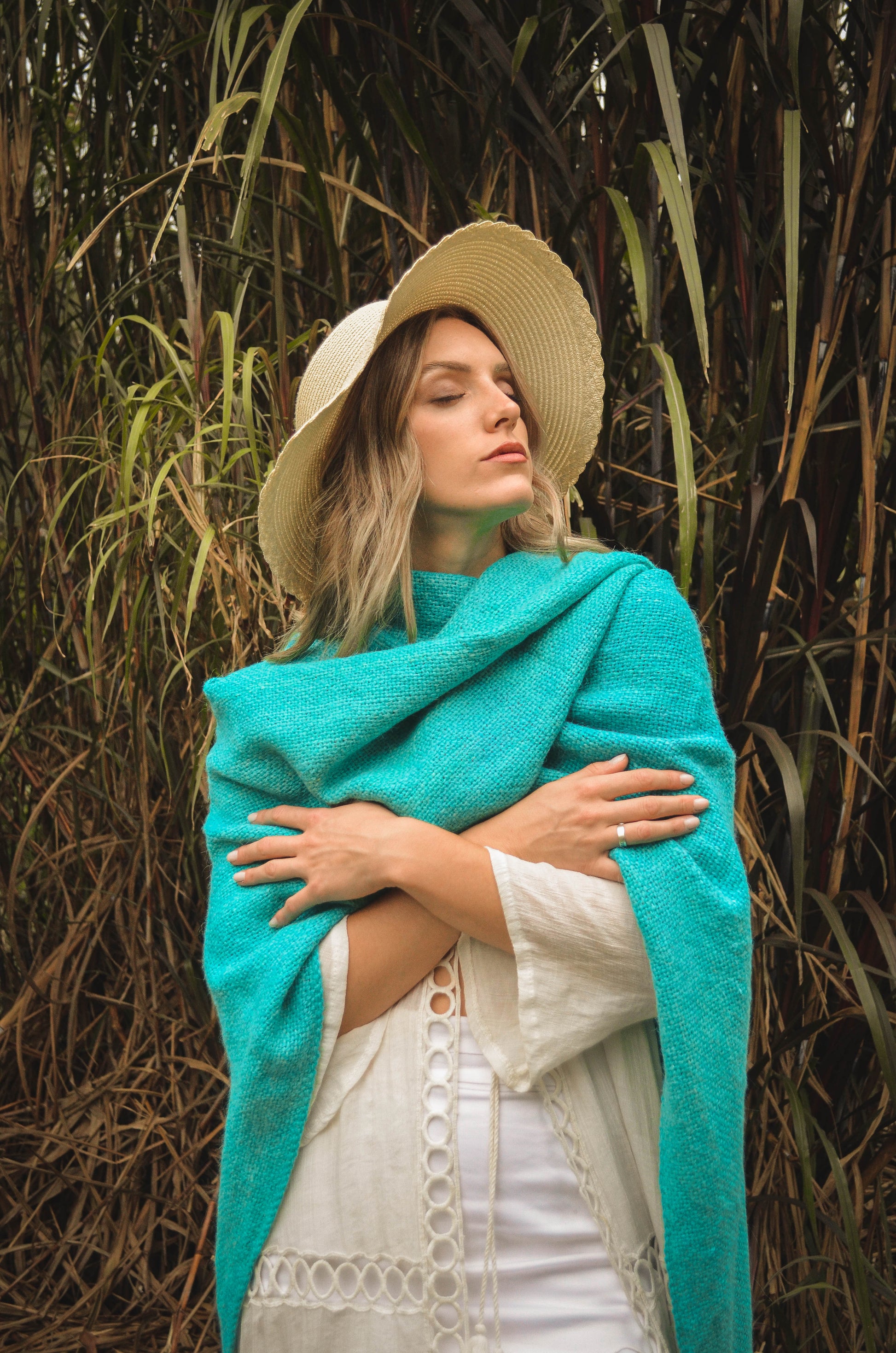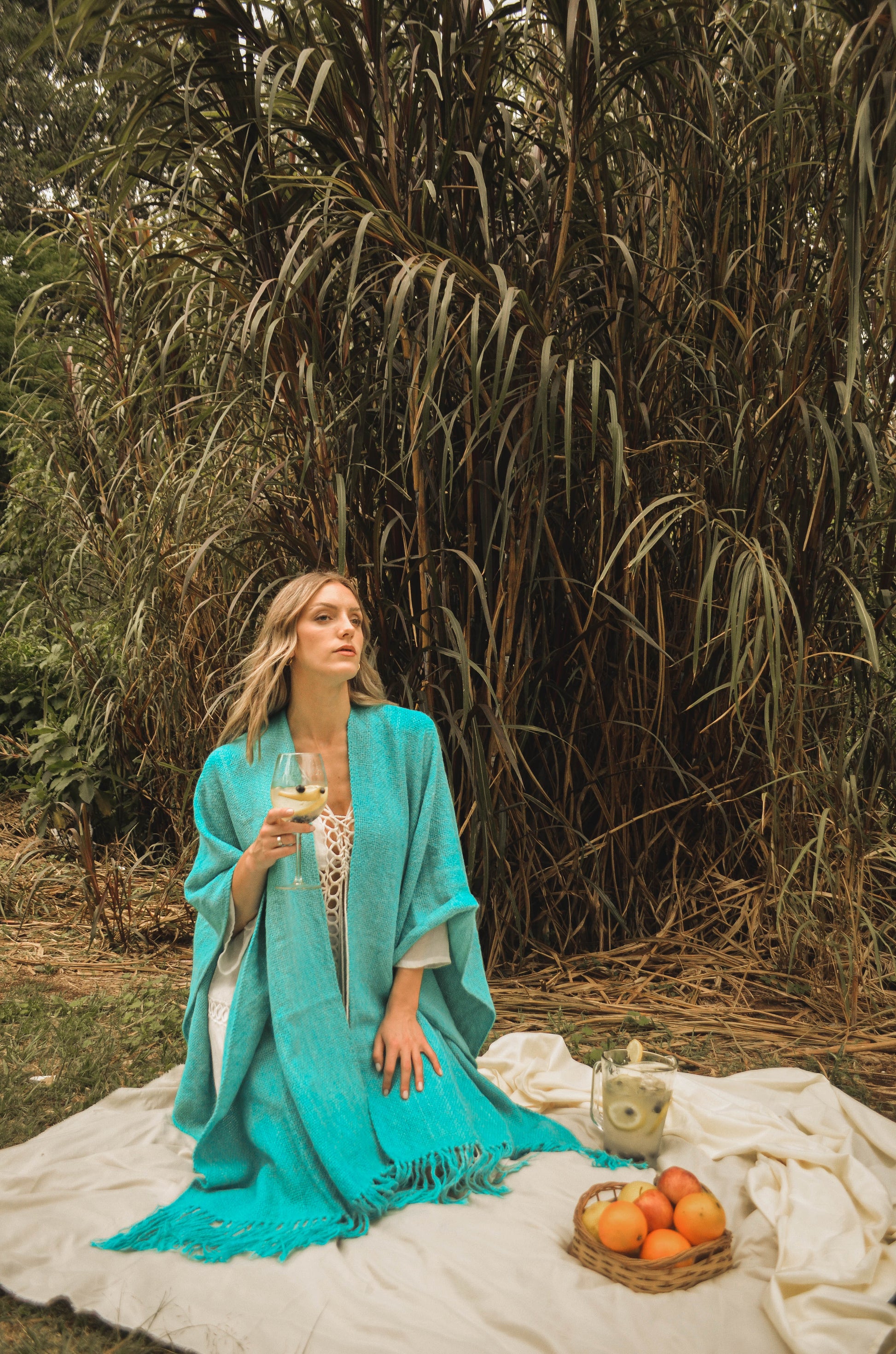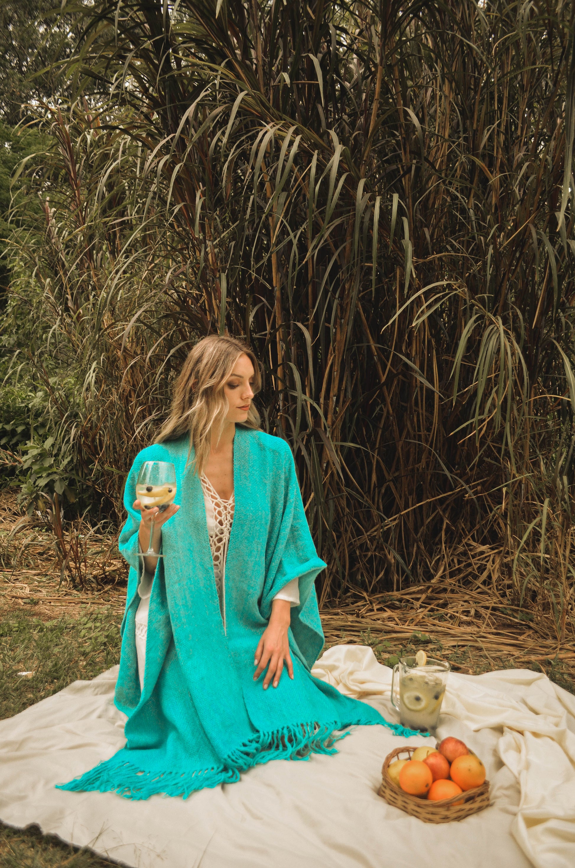 Ruana "Aymara" está hecha a mano en telar rústico con hilos de llama baby.