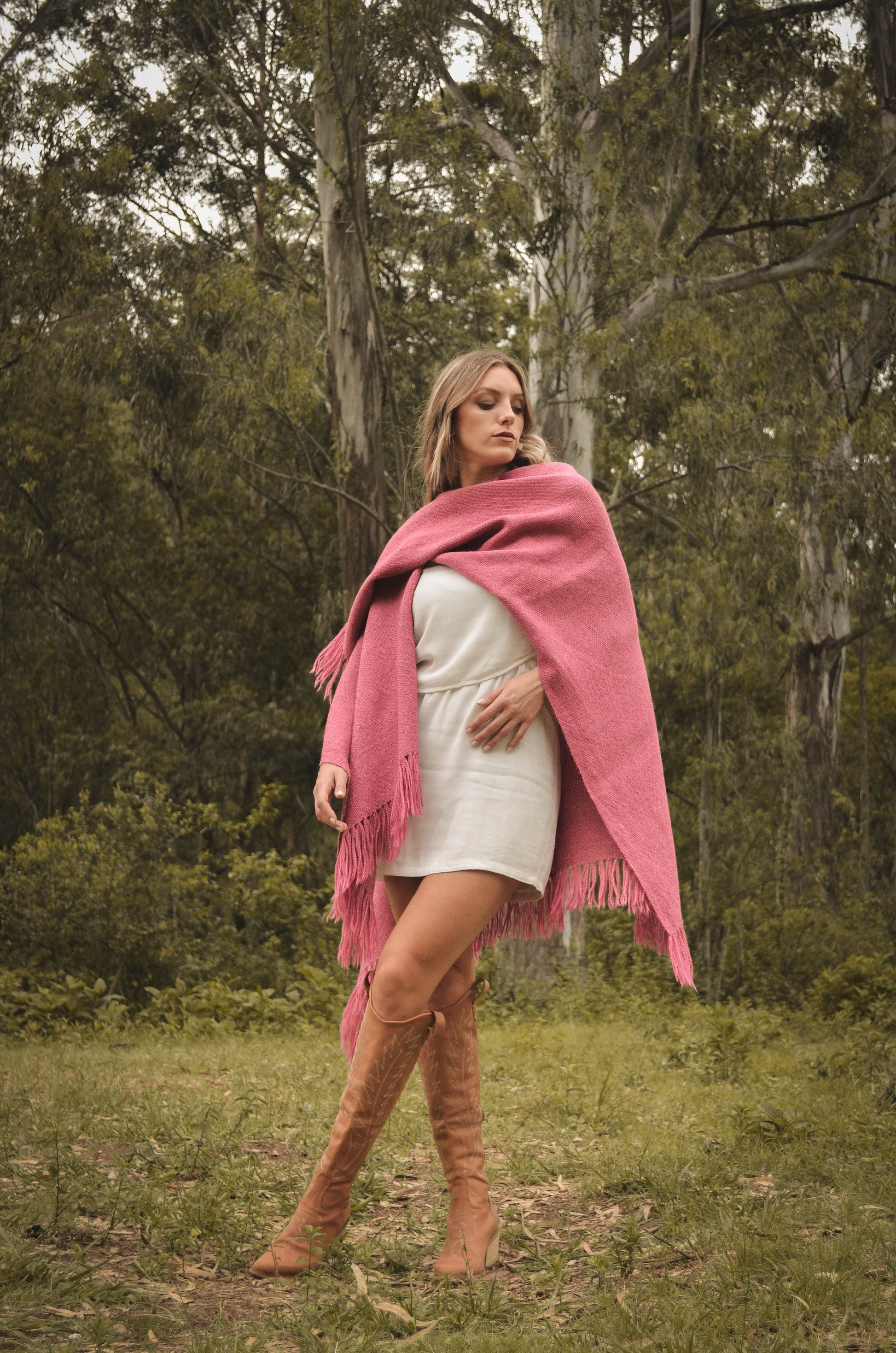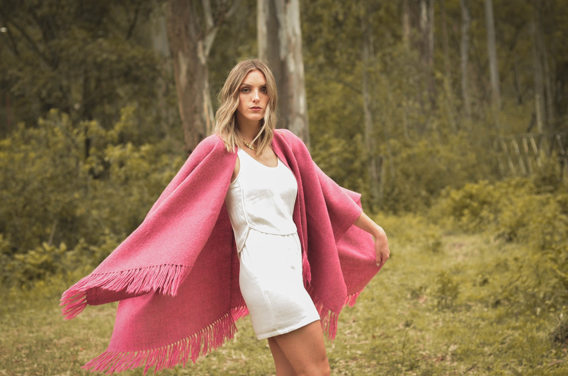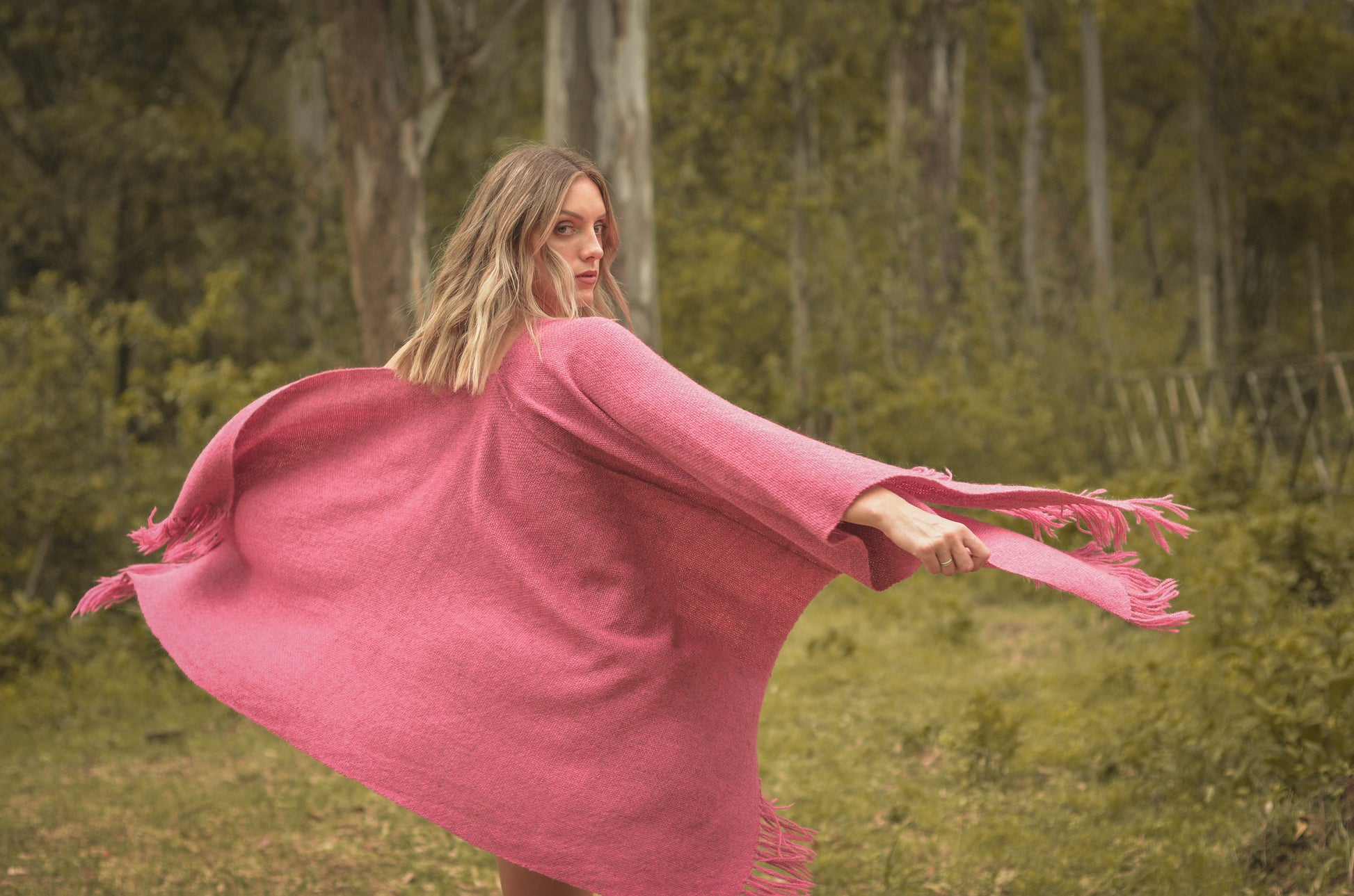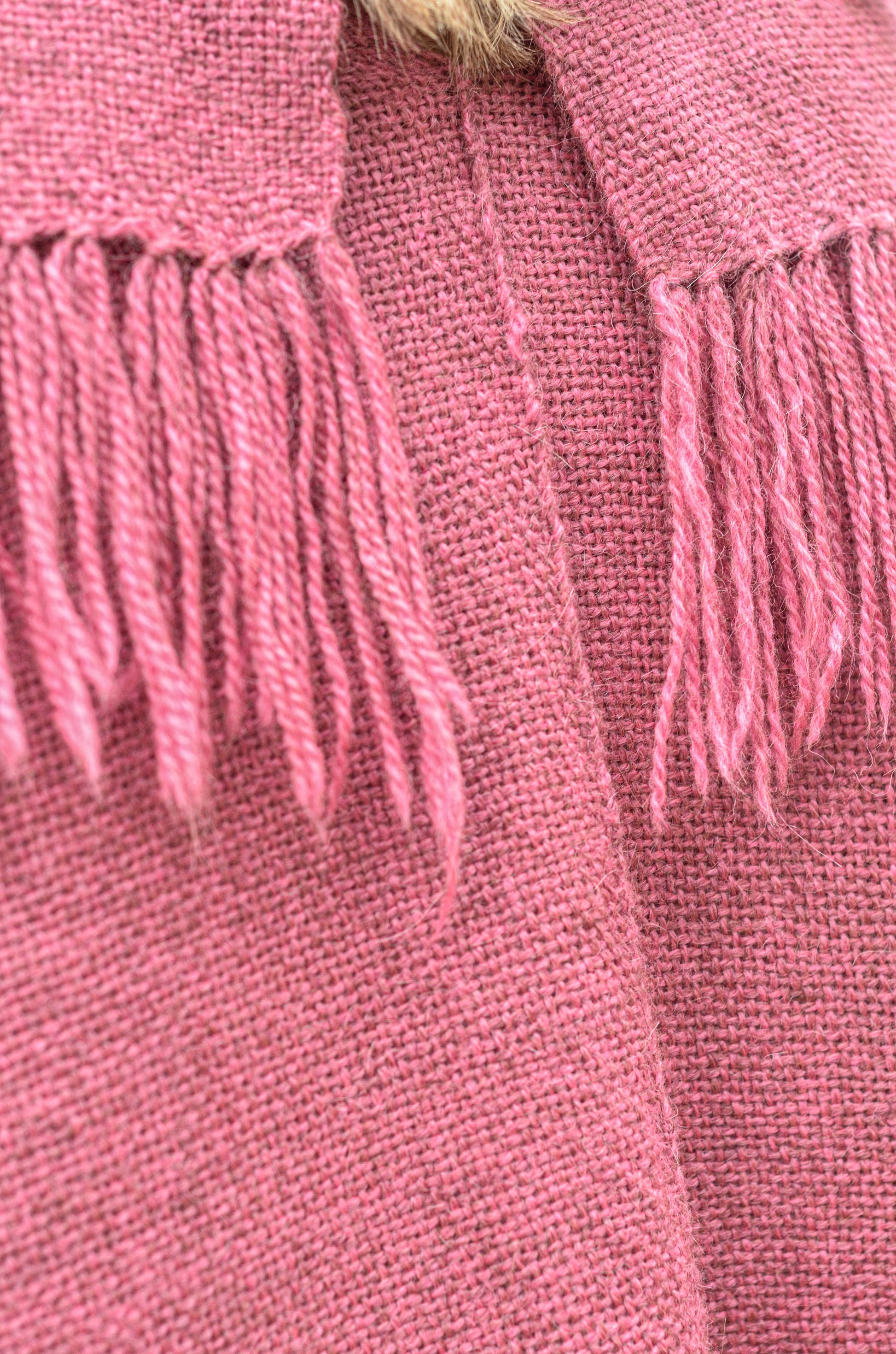 Ruana "Malbec" está hecha a mano en telar rústico con hilos de llama baby.