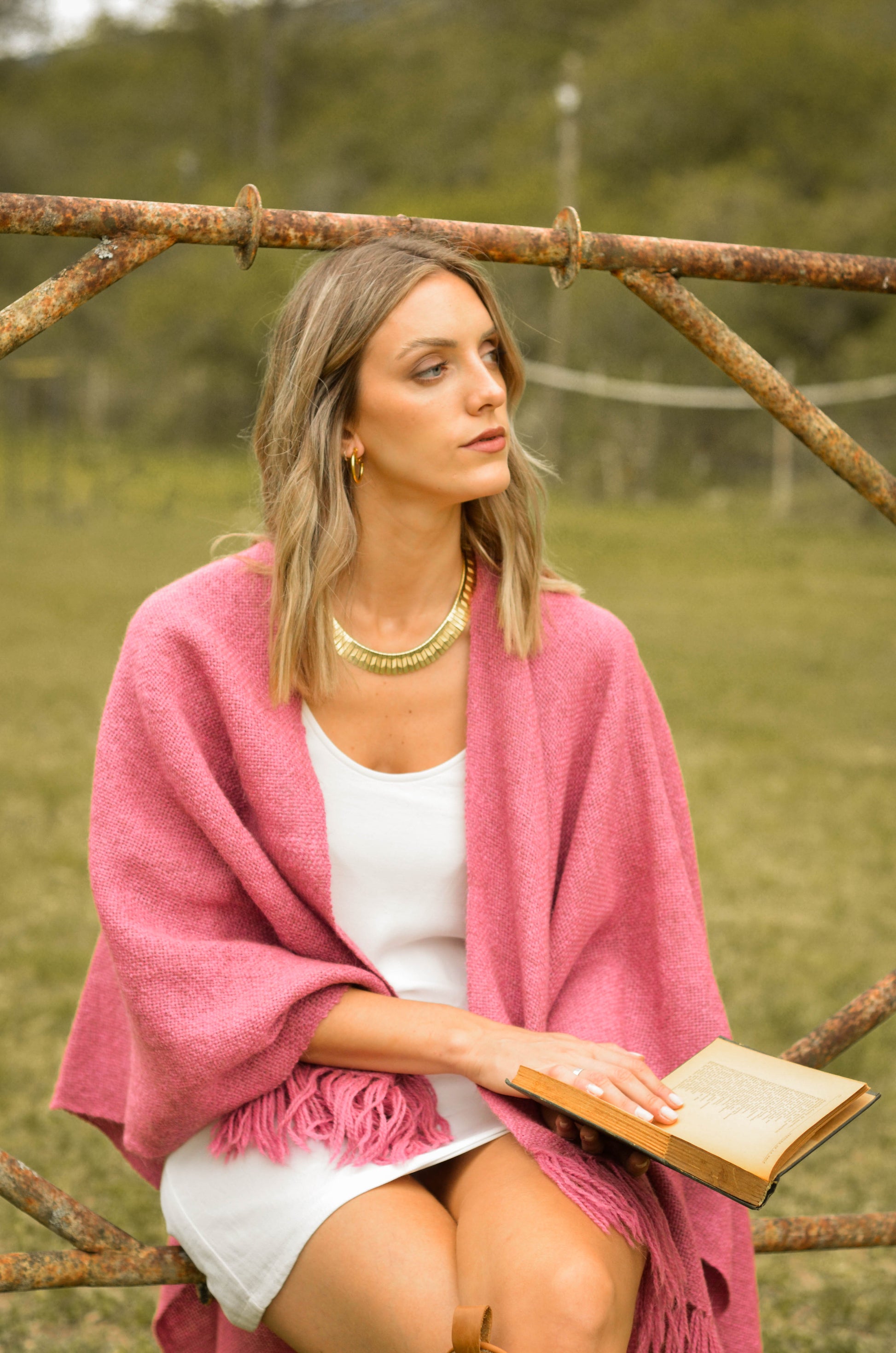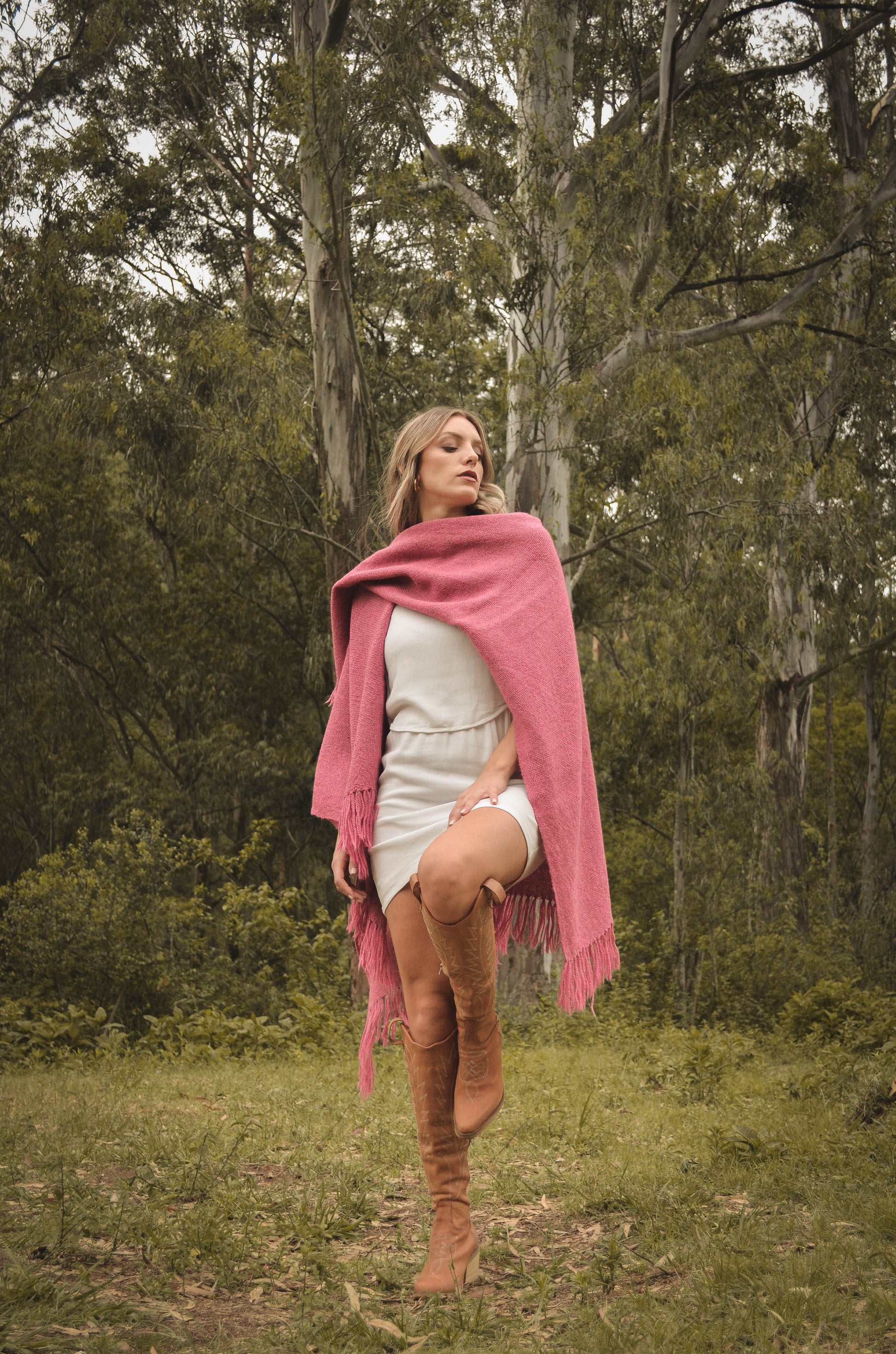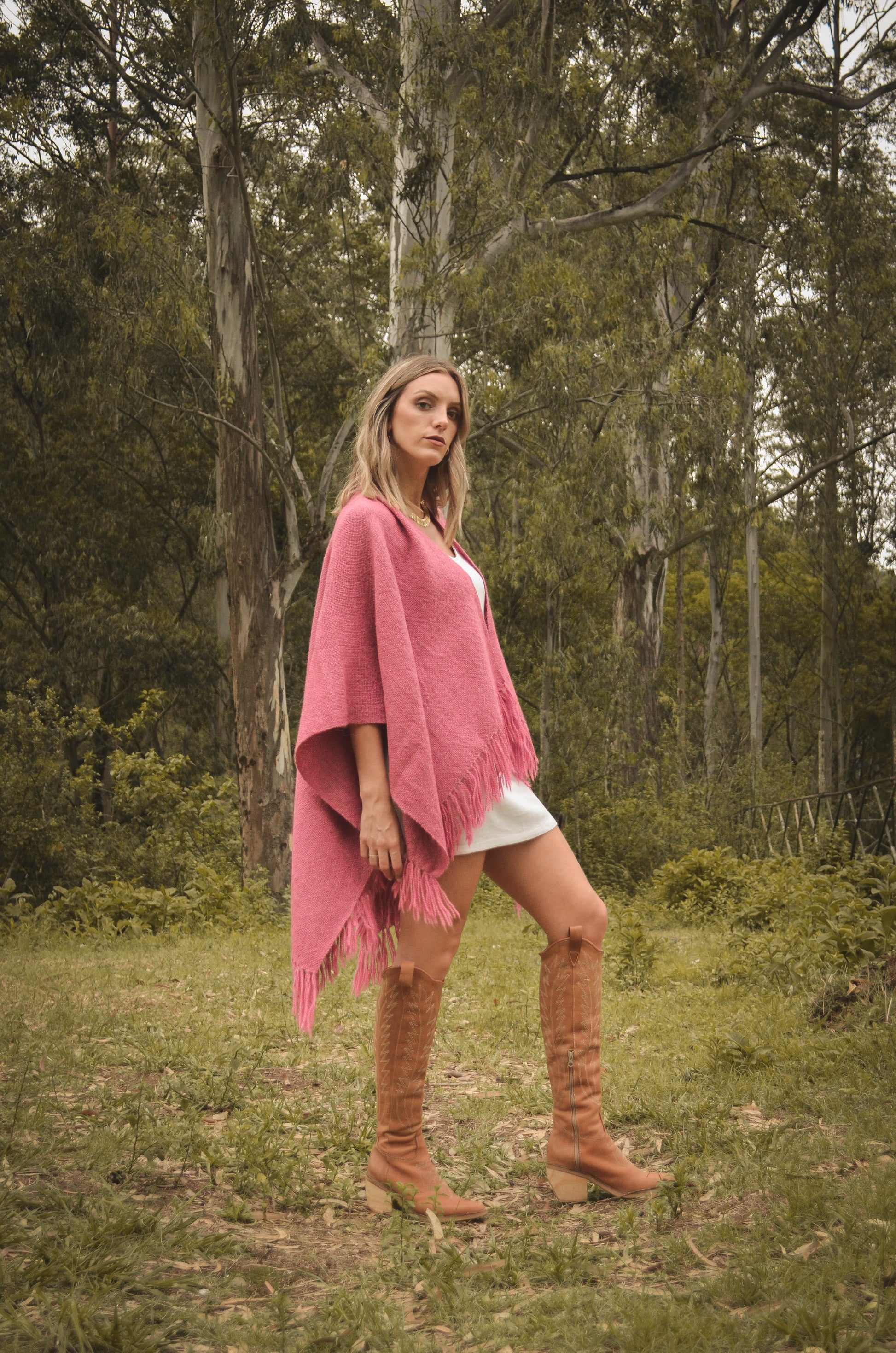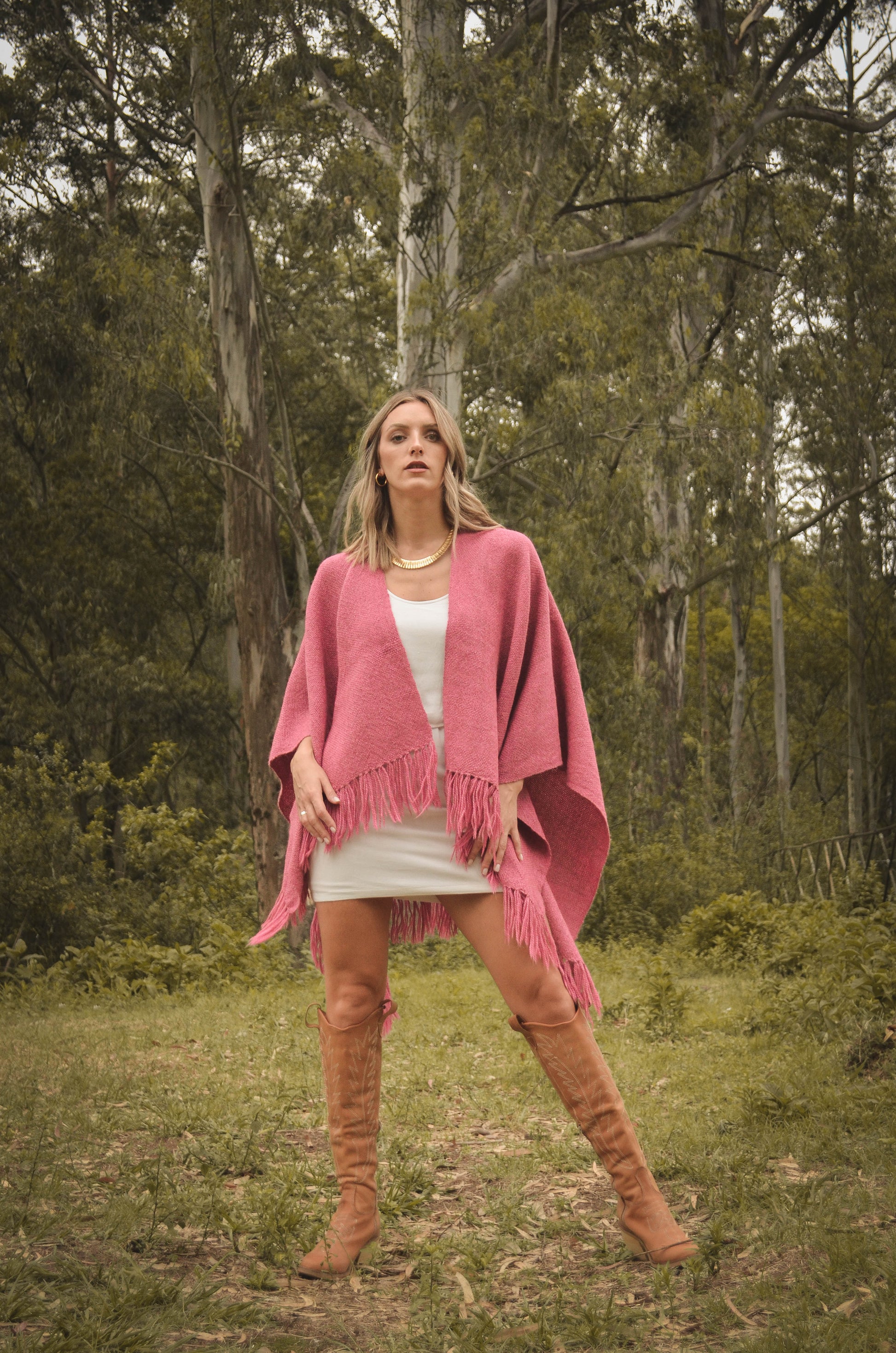 Ruana "Malbec" está hecha a mano en telar rústico con hilos de llama baby.