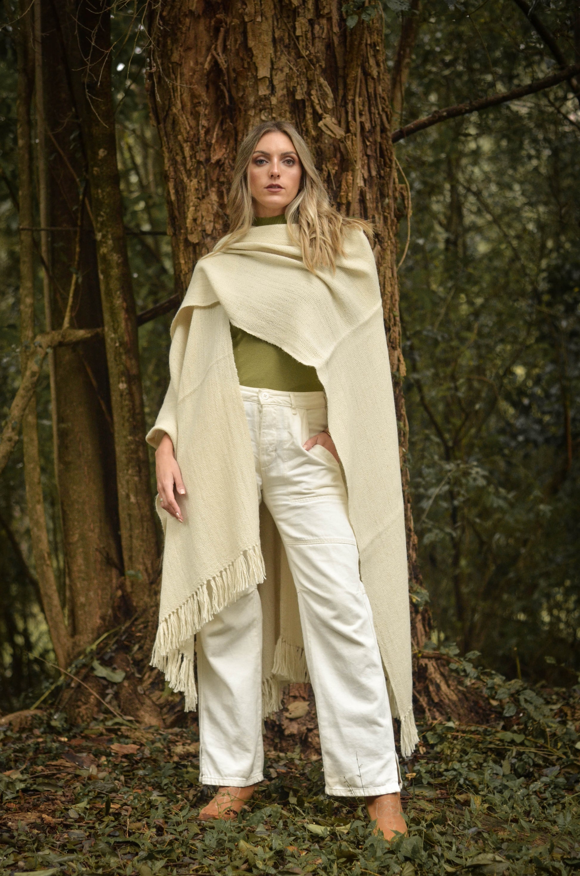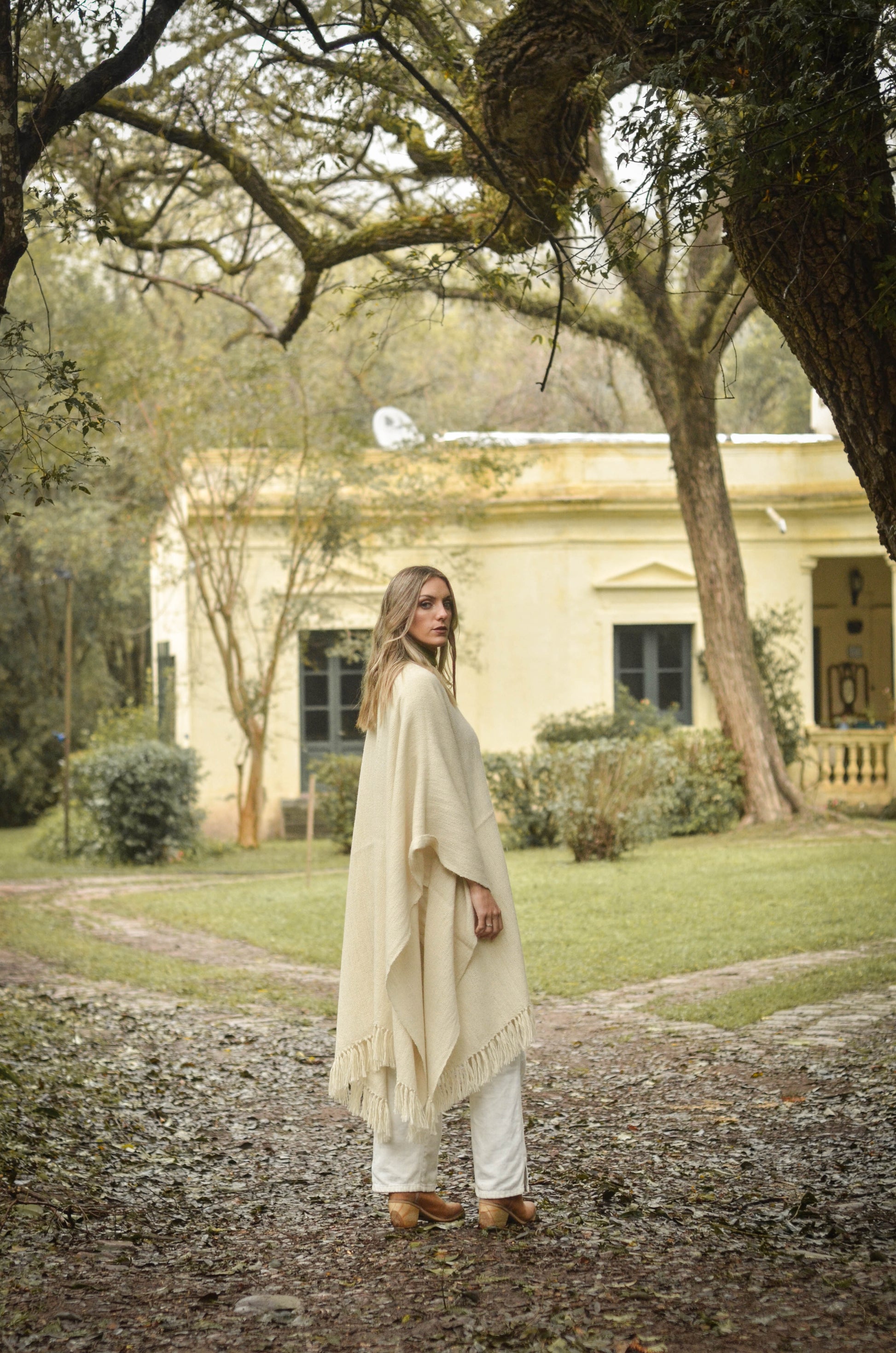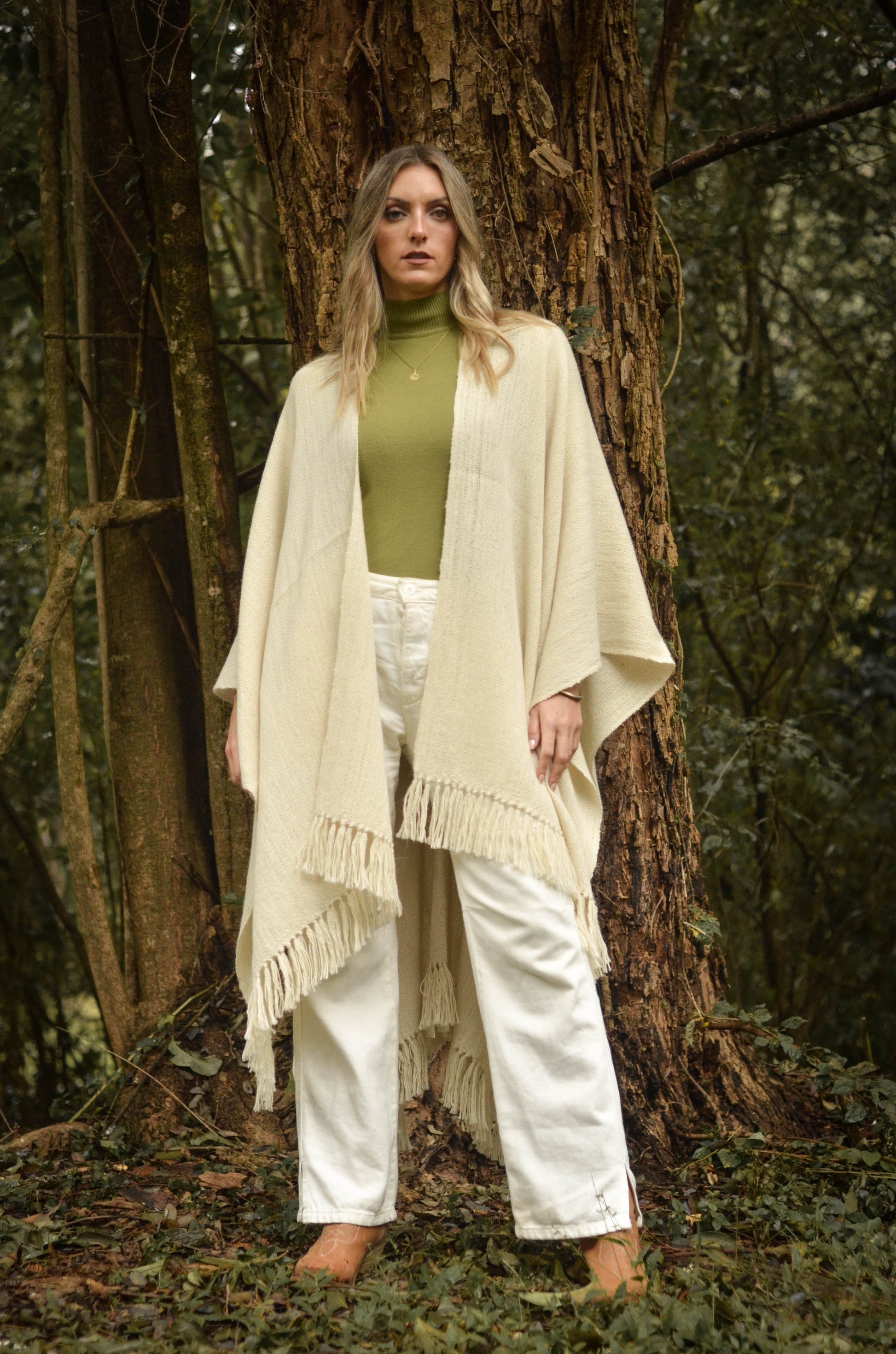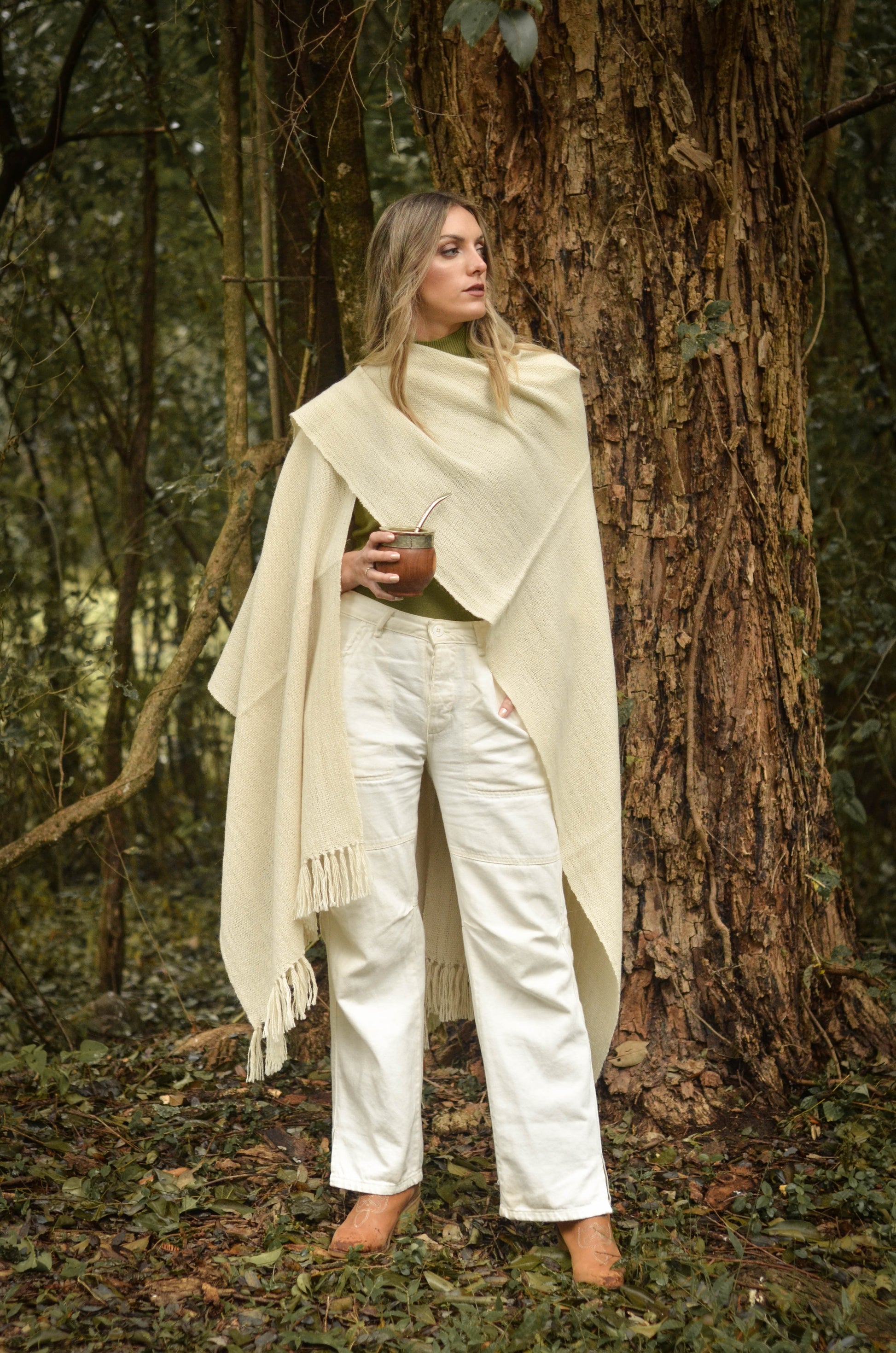 Ruana "Martina Araoz" es parte de la Colección "Runa" está hecha a mano en telar rústico con hilos de llama baby.