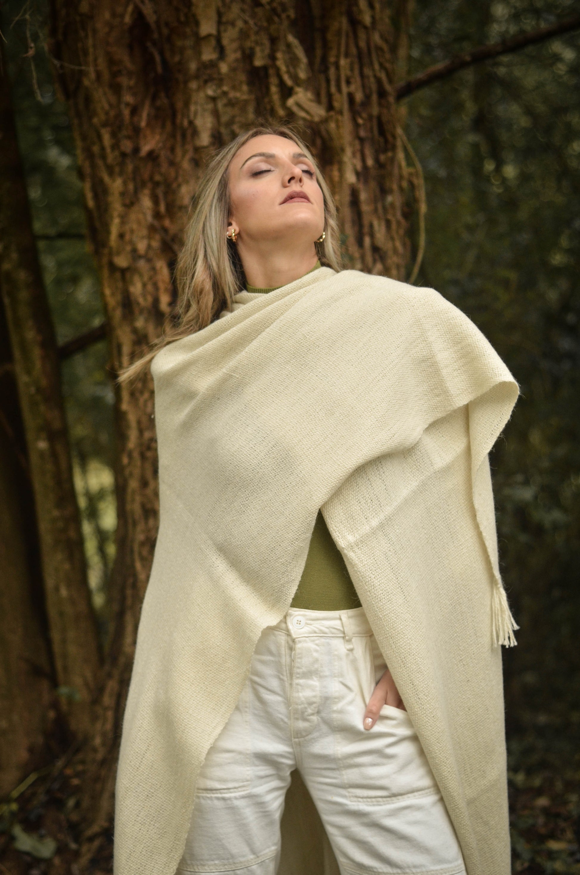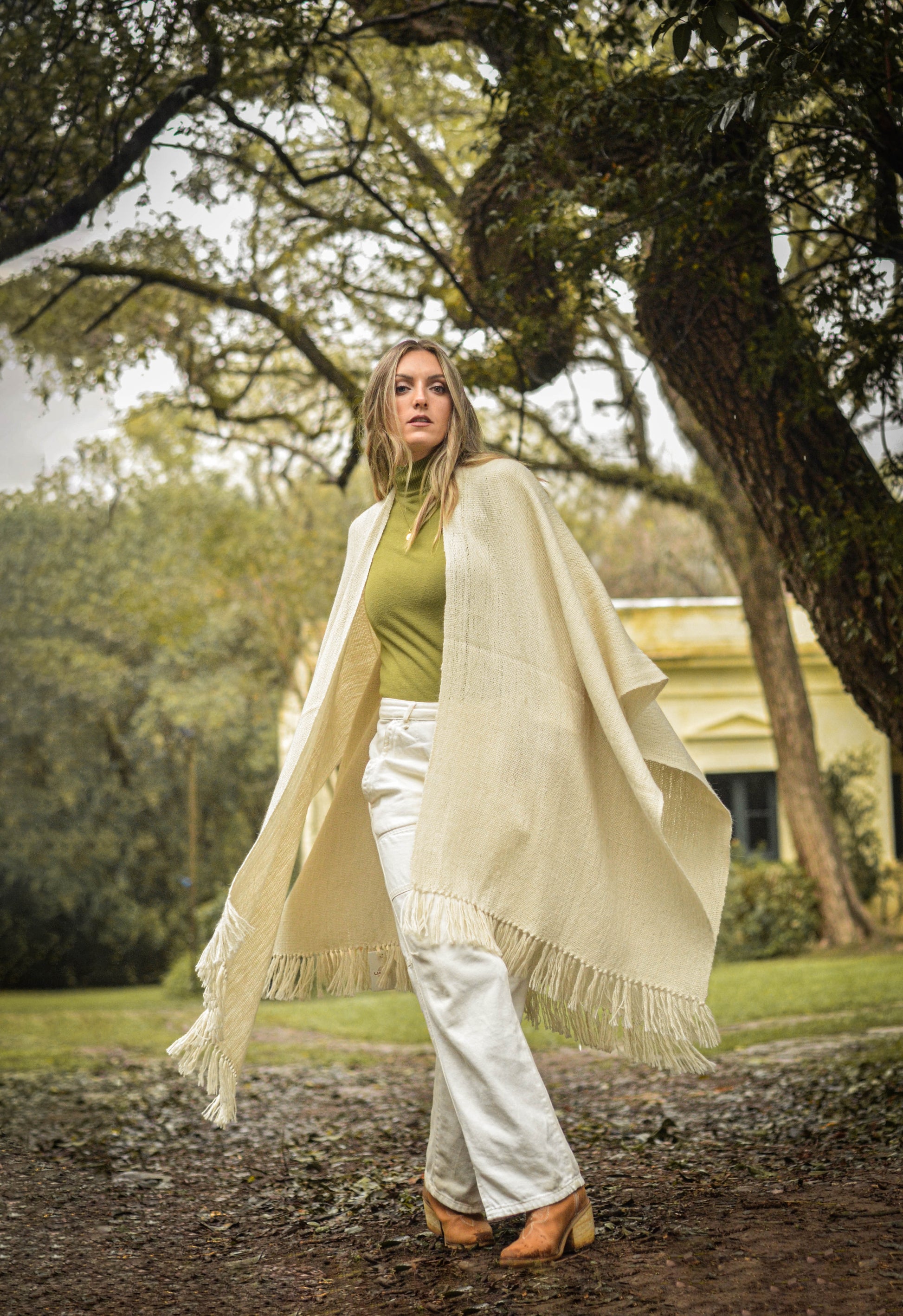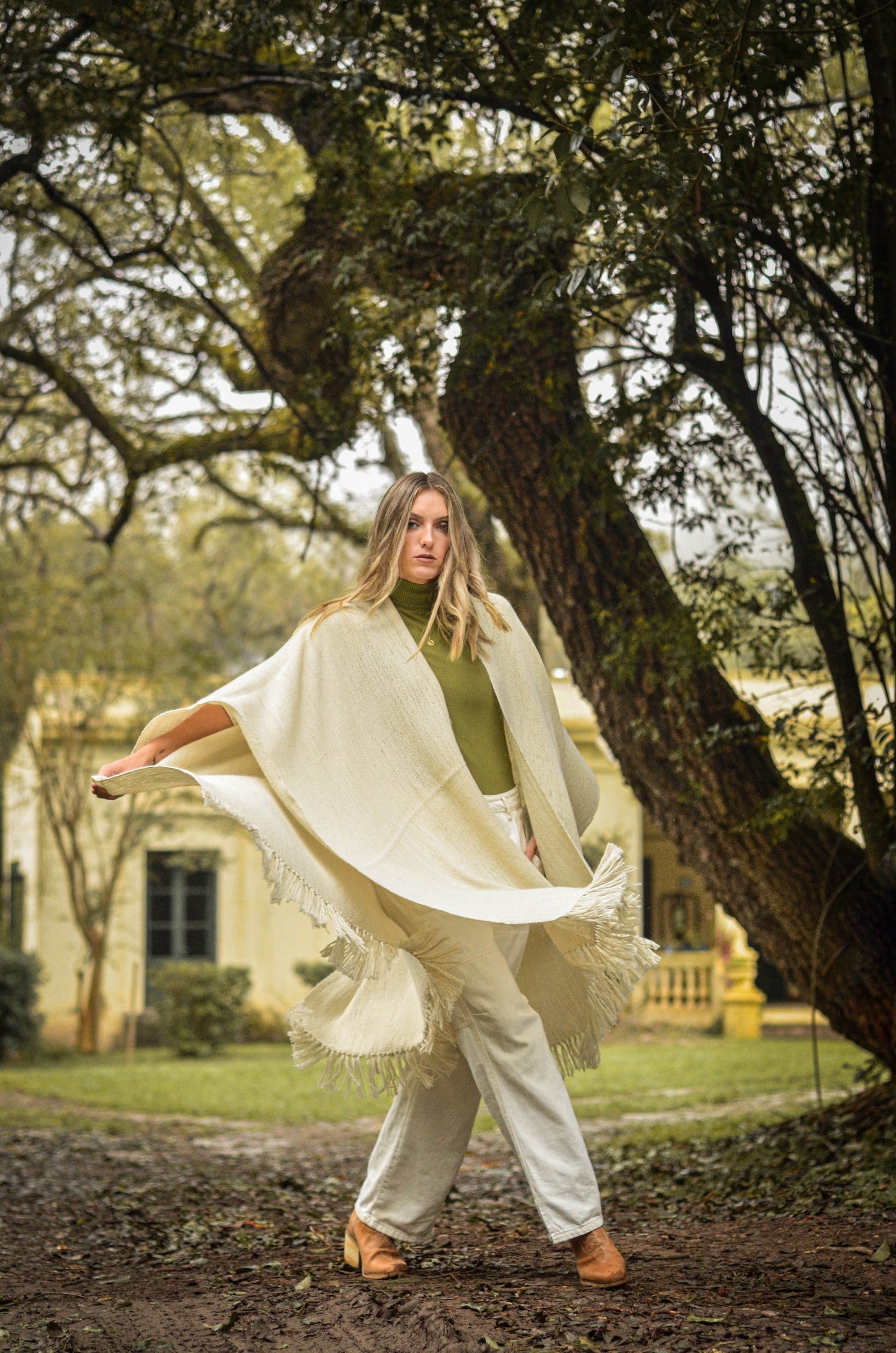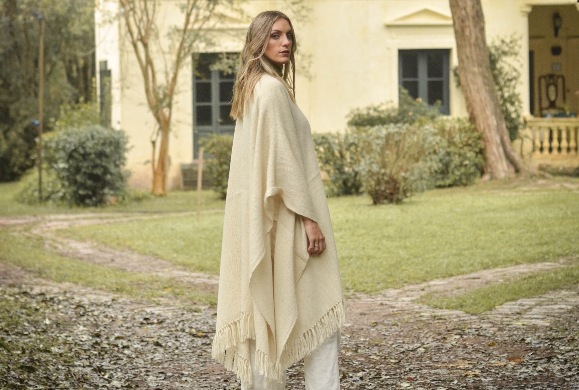 Ruana "Martina Araoz" es parte de la Colección "Runa" está hecha a mano en telar rústico con hilos de llama baby.