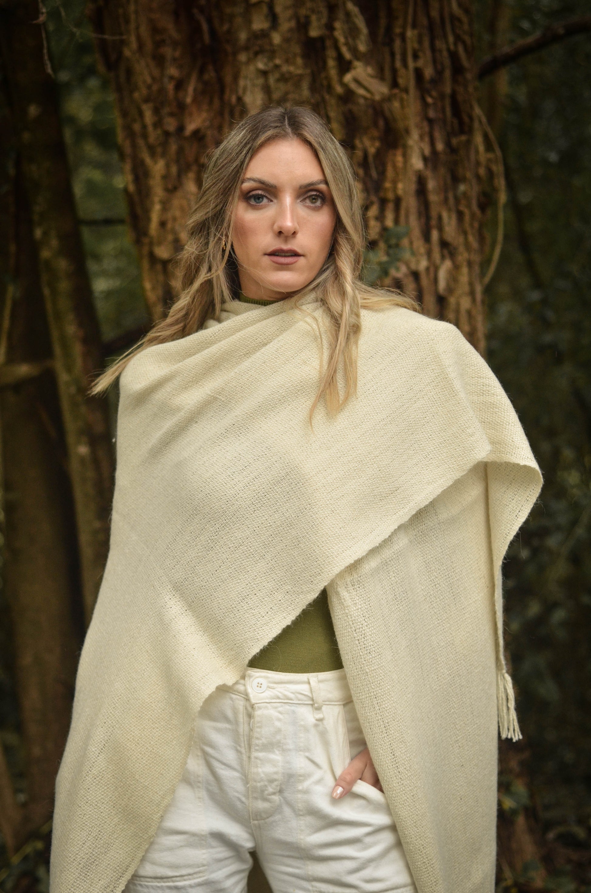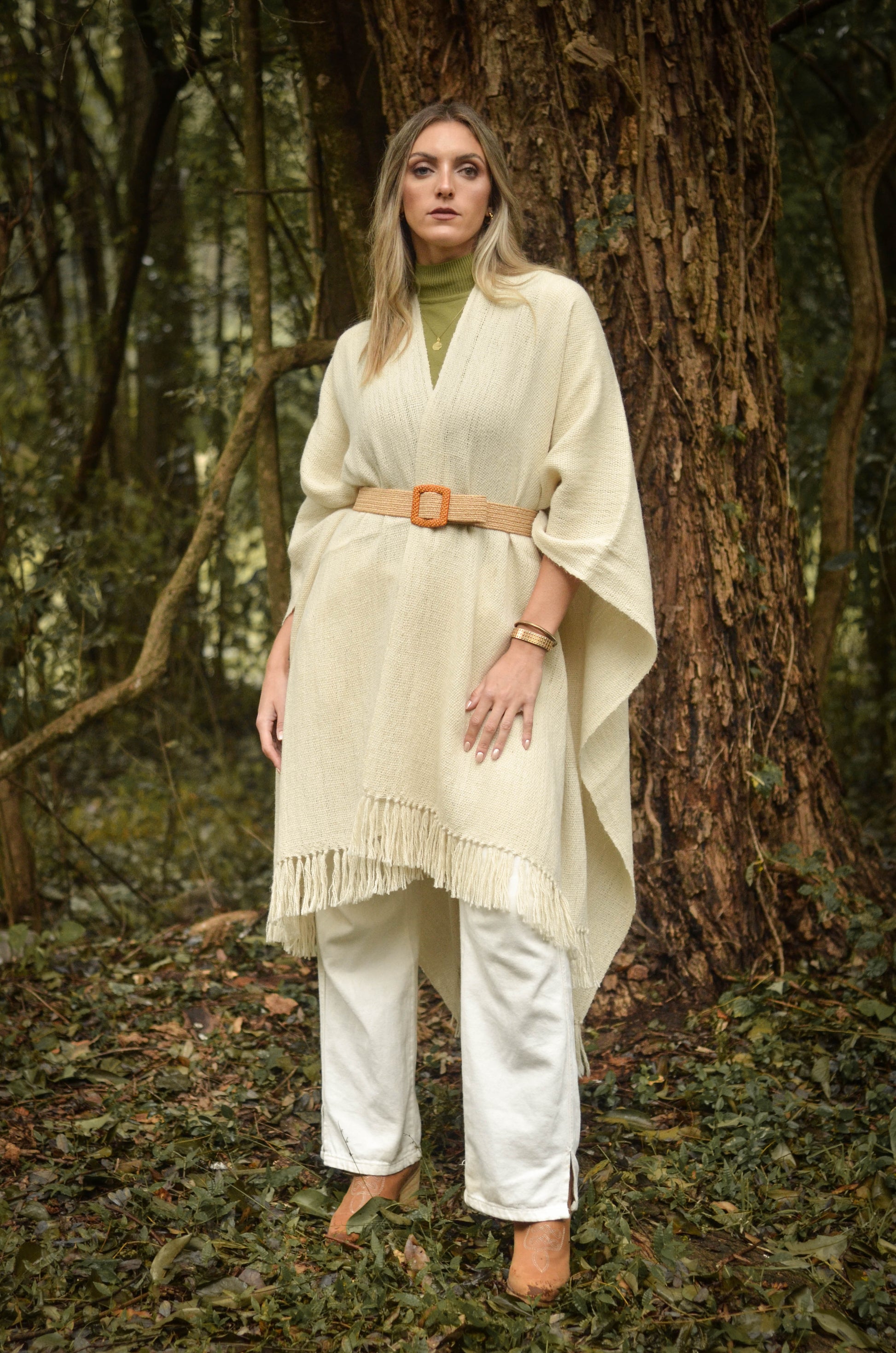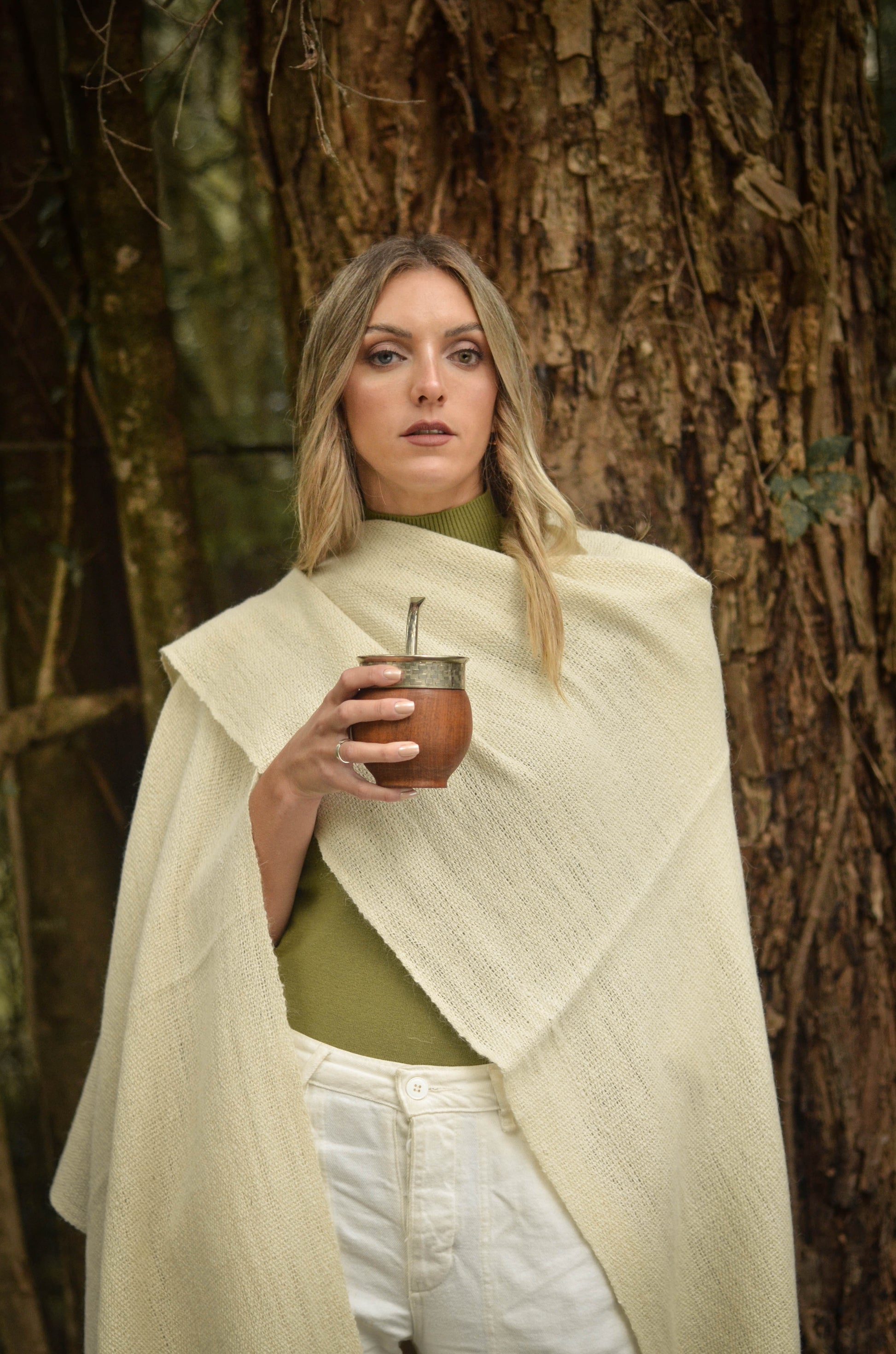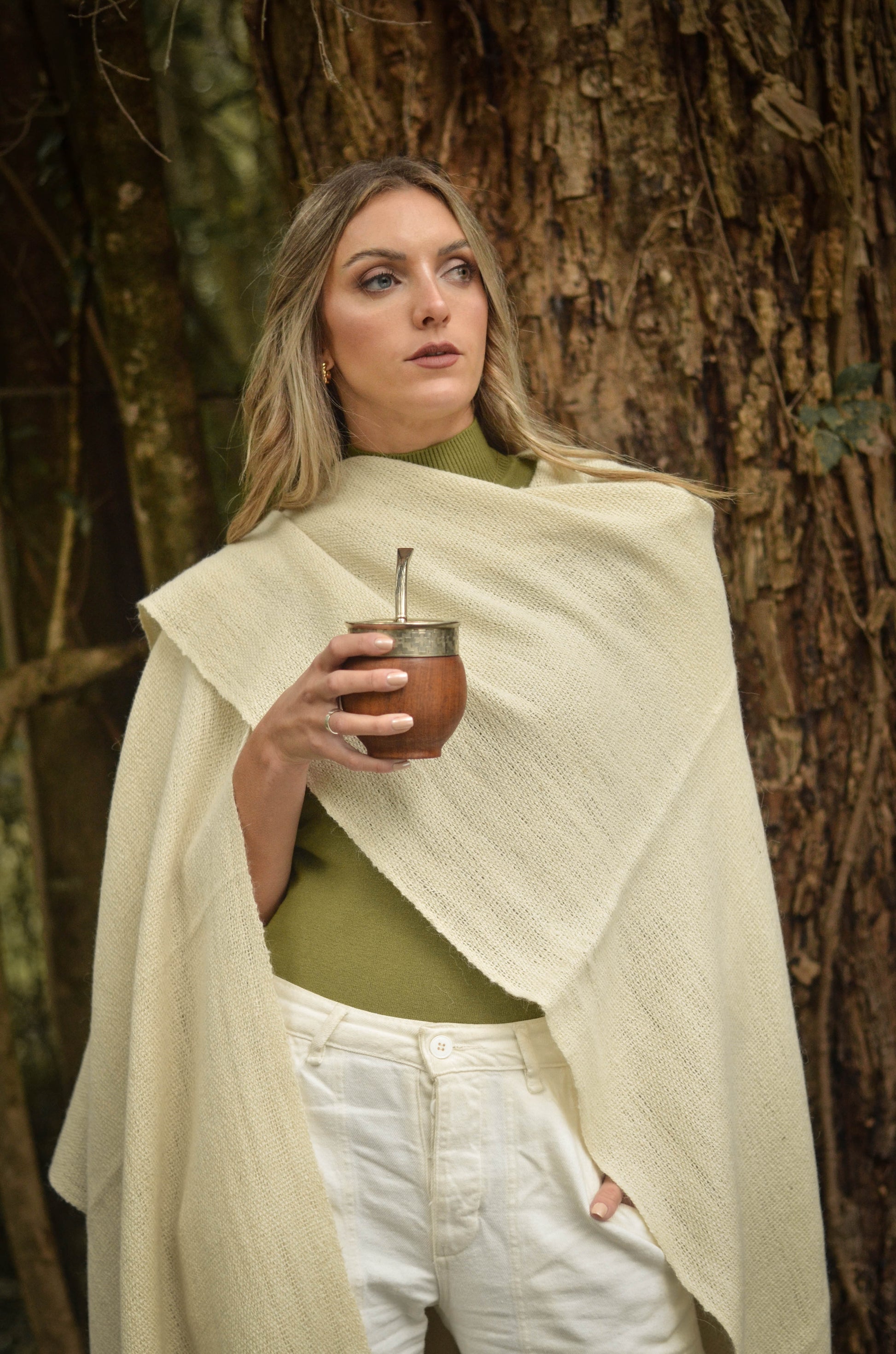 Ruana "Martina Araoz" es parte de la Colección "Runa" está hecha a mano en telar rústico con hilos de llama baby.