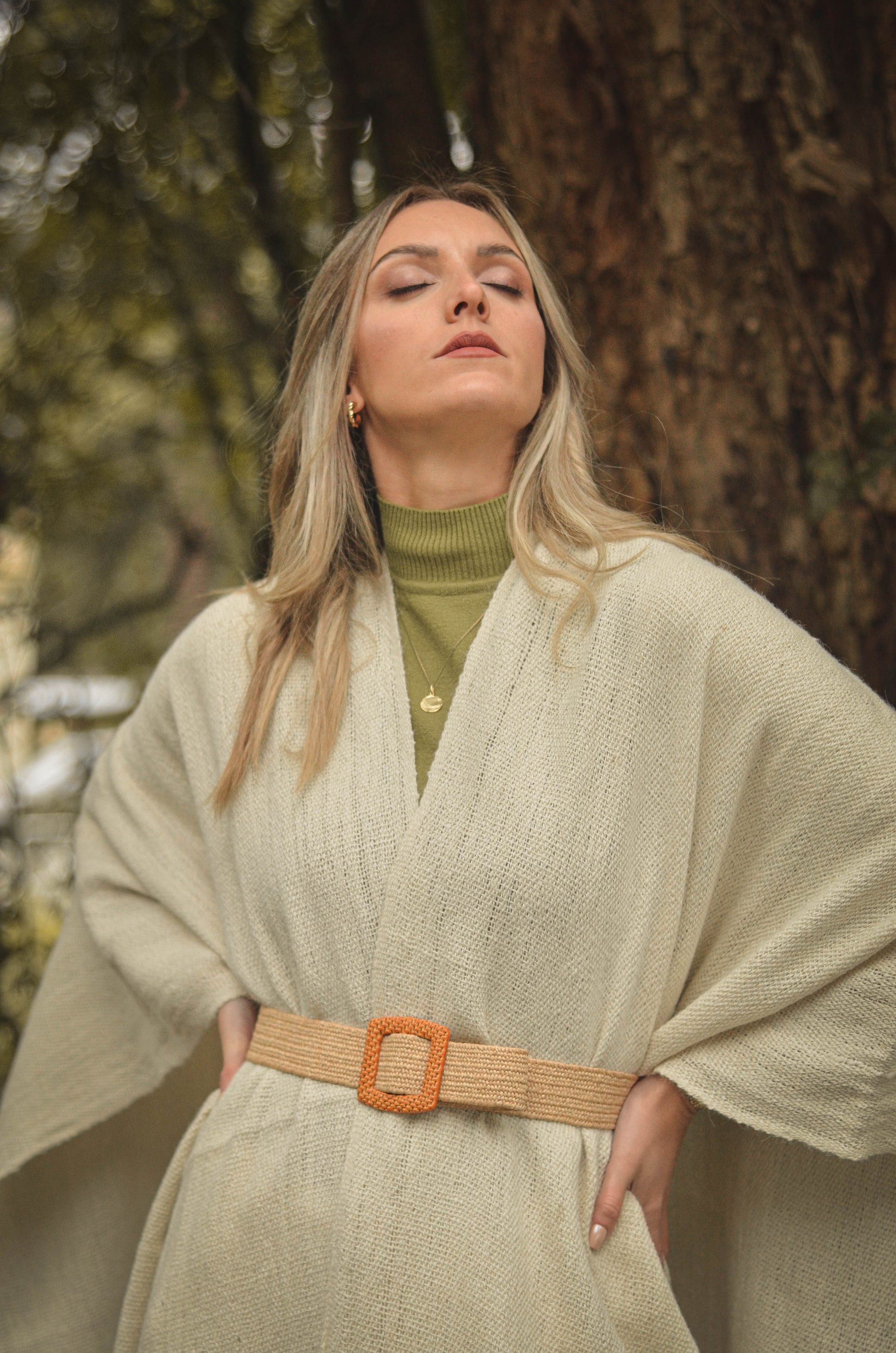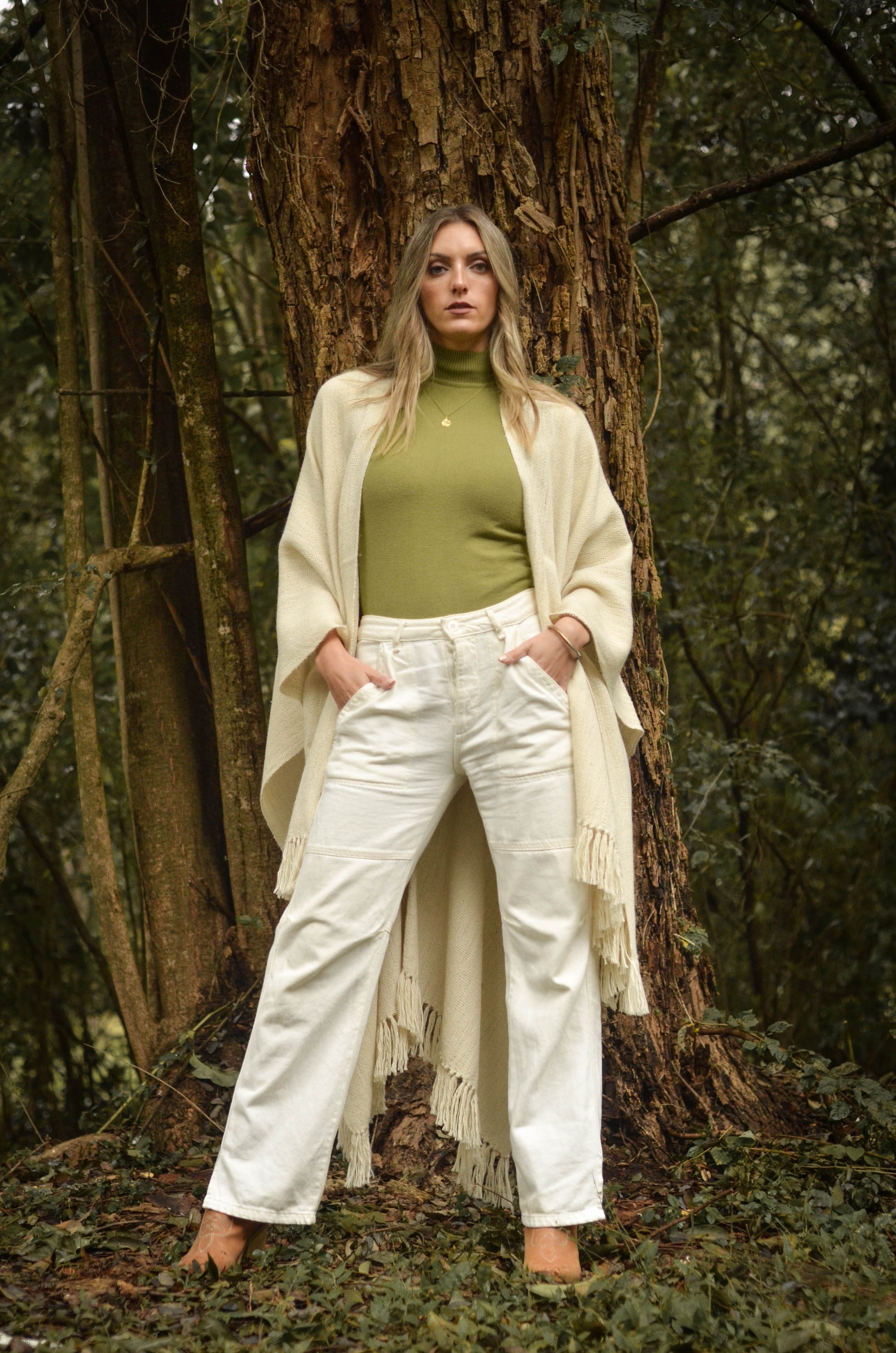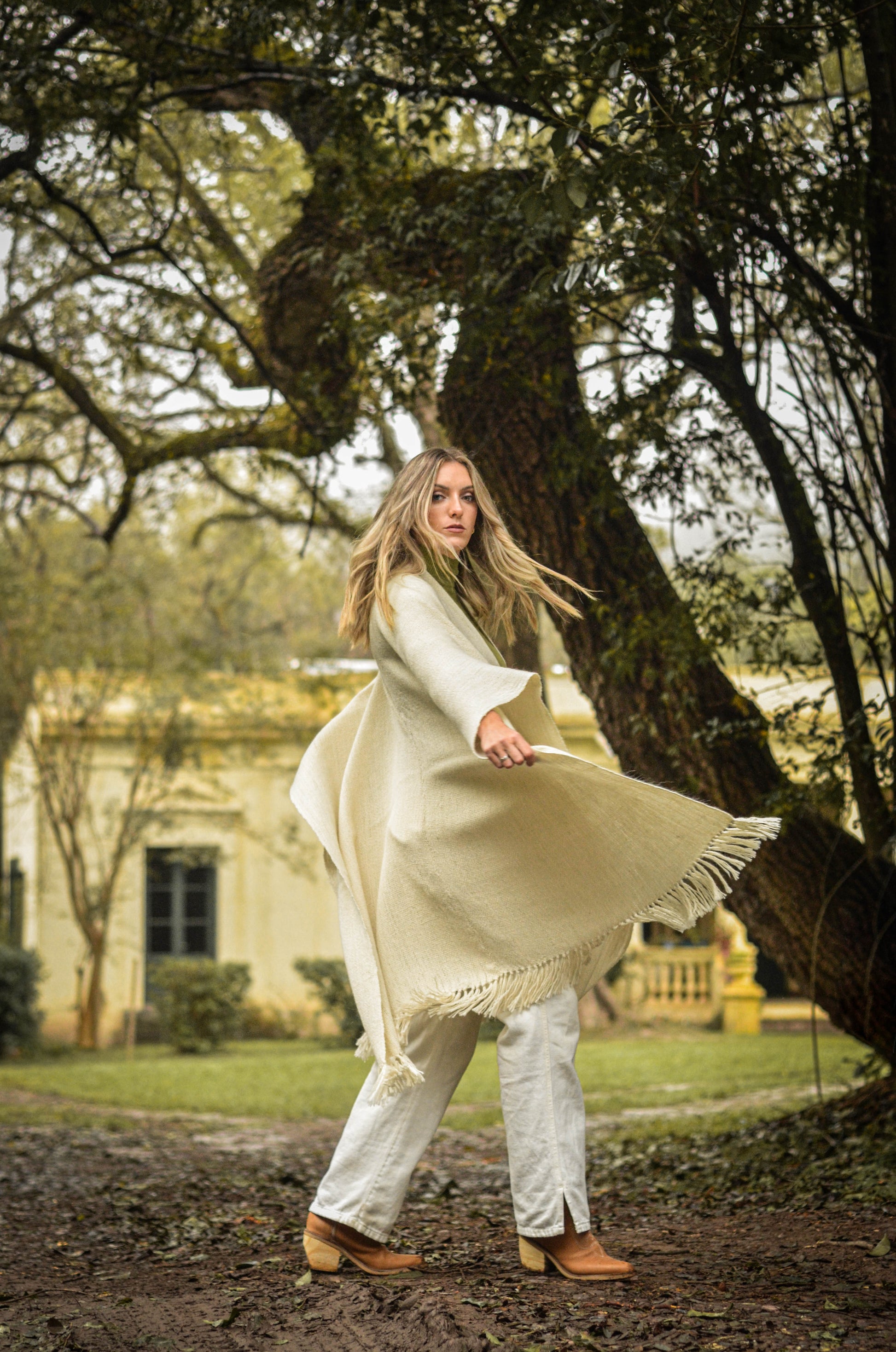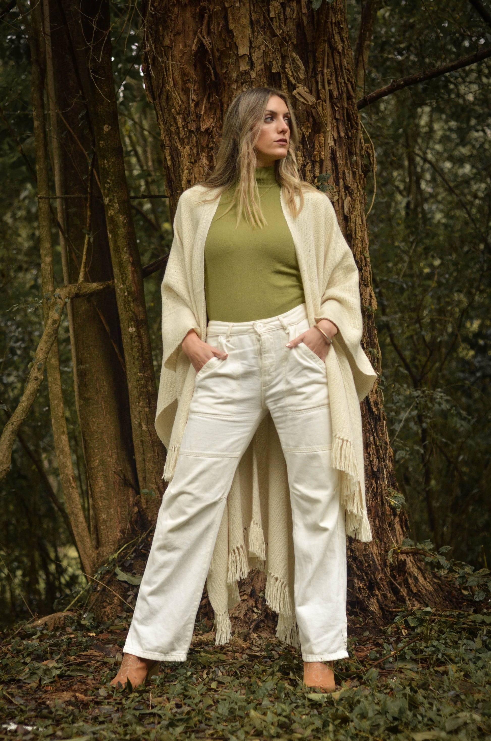 Ruana "Martina Araoz" es parte de la Colección "Runa" está hecha a mano en telar rústico con hilos de llama baby.