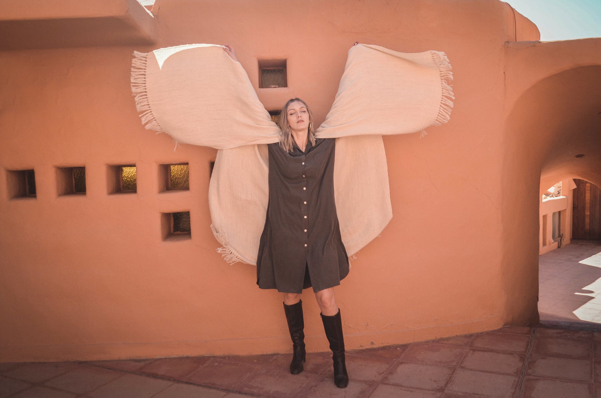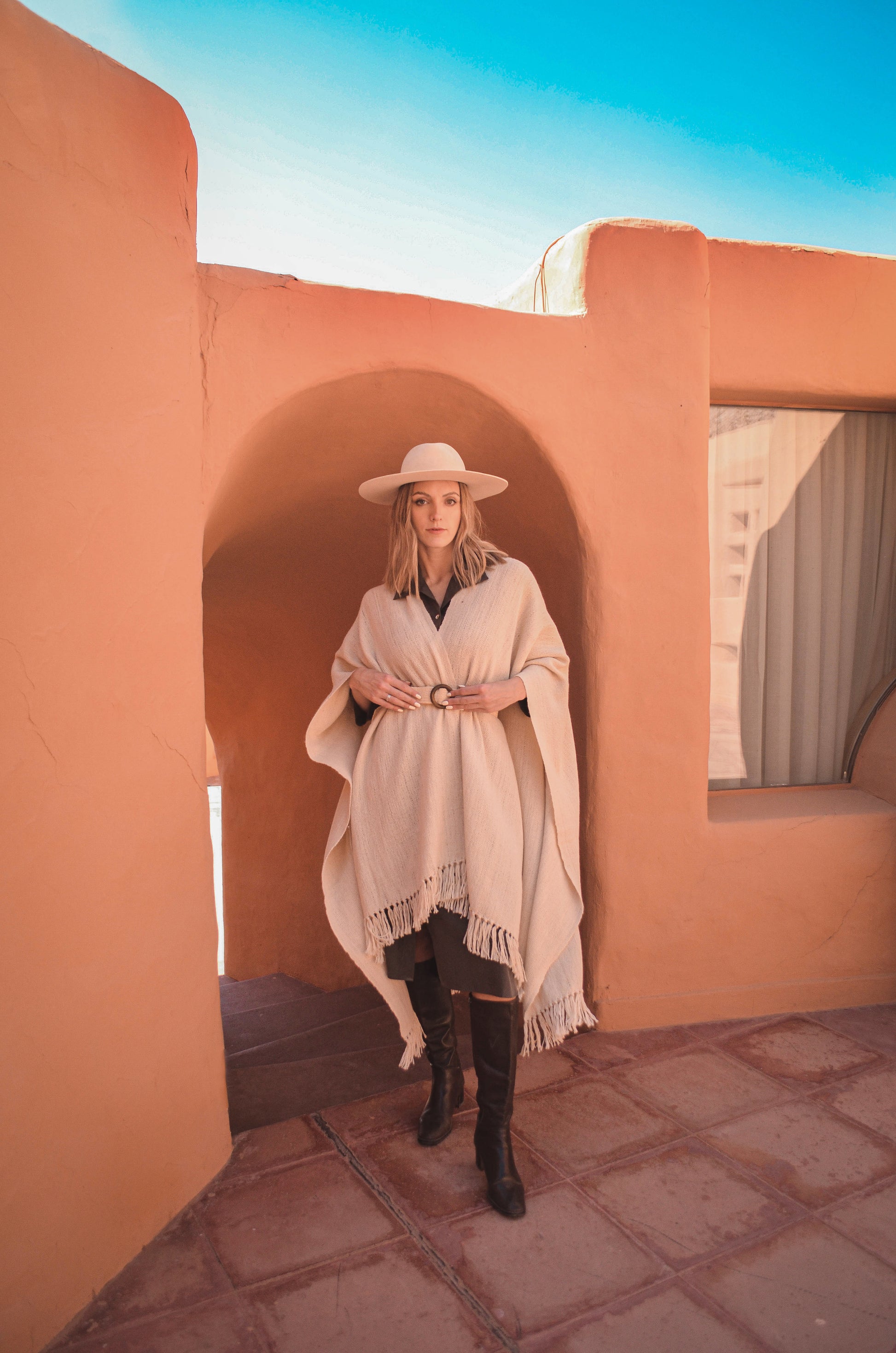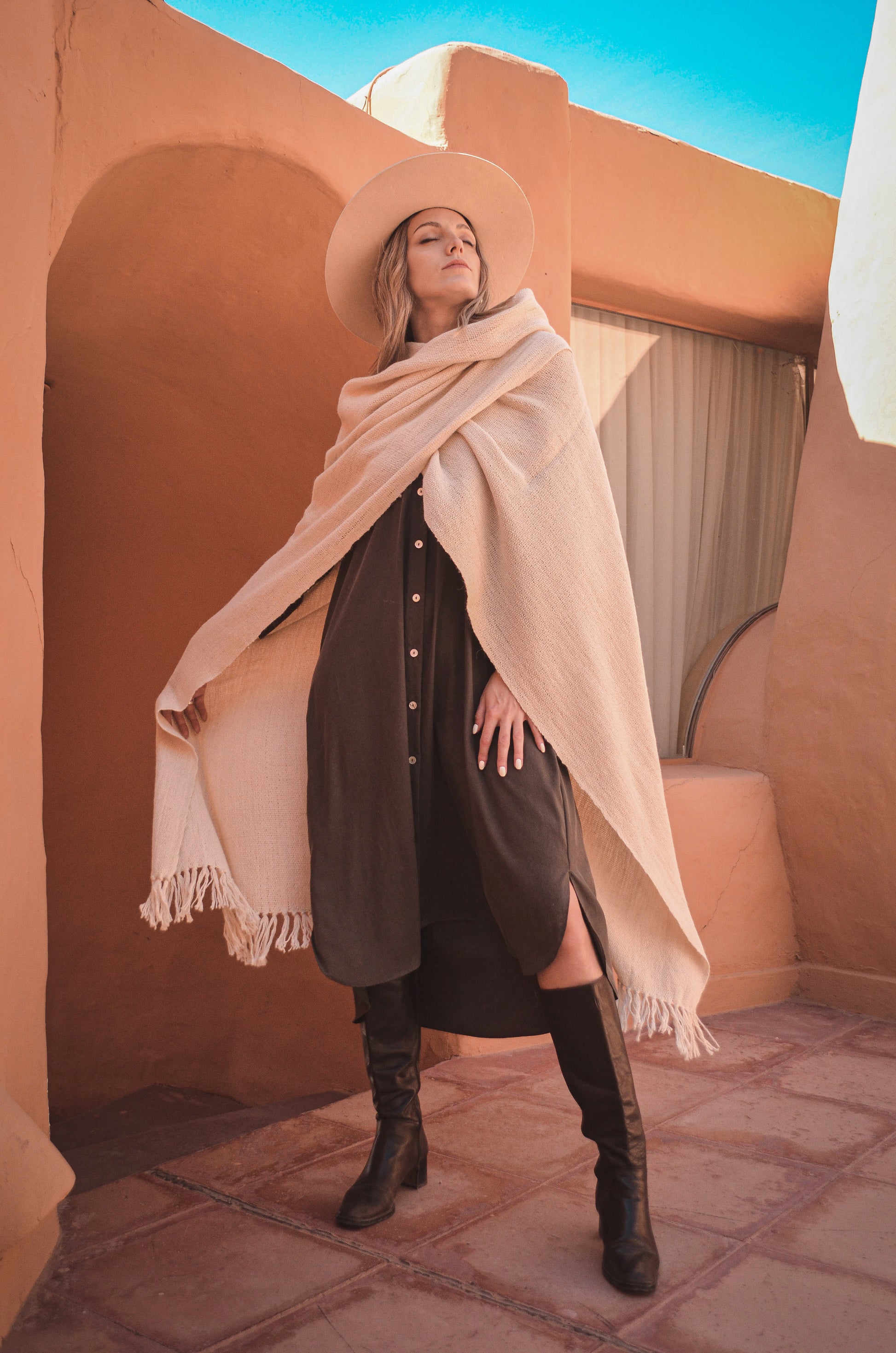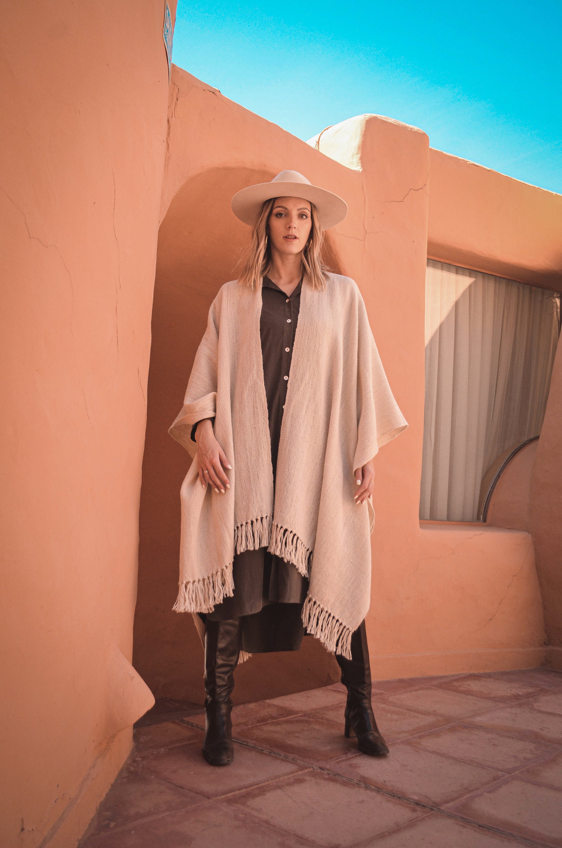 Ruana "Santa Ana" es parte de la Colección "Runa" está hecha a mano en telar rústico con hilos de llama baby.