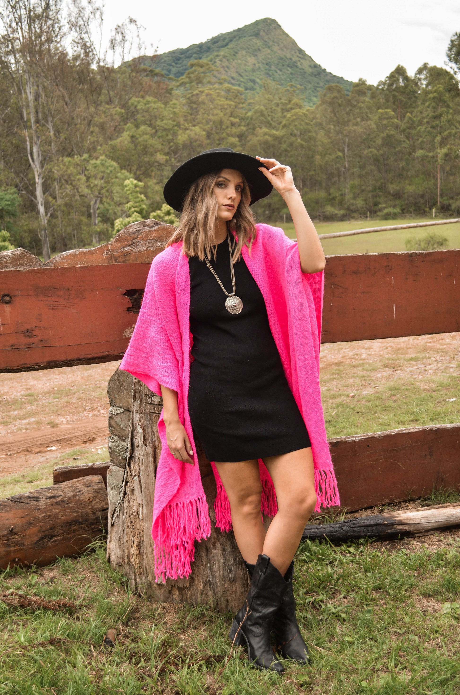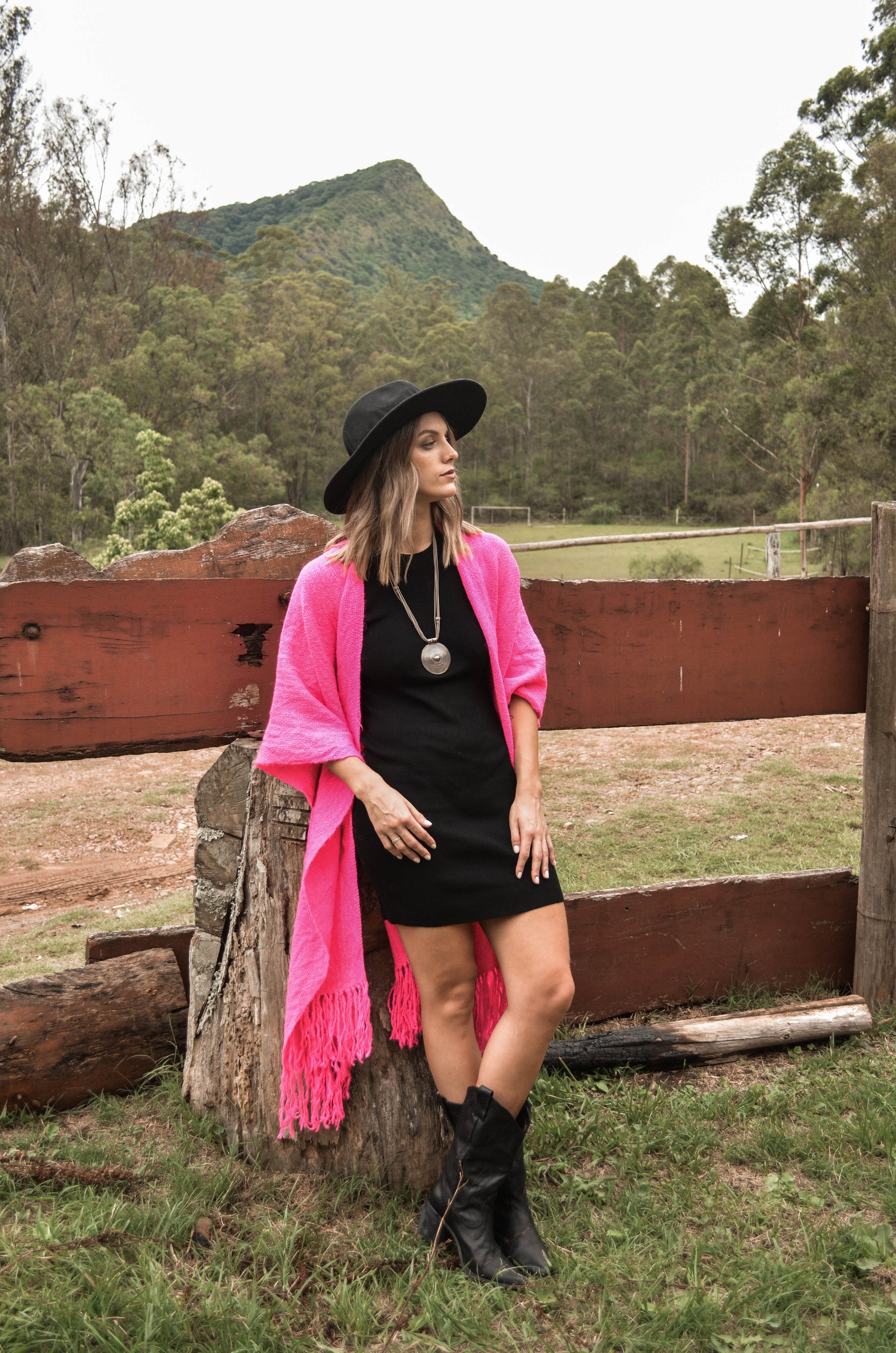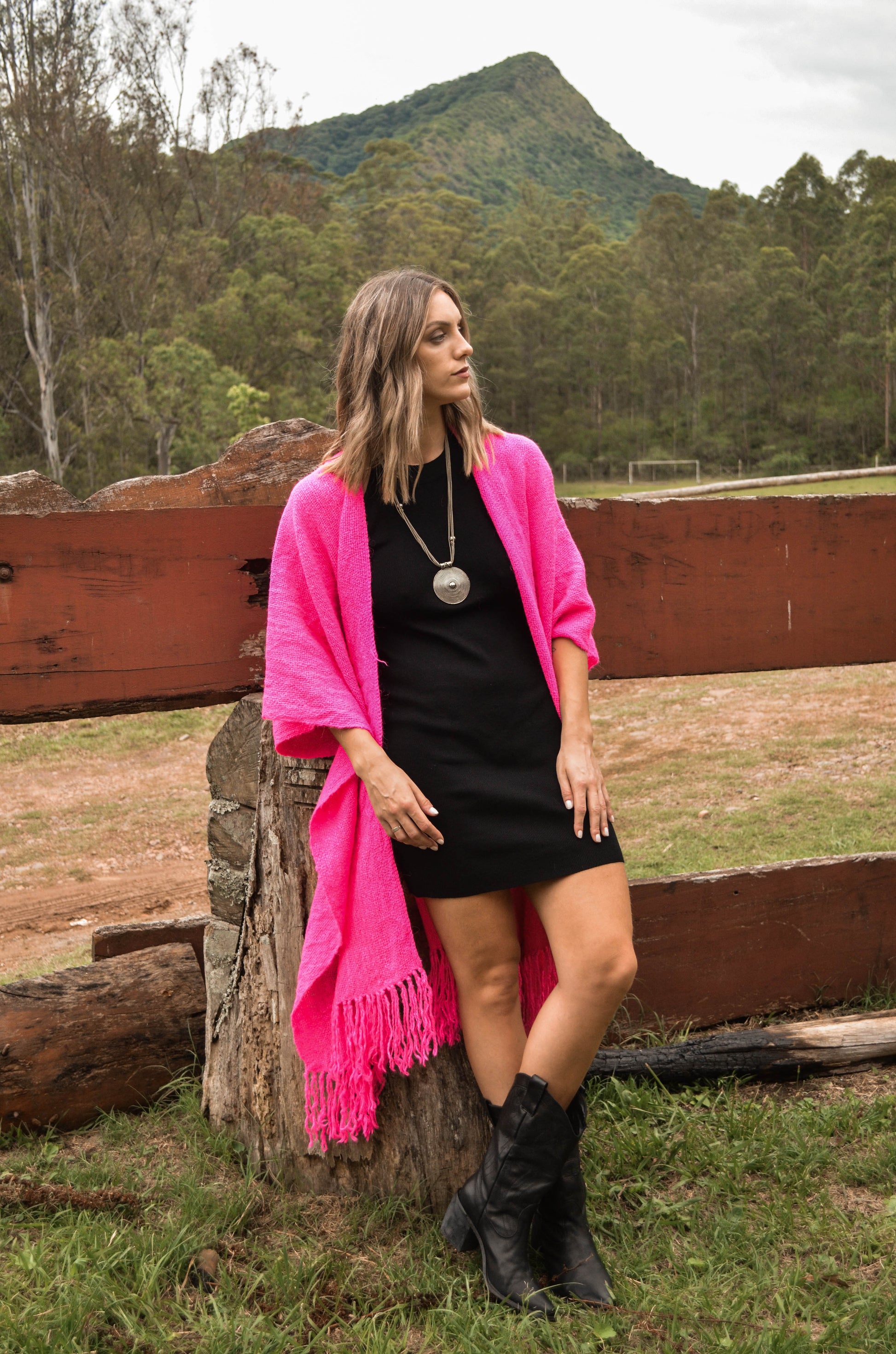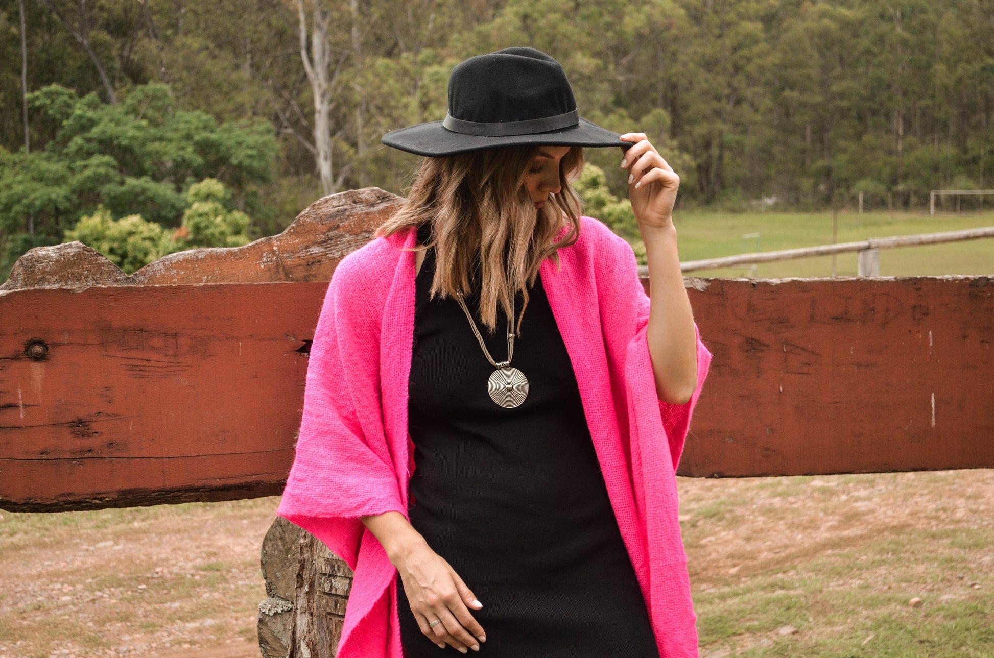 Ruana "Tulma" está hecha a mano en telar rústico con hilos de llama baby.