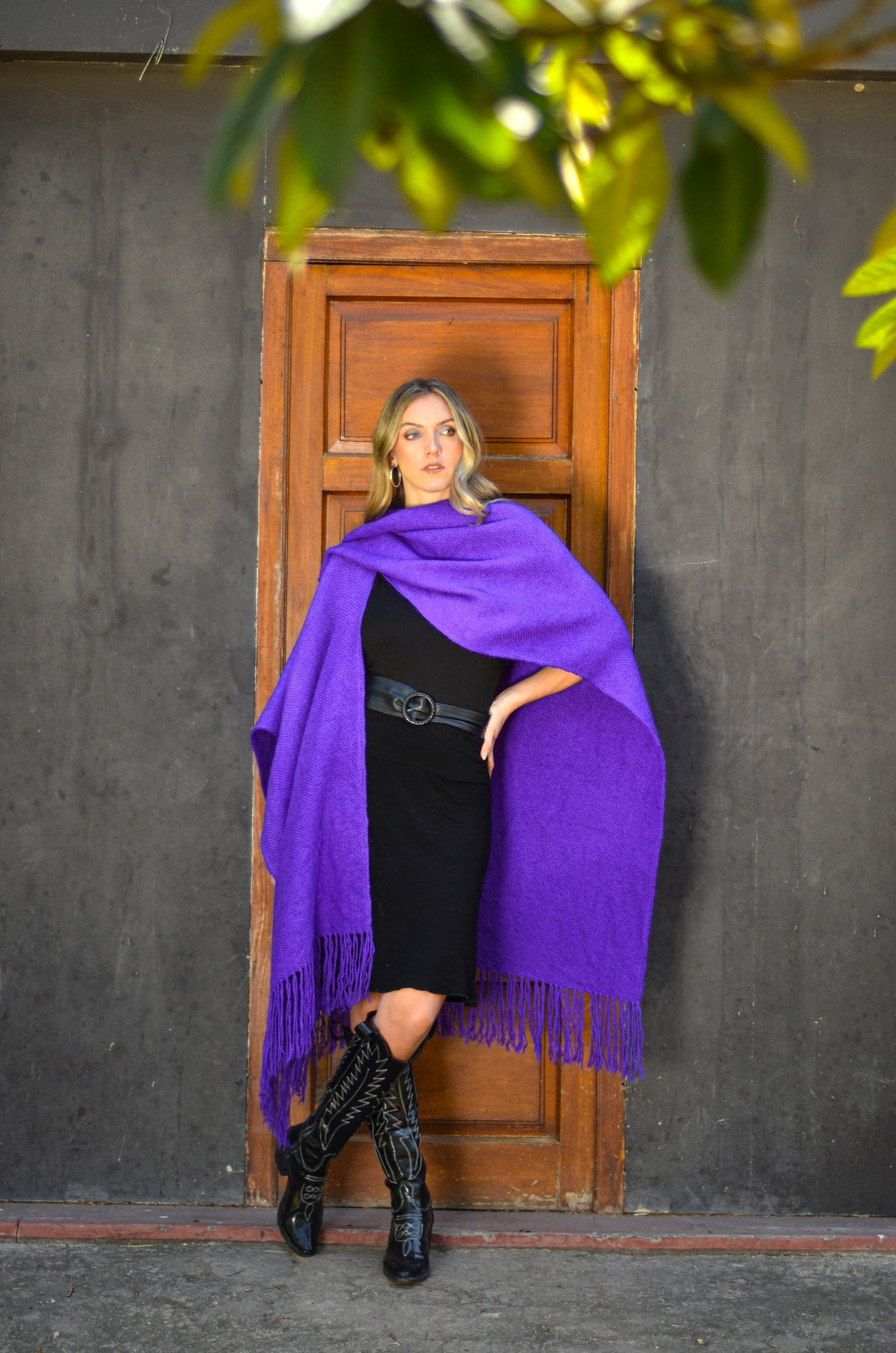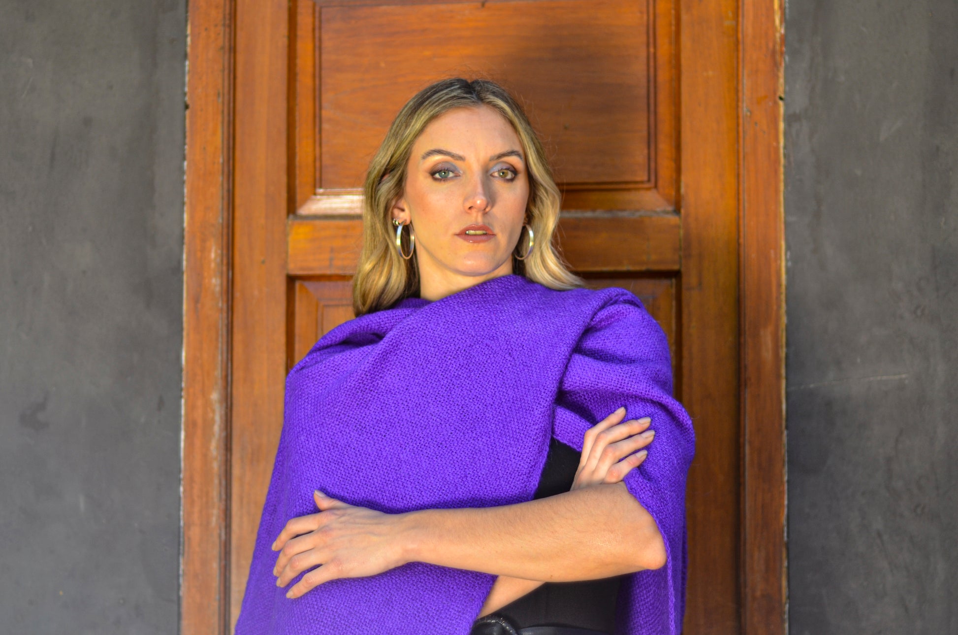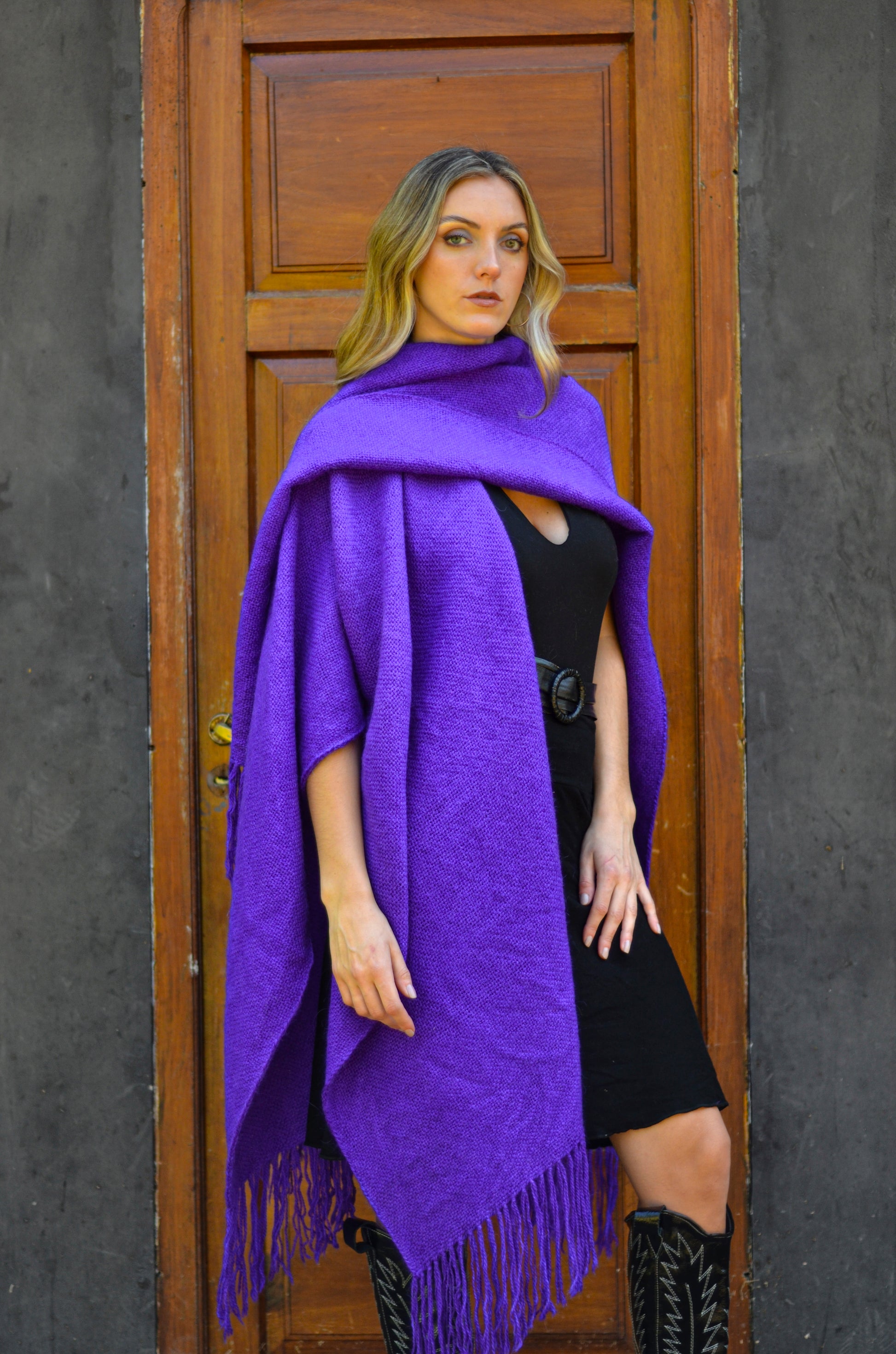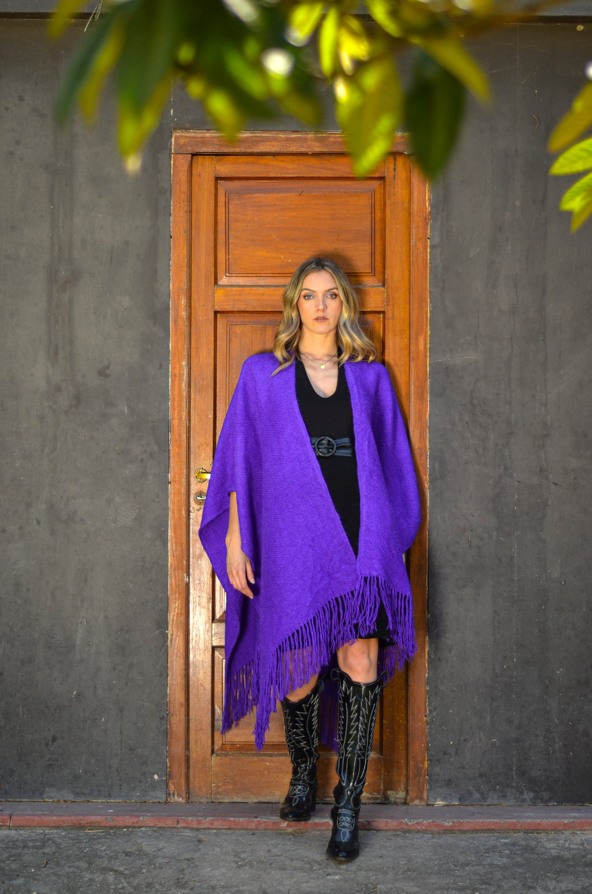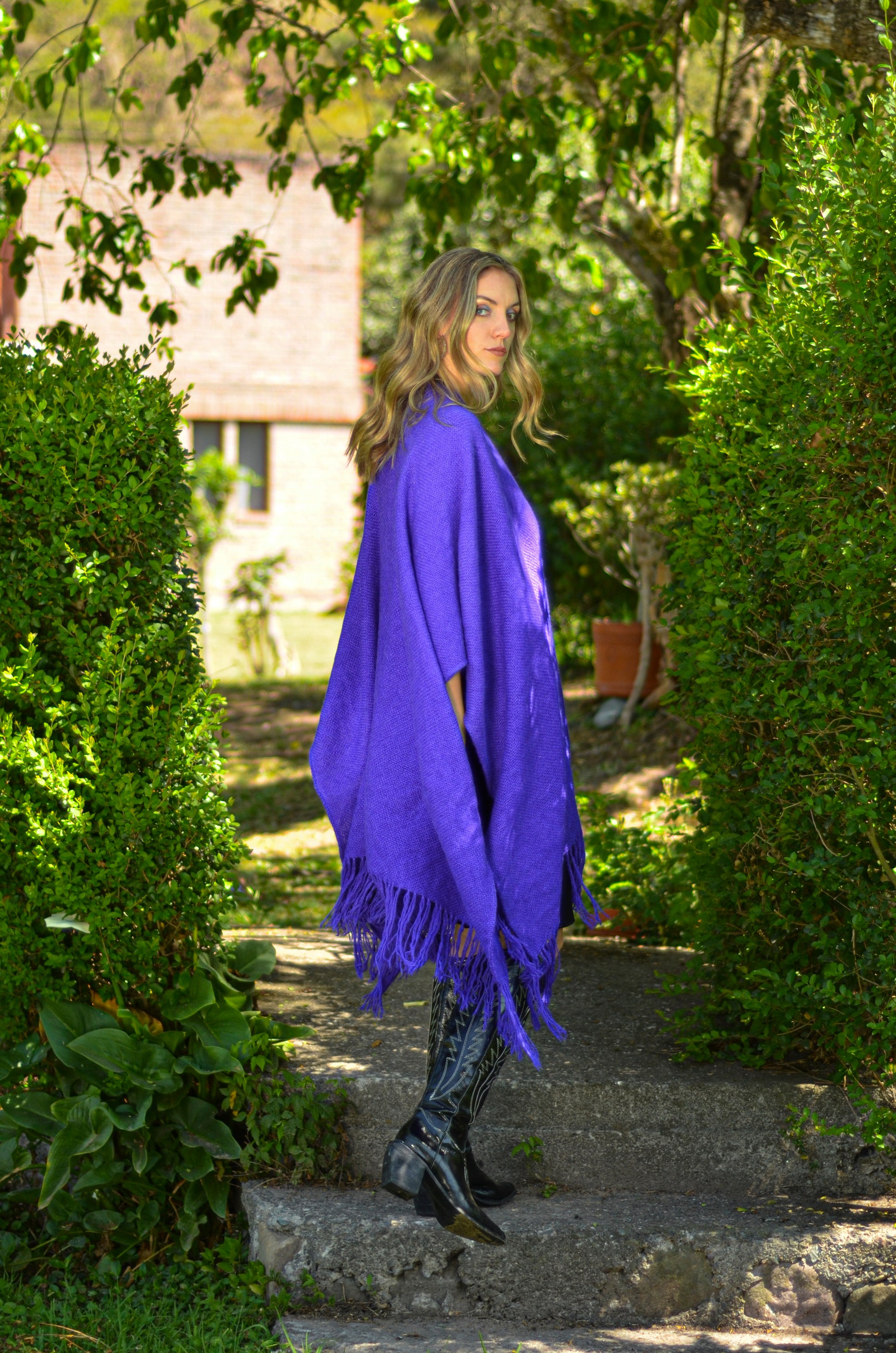 Ruana "Zoila" está hecha a mano en telar rústico con hilos de llama baby.