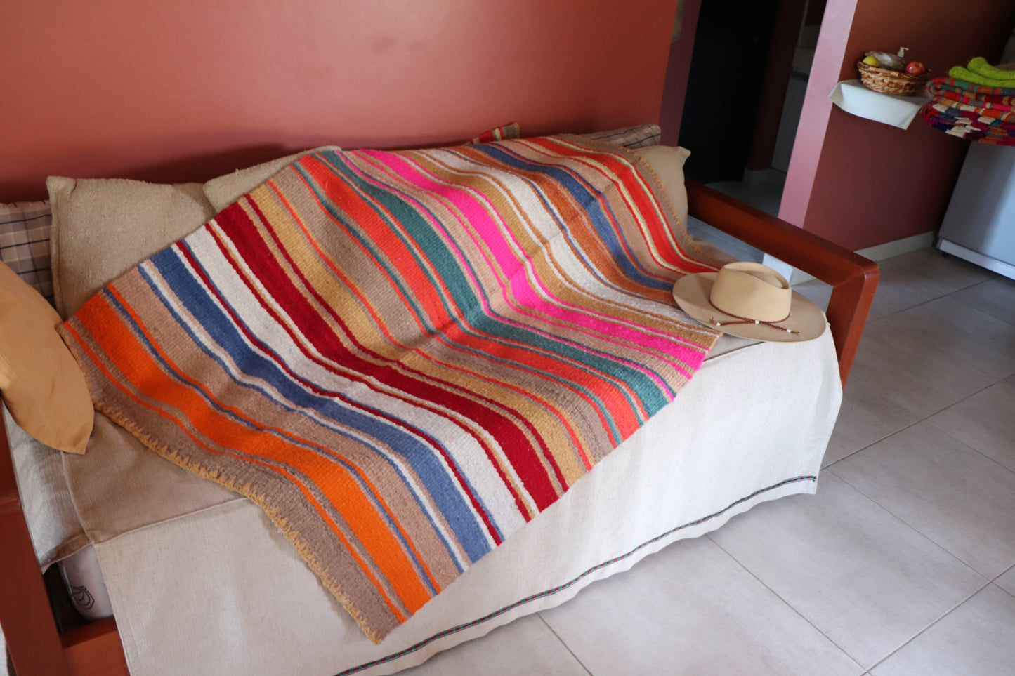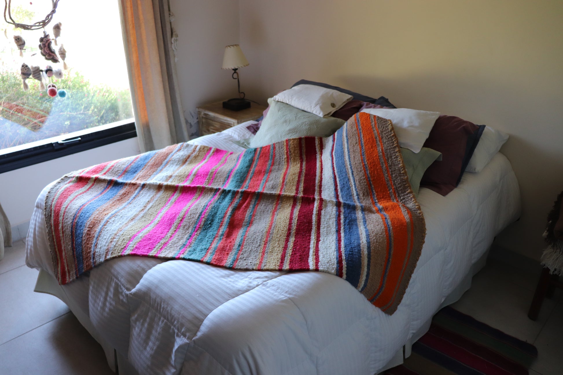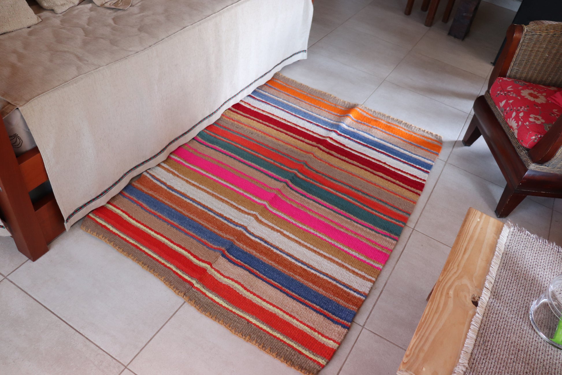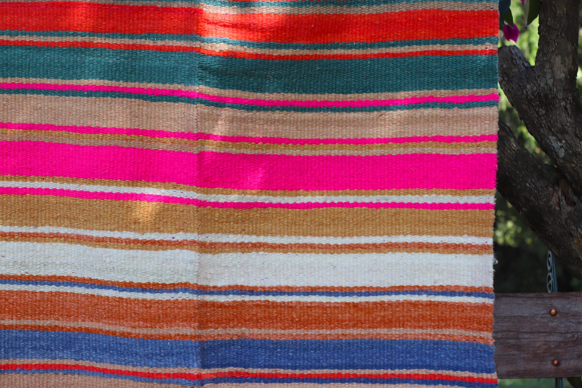 Alfombra de lana de oveja, hecha a mano en telar rústico.