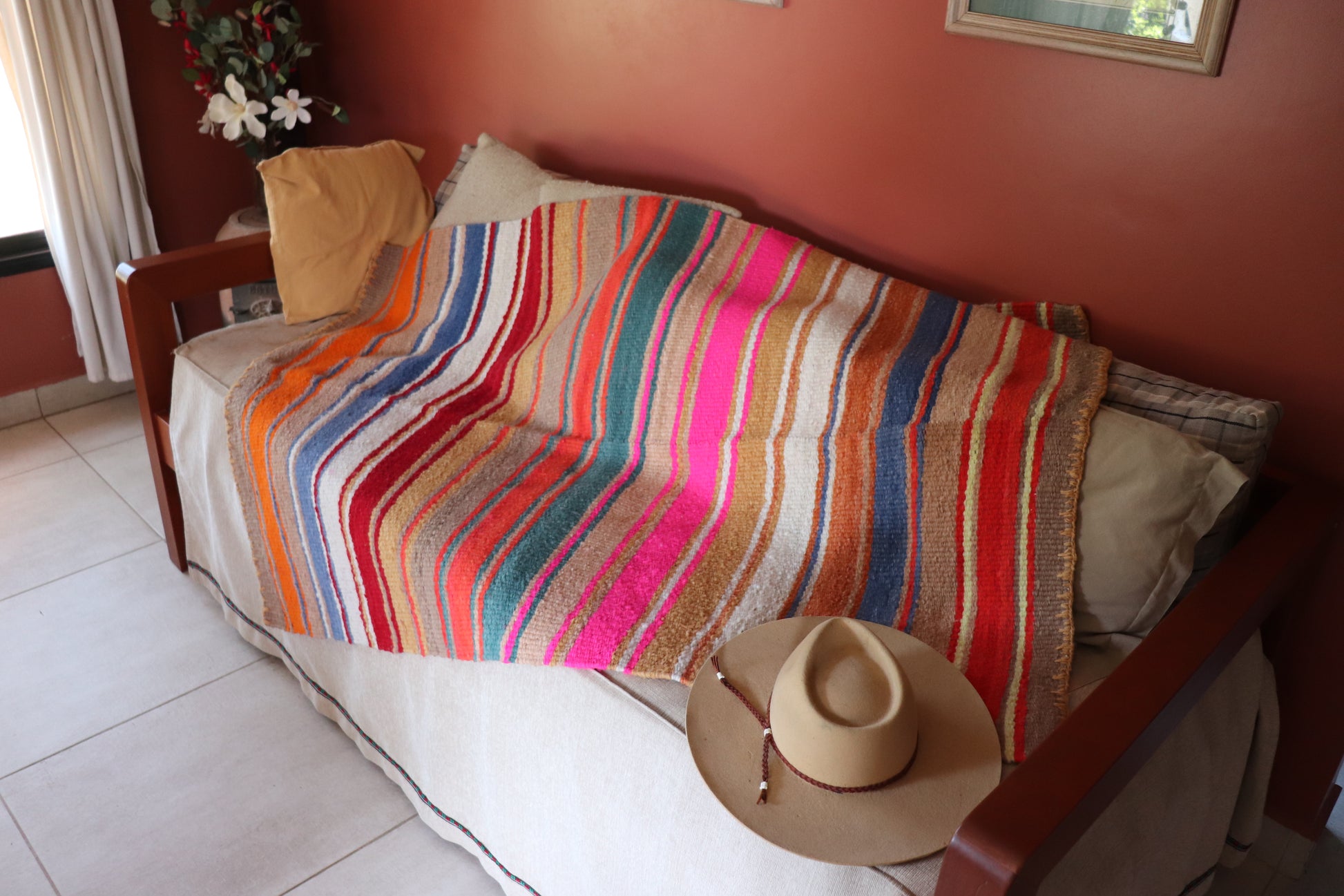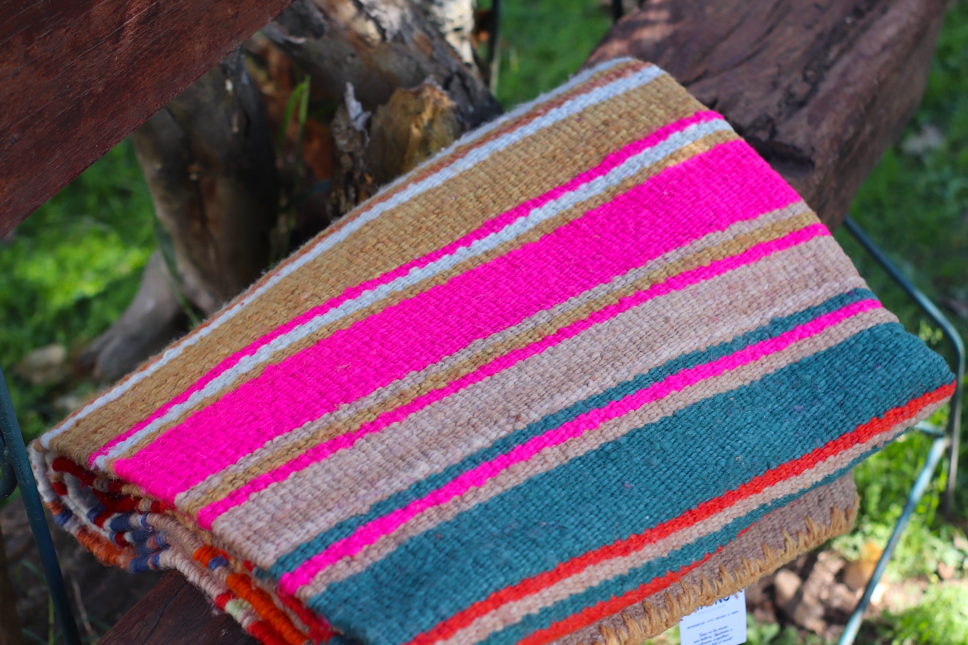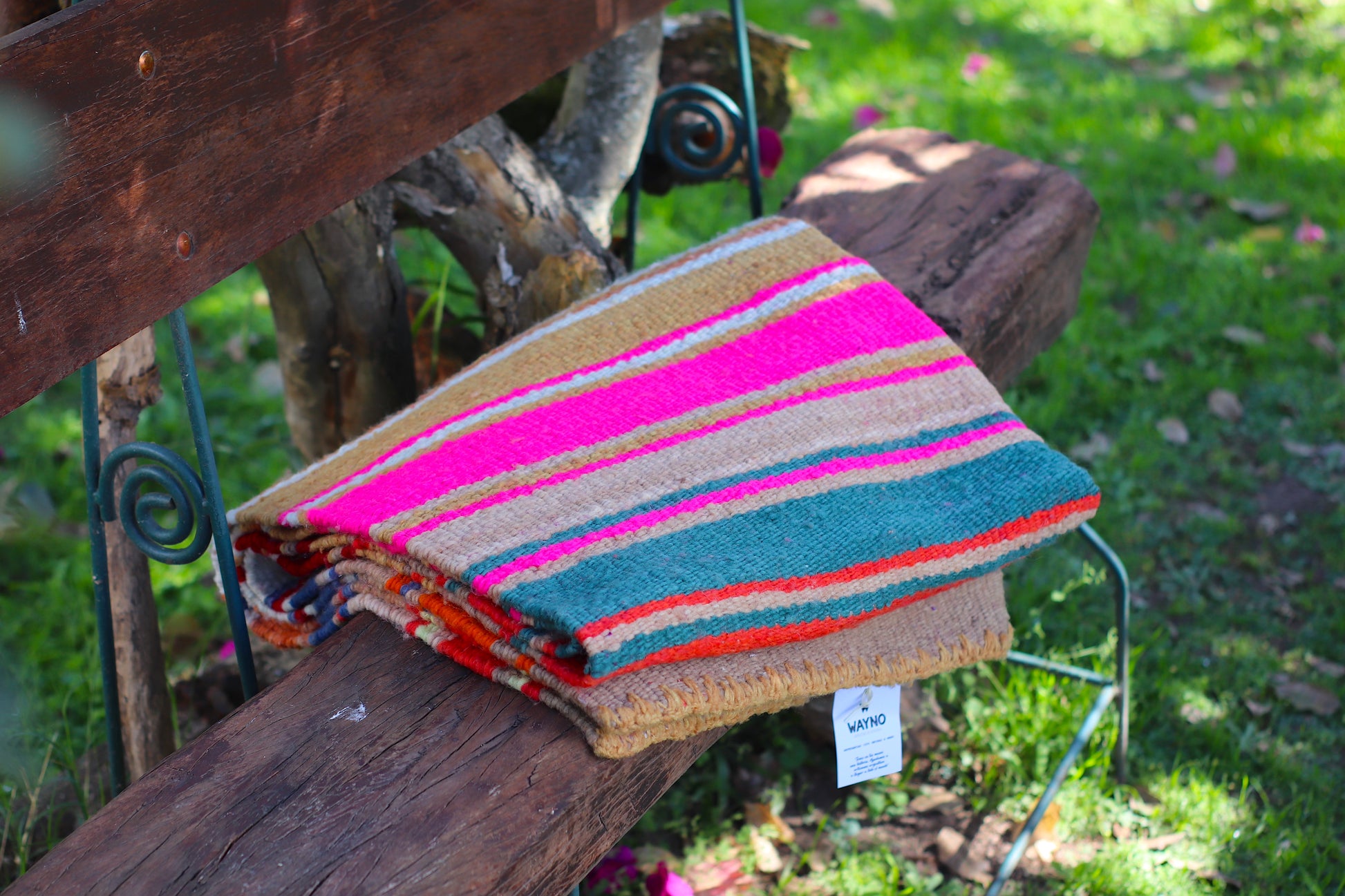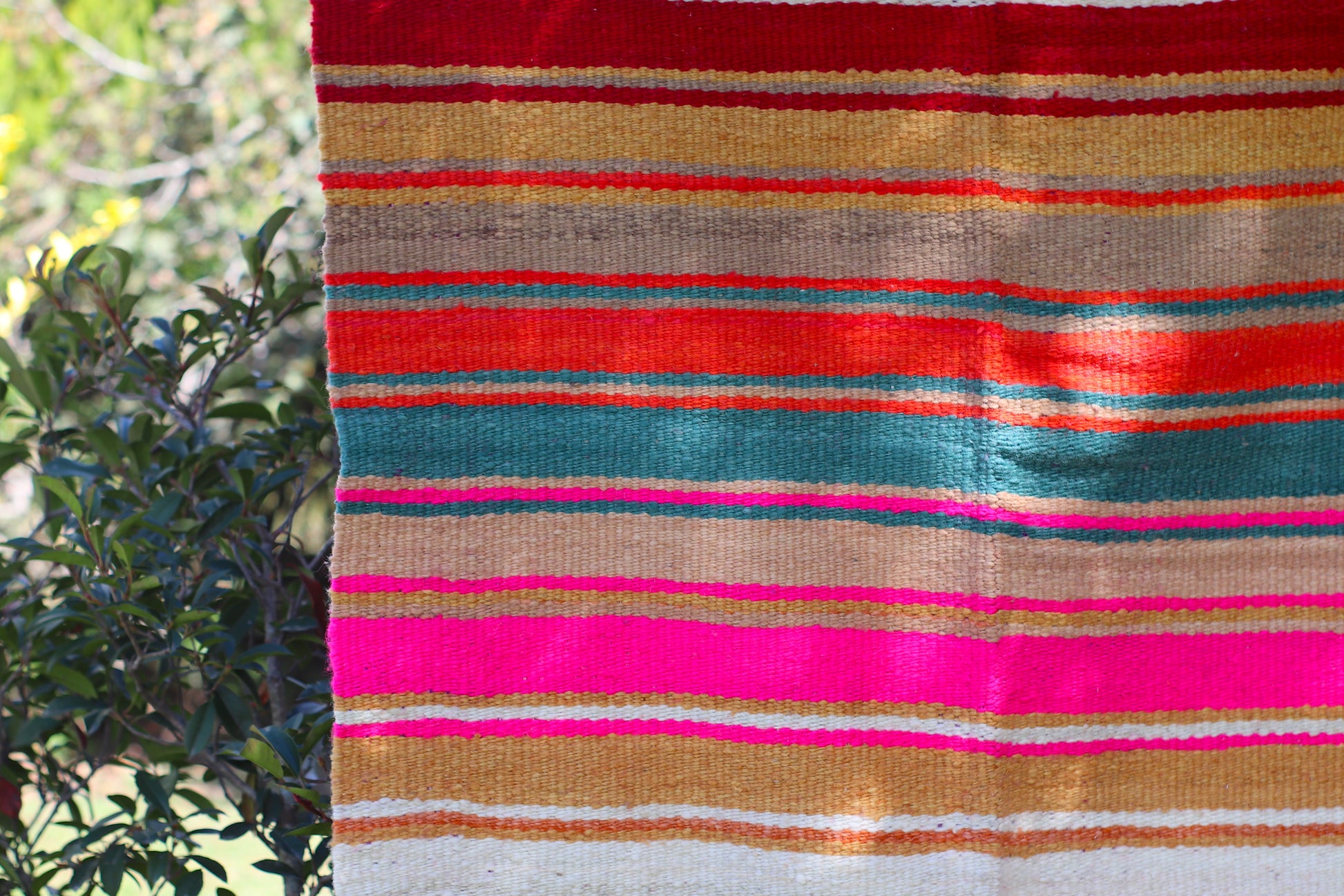 Alfombra de lana de oveja, hecha a mano en telar rústico.