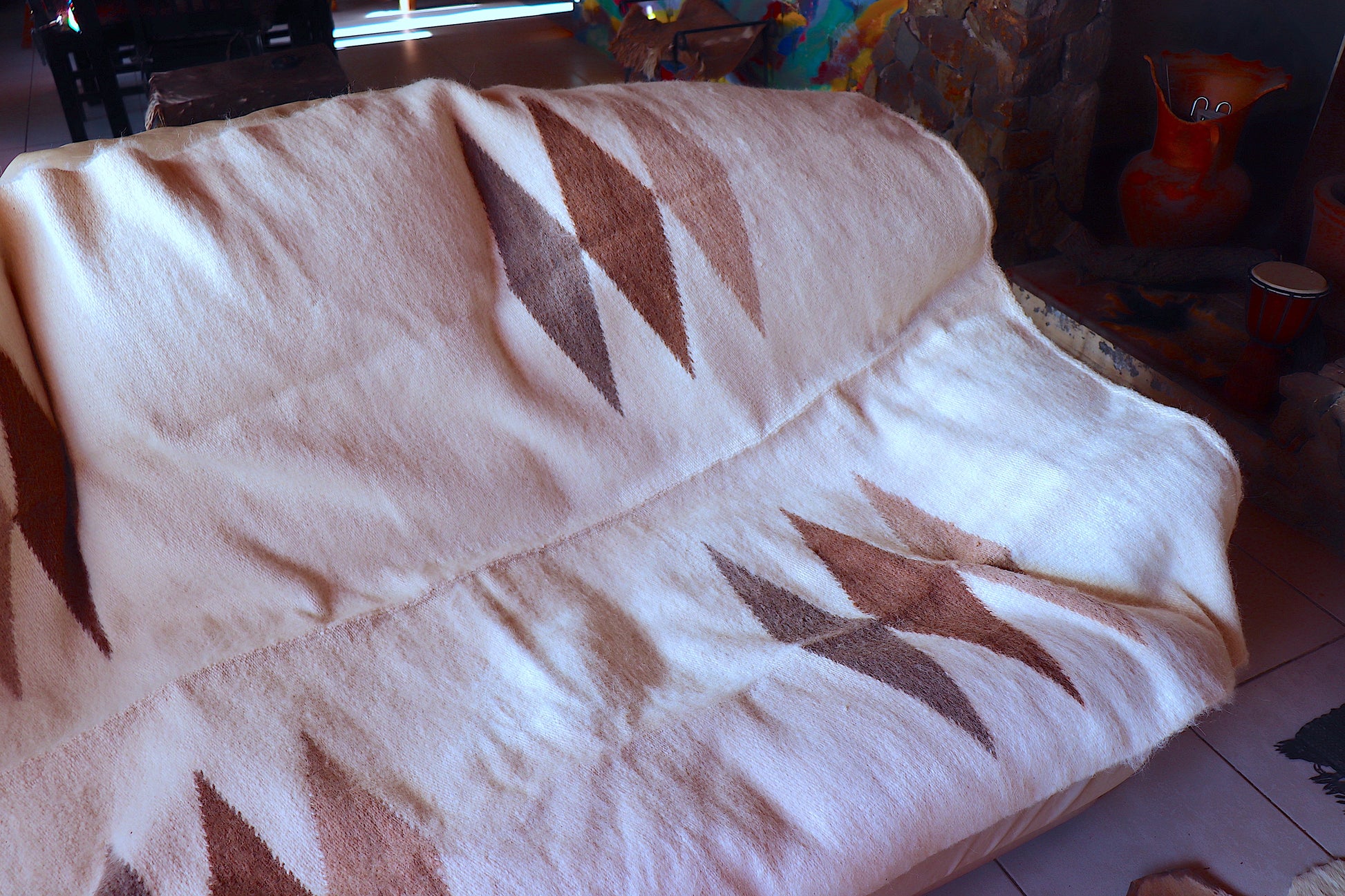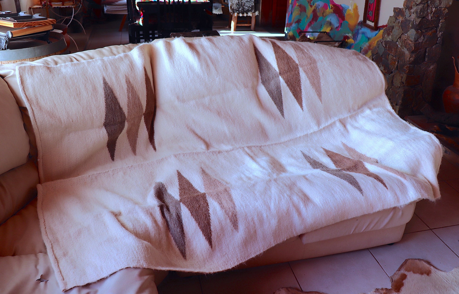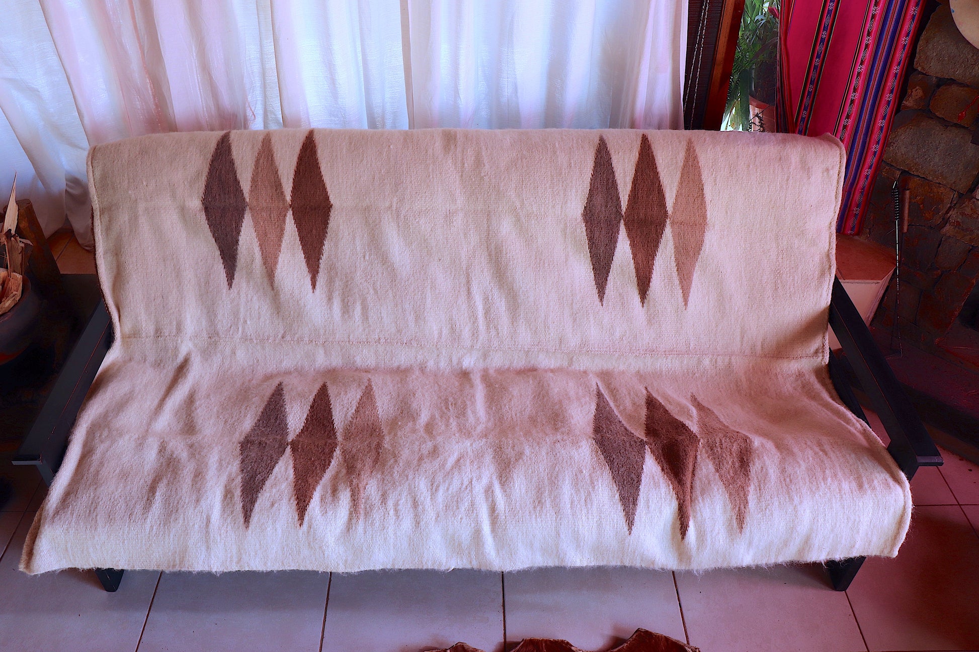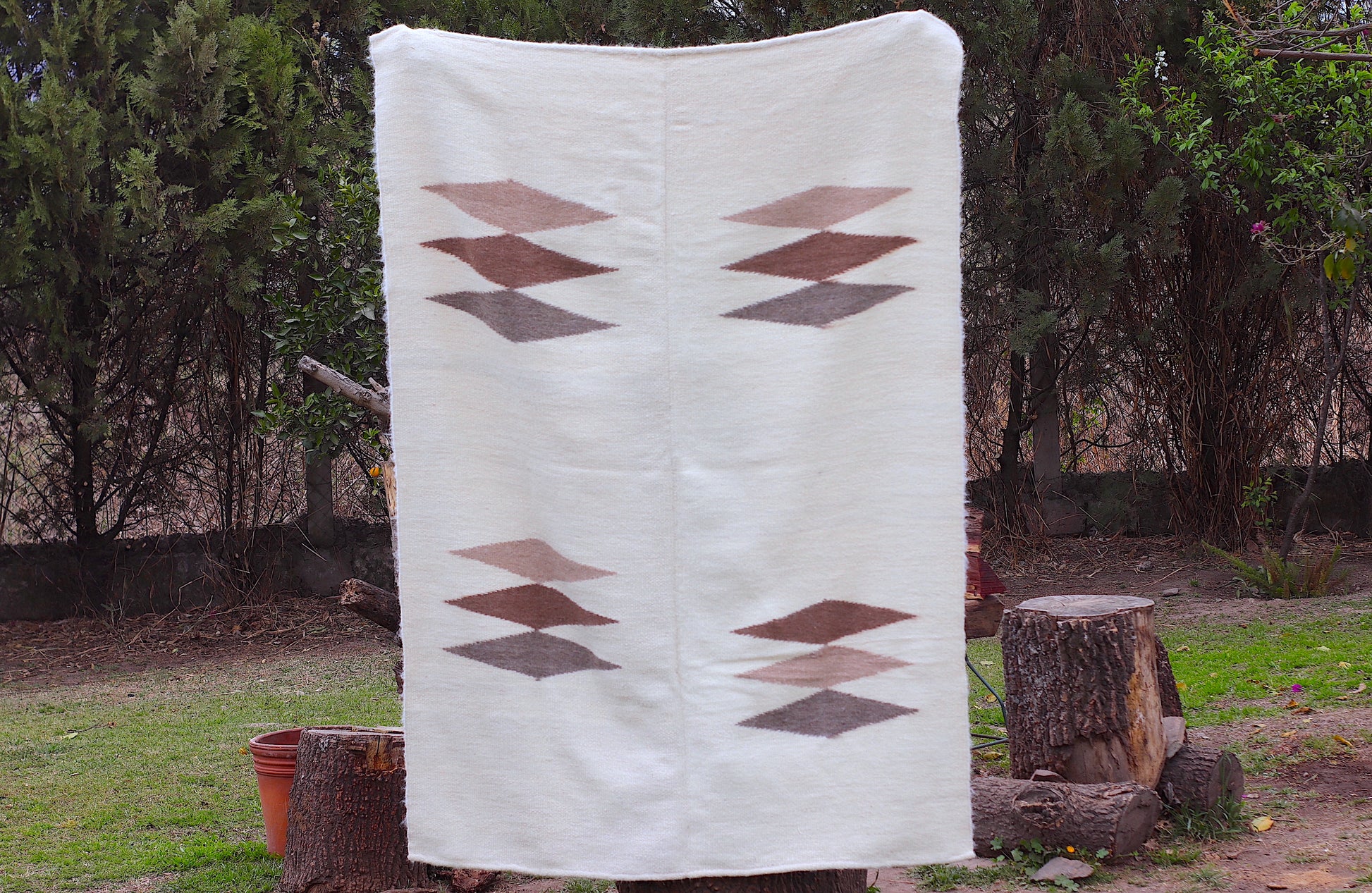 Alfombra de lana de llama, hecha a mano en telar rústico.
