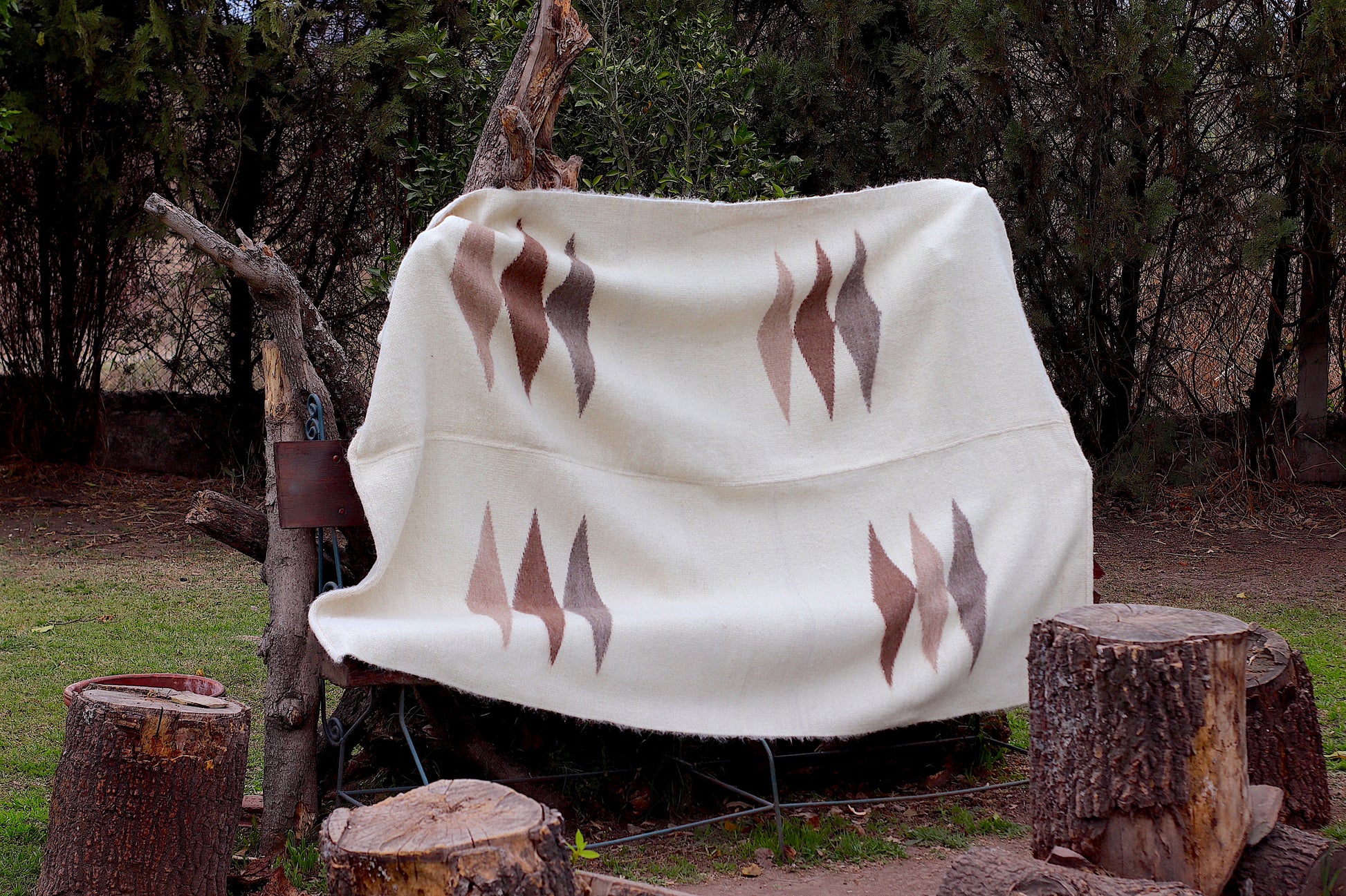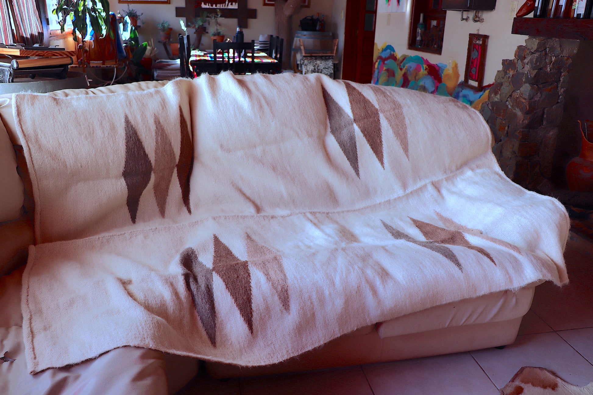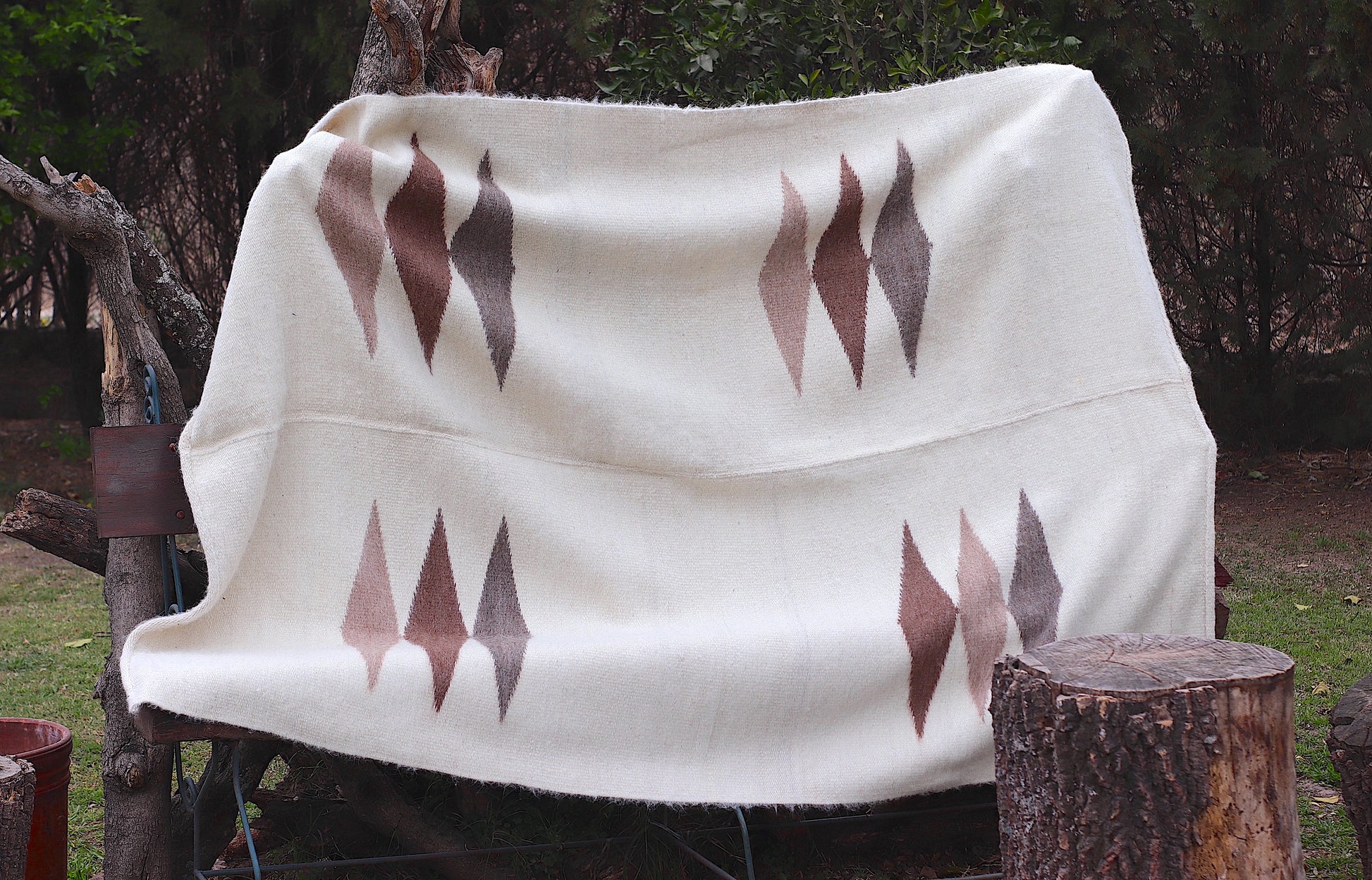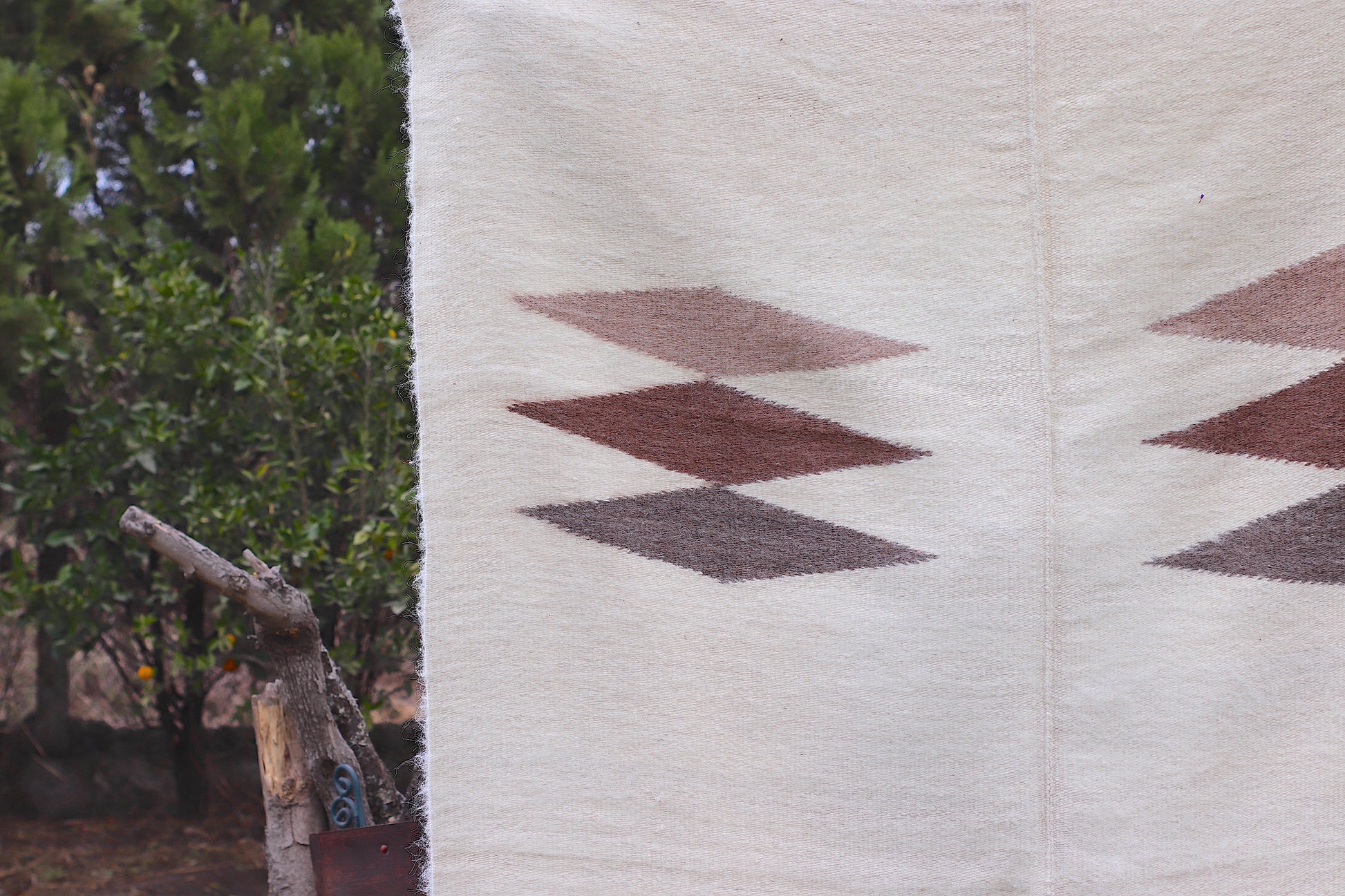 Alfombra de lana de llama, hecha a mano en telar rústico.