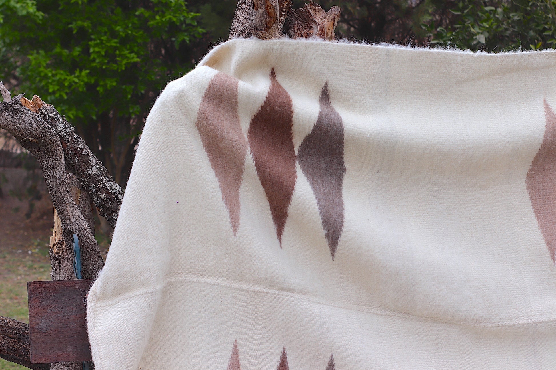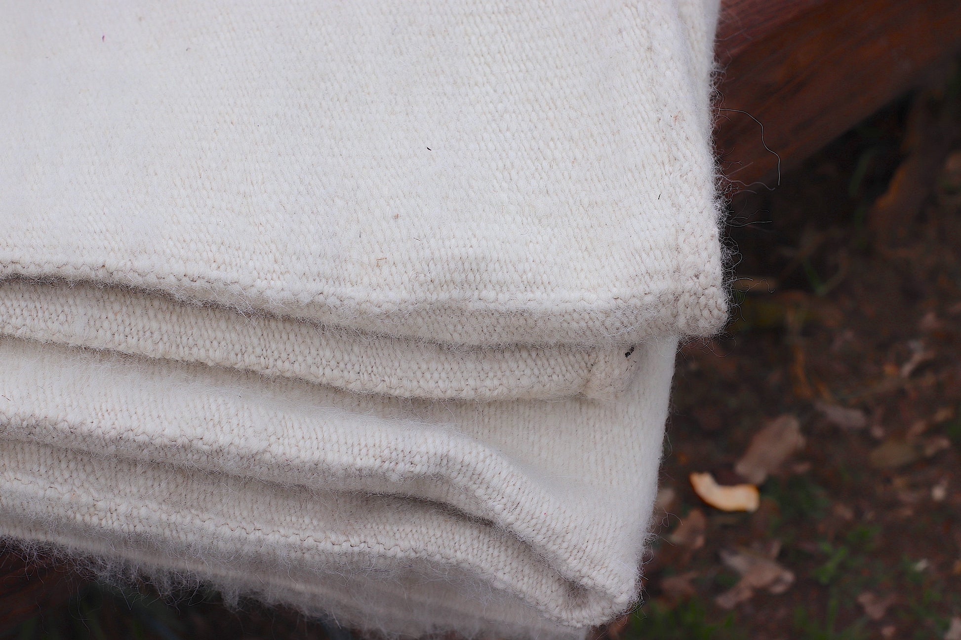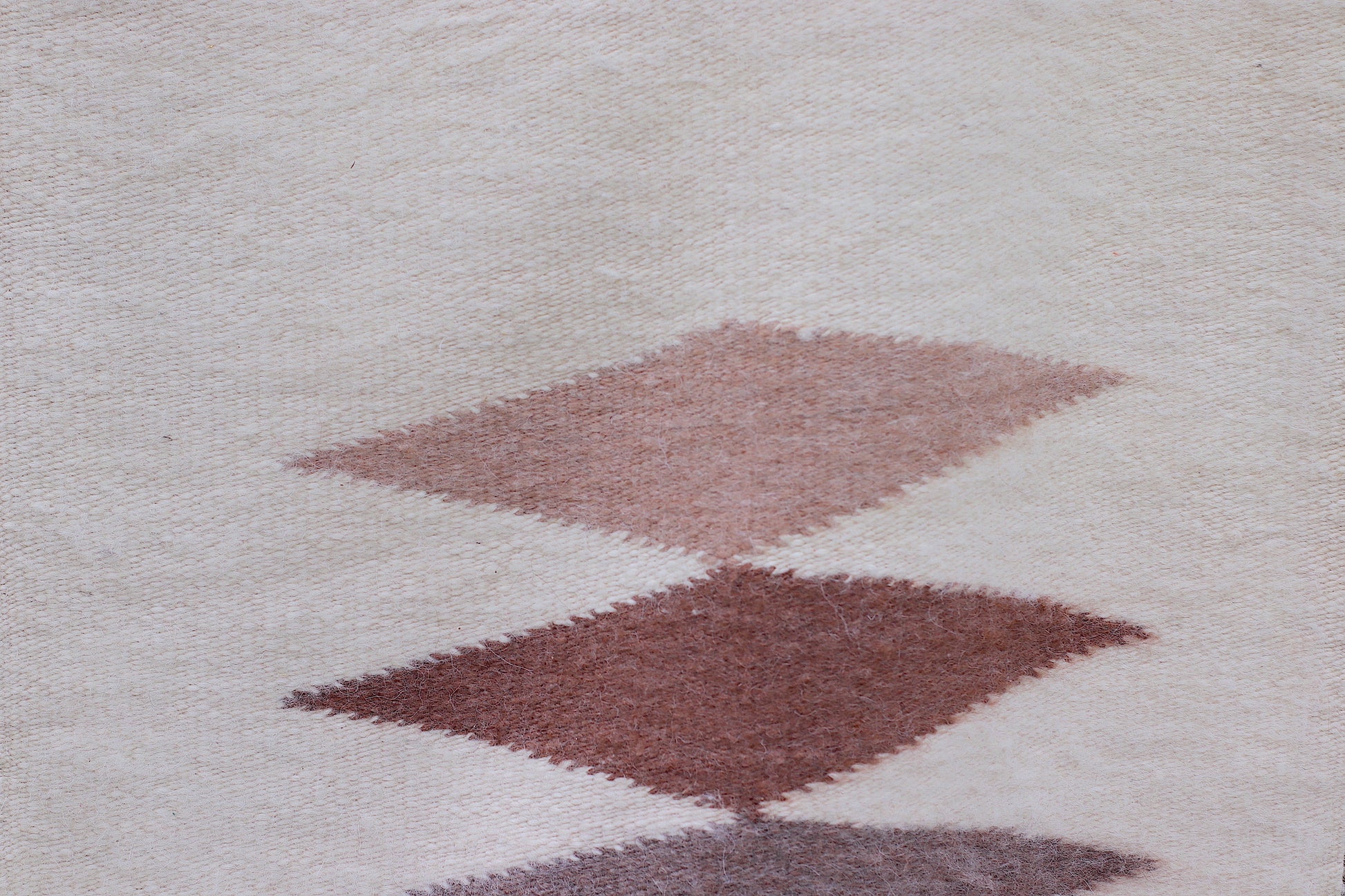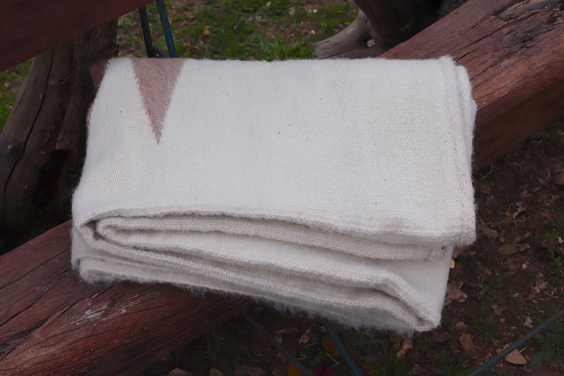 Alfombra de lana de llama, hecha a mano en telar rústico.