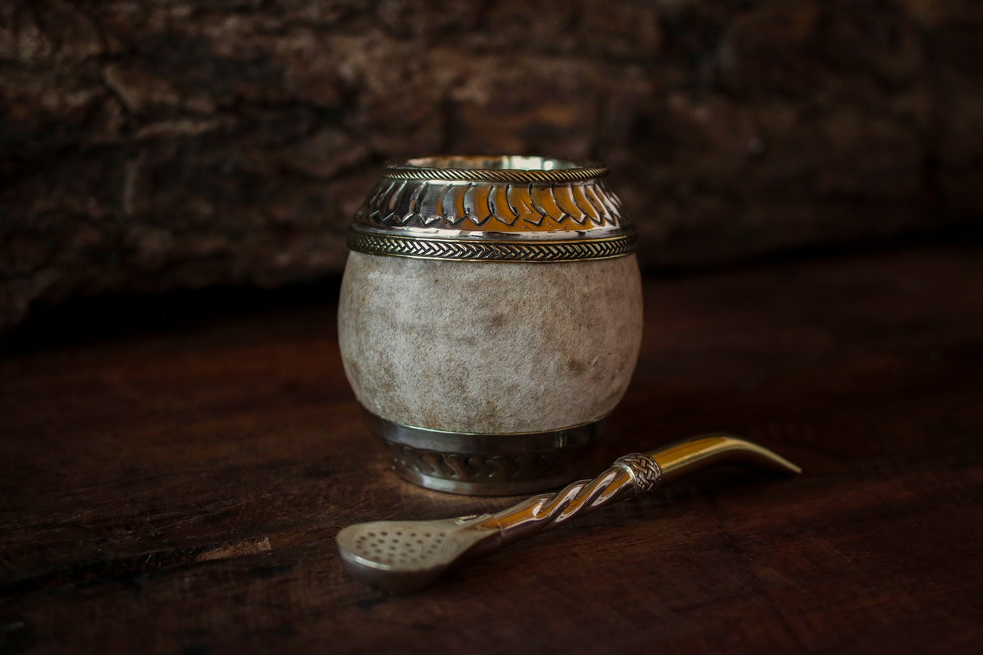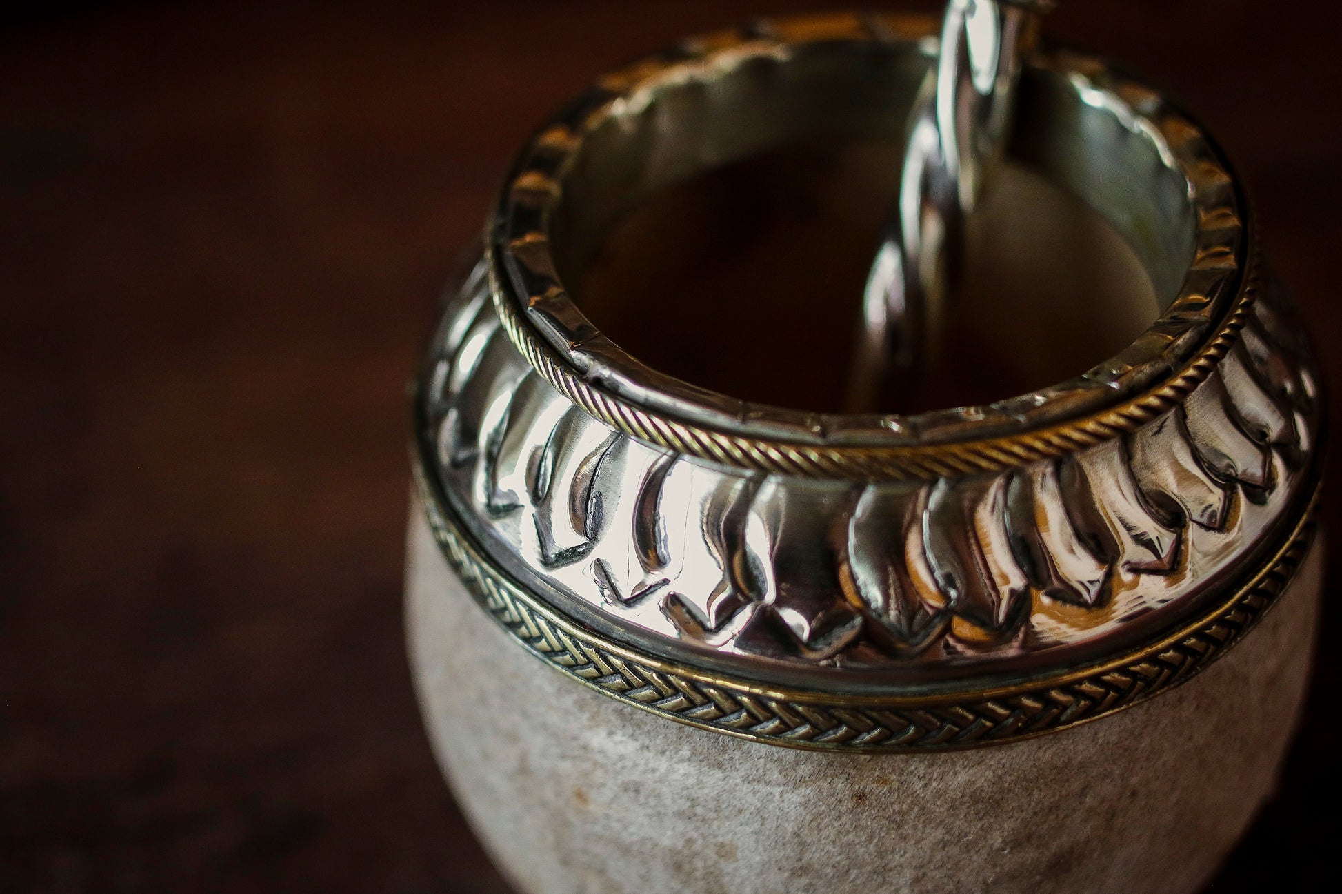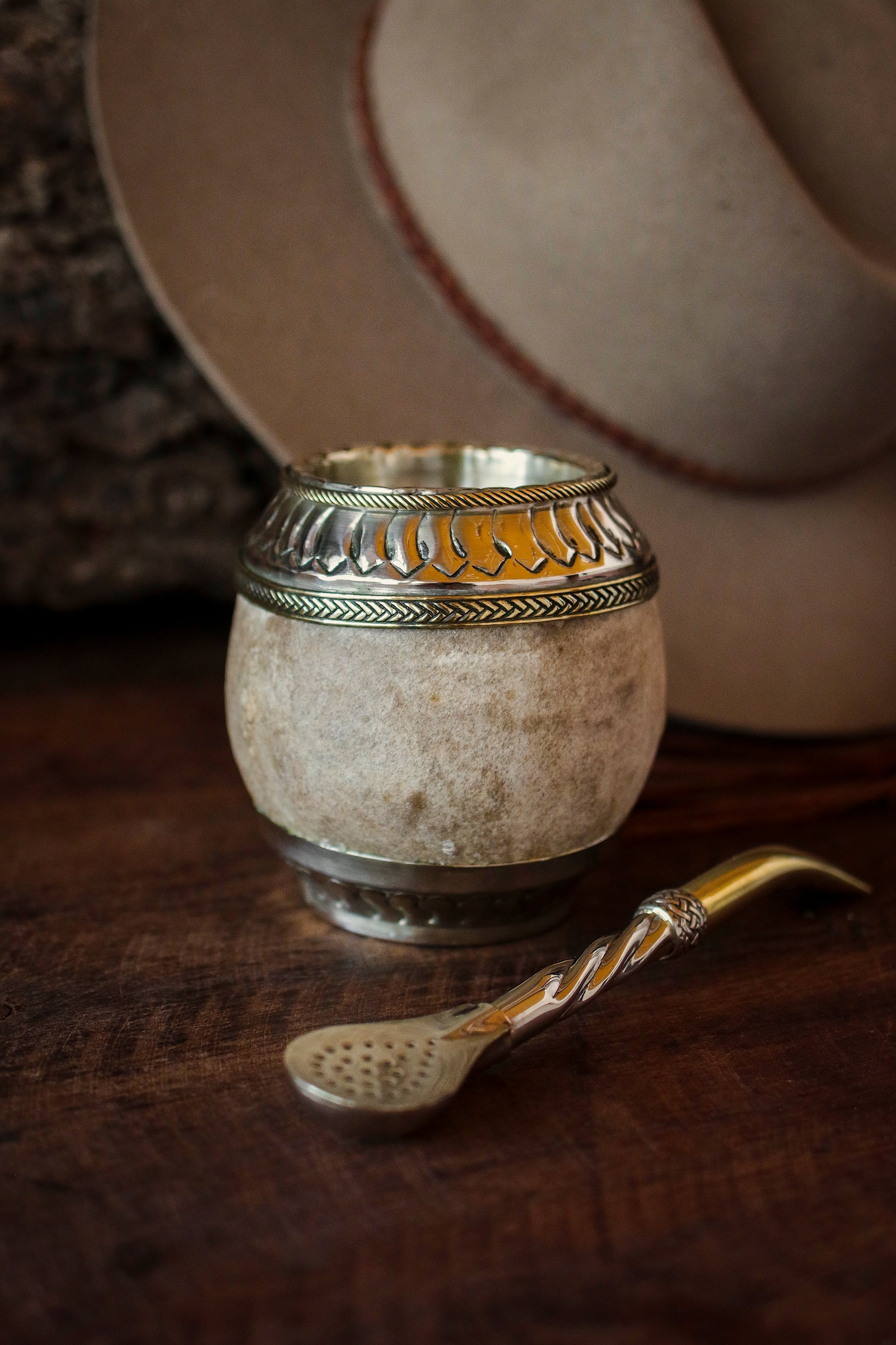 Torpedo criollo de cuero, bronce y alpaca con Bombilla
