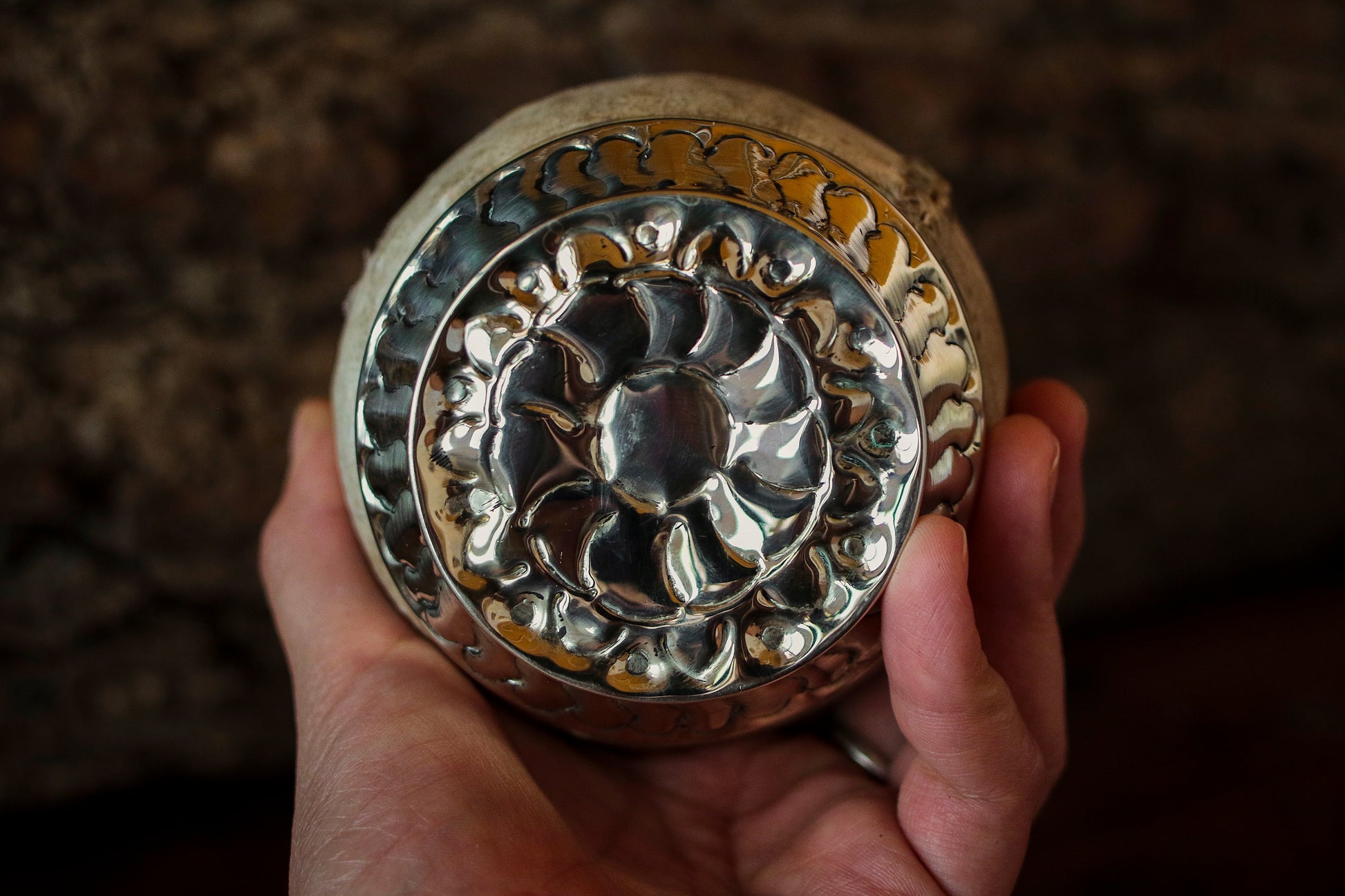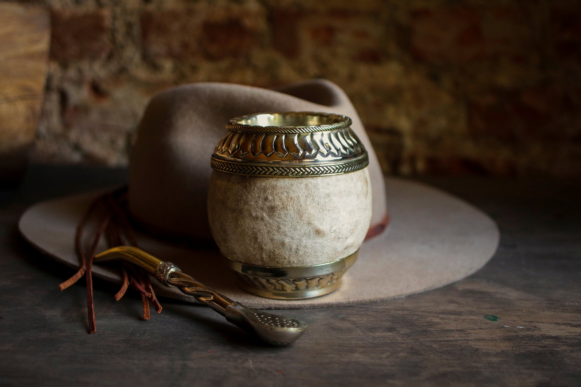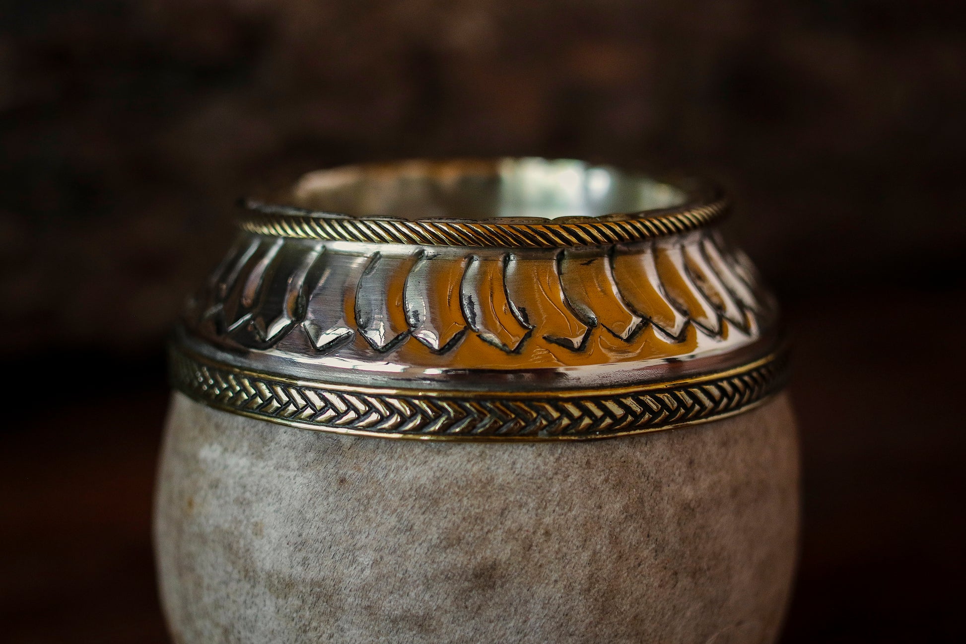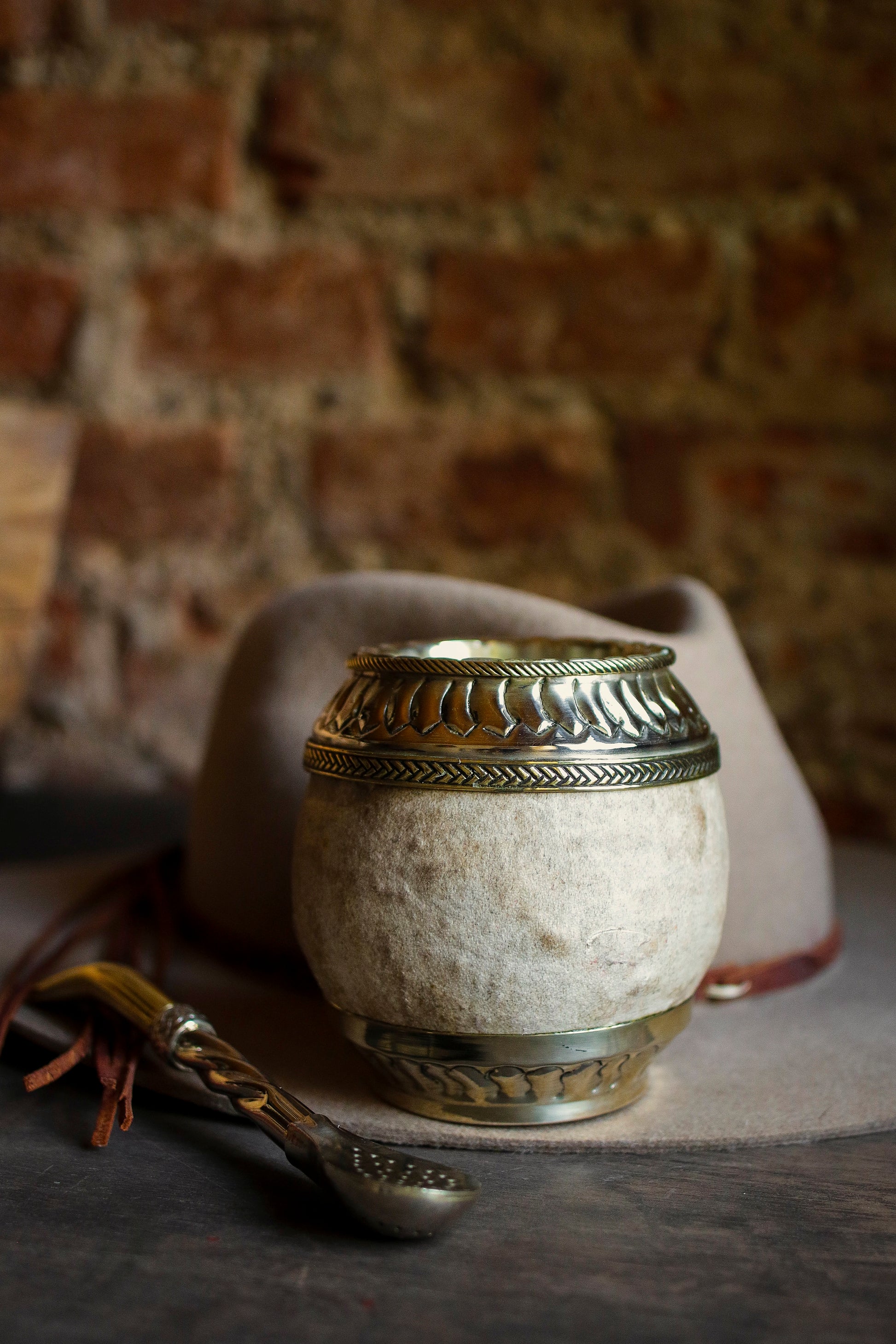 Torpedo criollo de cuero, bronce y alpaca con Bombilla