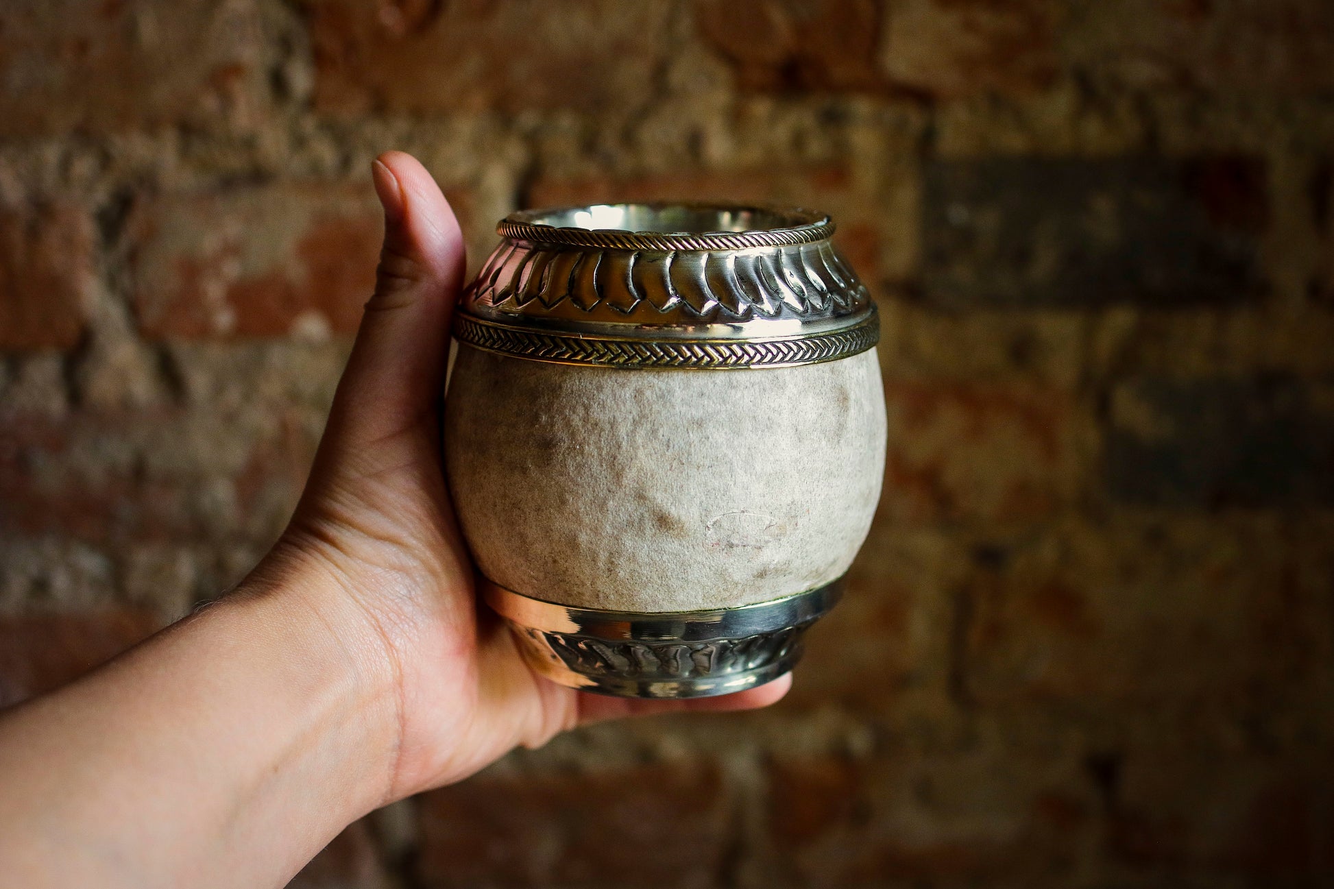 Mate torpedo criollo de porongo forrado artesanalmente en cuero natural