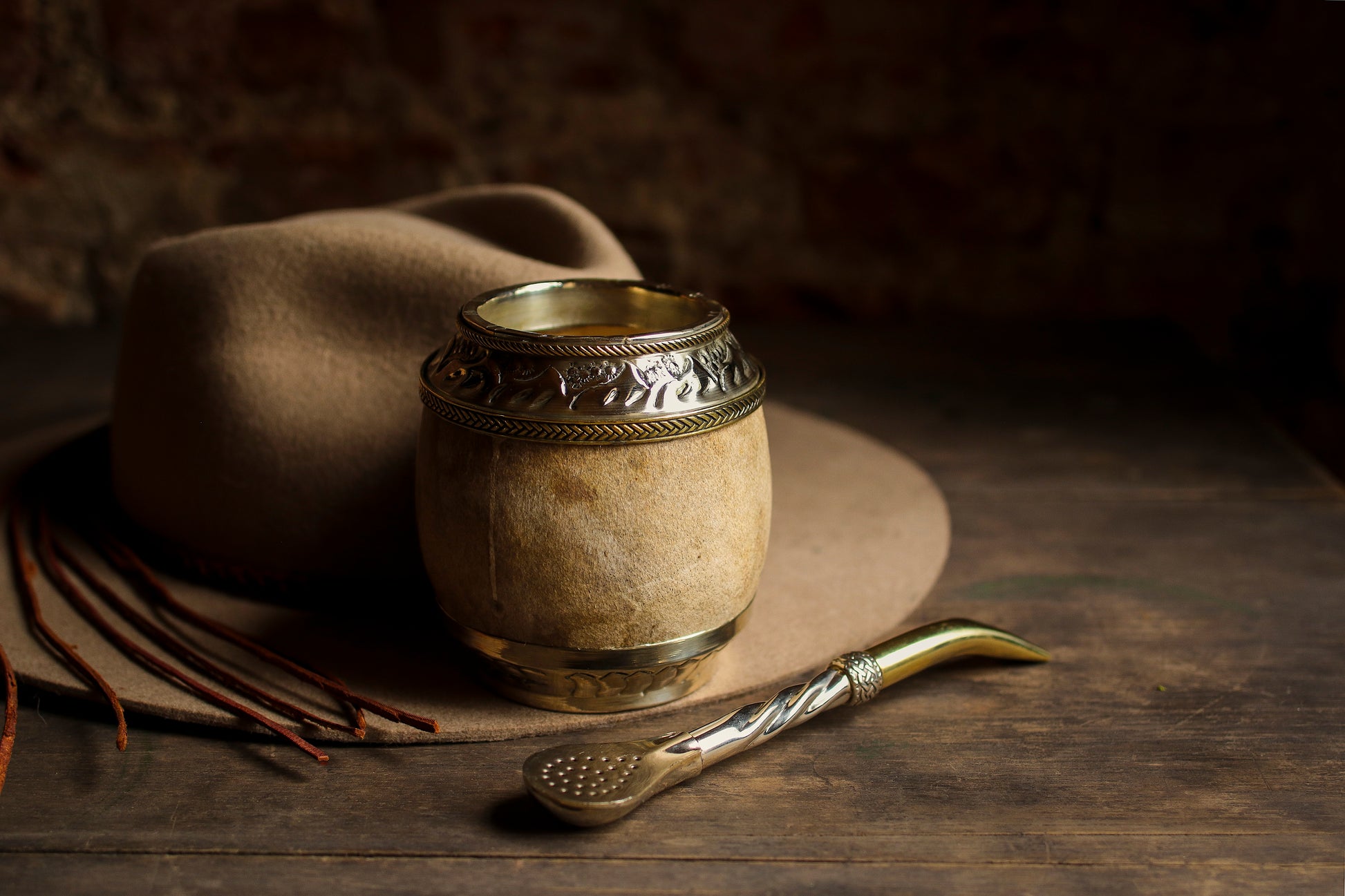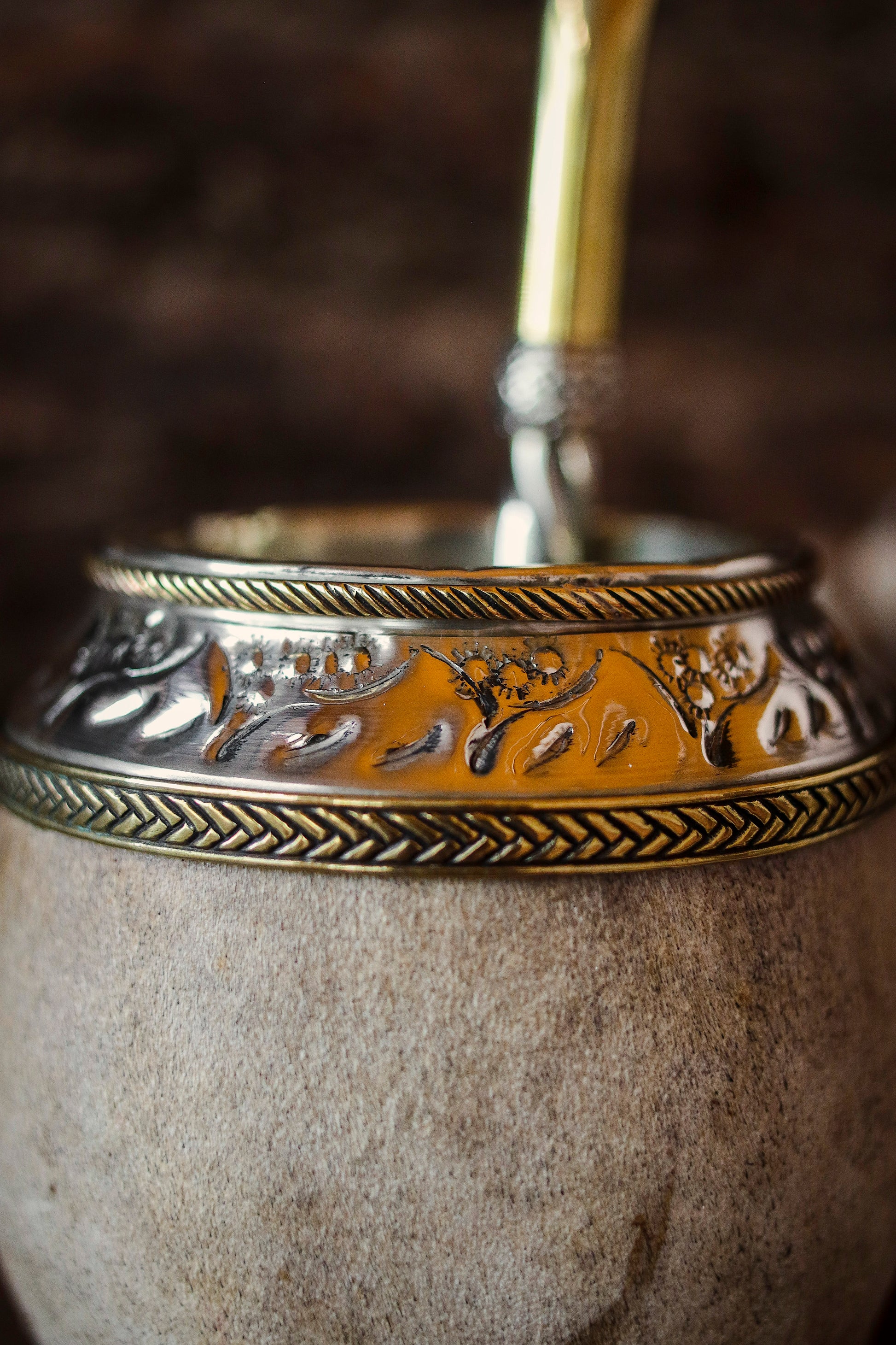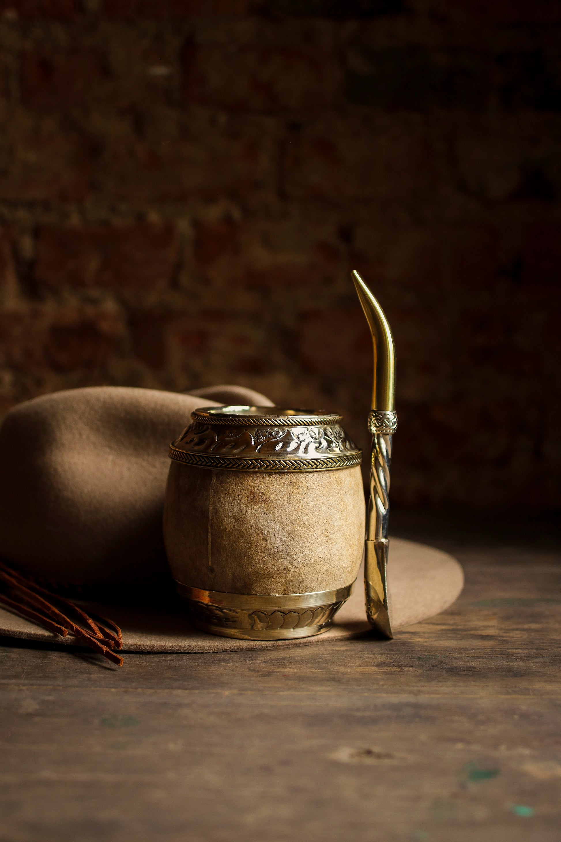 Torpedo criollo de cuero, bronce y alpaca con Bombilla