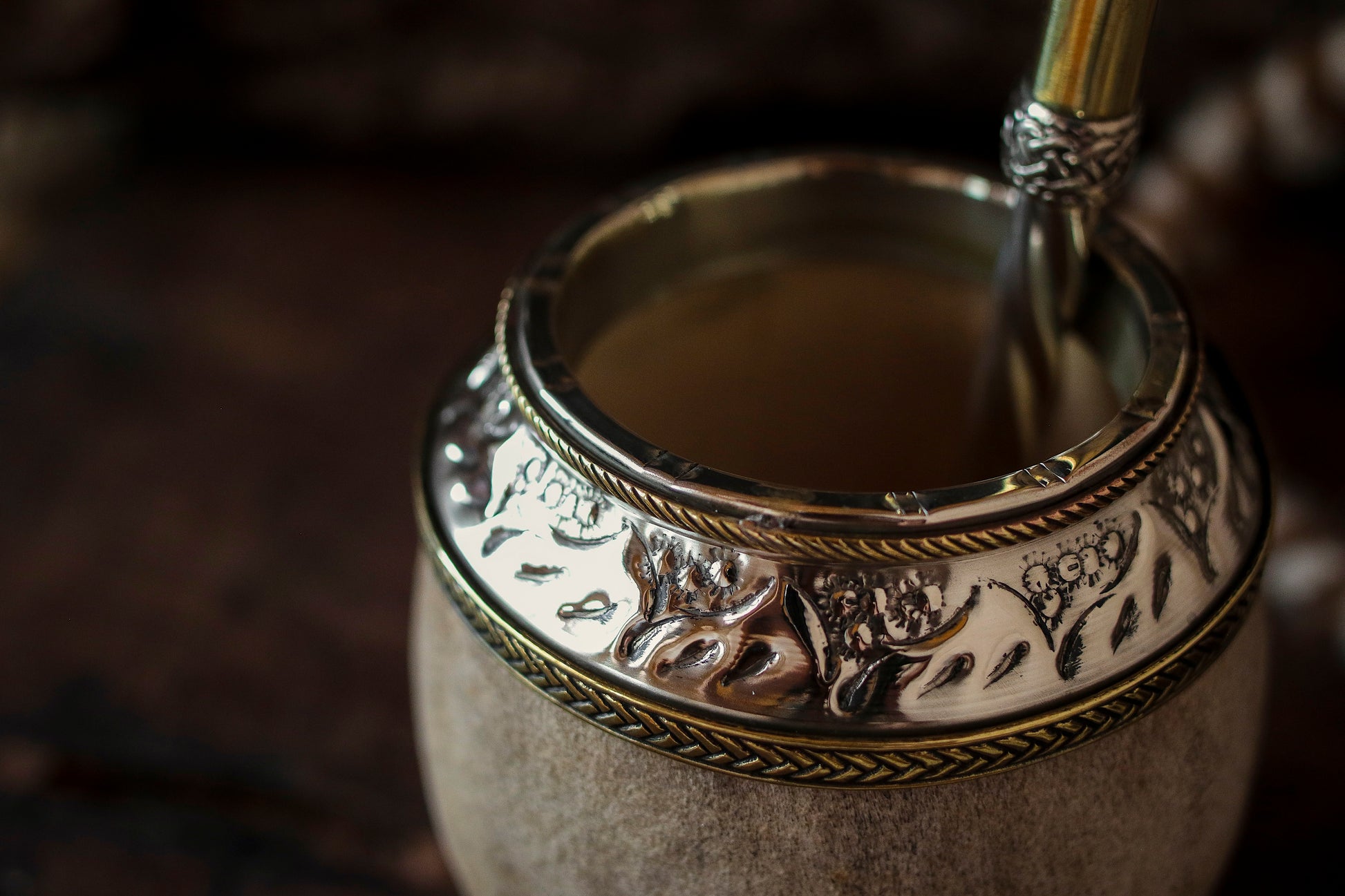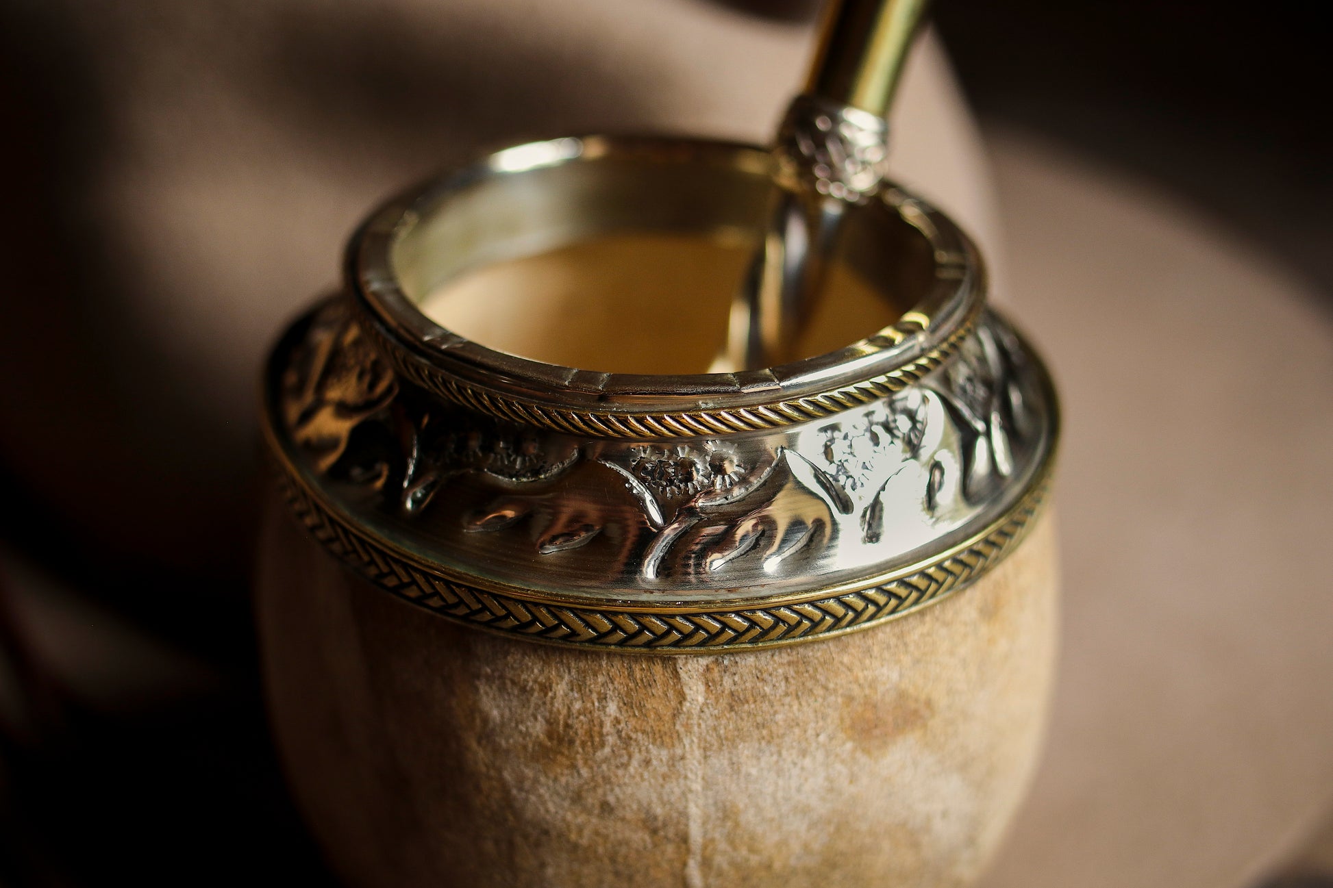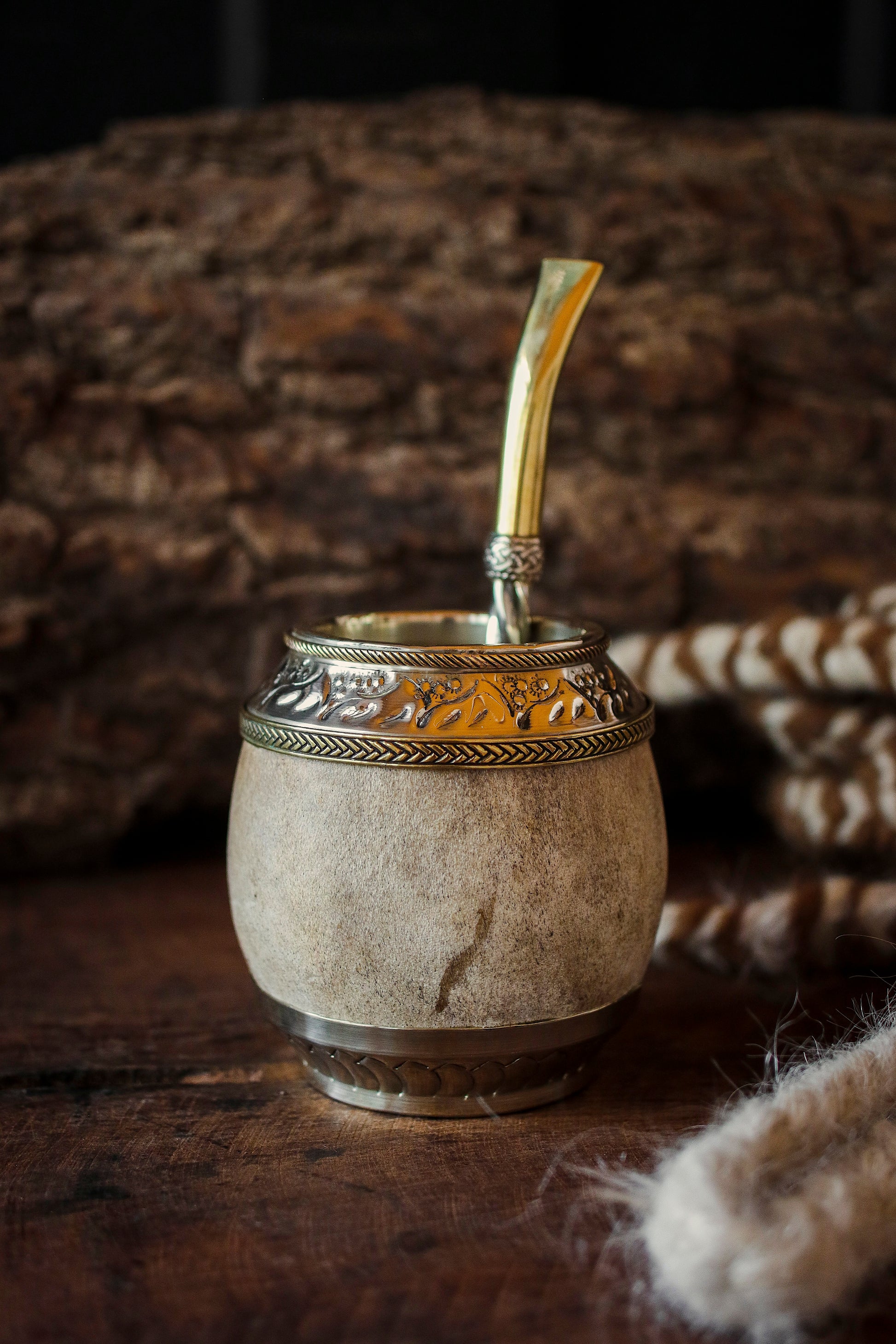 Torpedo criollo de cuero, bronce y alpaca con Bombilla