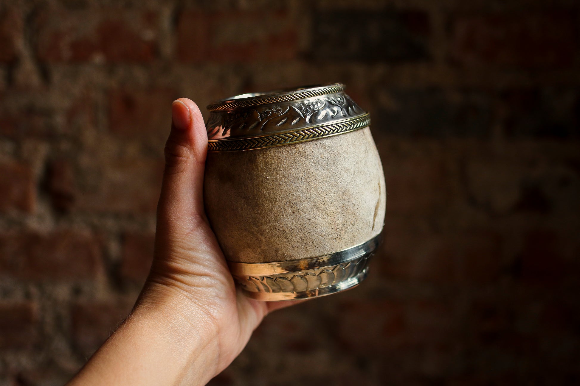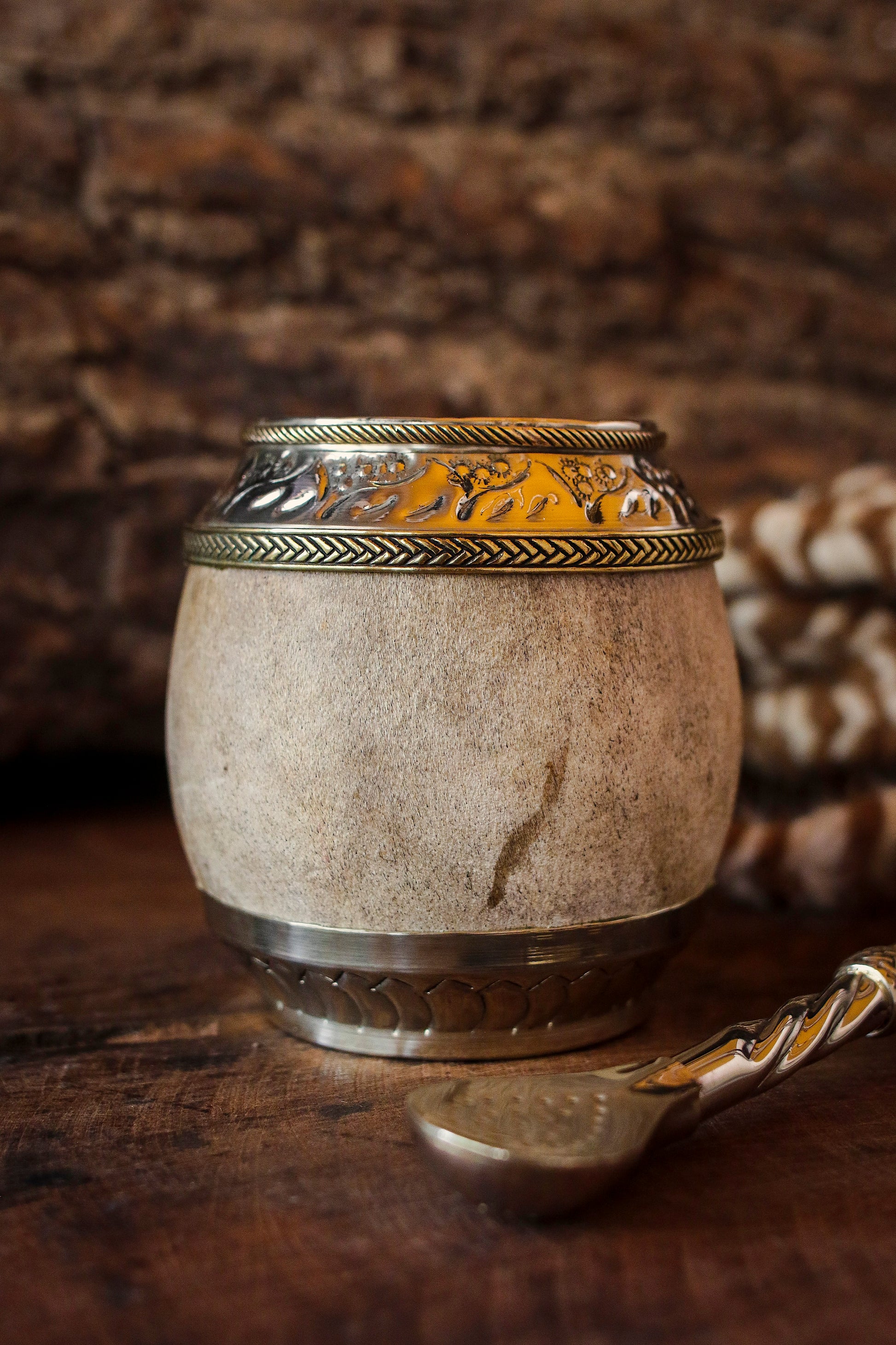 Mate torpedo criollo de porongo forrado artesanalmente en cuero natural